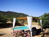 The terrace, which is directly accessible from the kitchen, with BBQ and outdoor seating area, guarantees short distances and barbecue experiences with fantastic views of the mountains. A total of four furnished, partially covered terraces with views in all four directions invite you to relax during the day or stargaze and moonbathe at night. The private pool is beautifully embedded in the landscape and offers pool loungers for sun-seekers, a covered lounge area for chatting with family and friends and, of course, cooling off and fun for water fans. Relaxing in the hammock is the order of the day. The 9000 square metre, fenced plot is planted with the olive and almond trees typical of the Campo, with flowering oleander bushes and a variety of trees and shrubs. Dogs are very welcome - if required, there is even a dog kennel with a separate off-leash area. The wide driveway with lockable gate borders the little-used but tarmac road, and there are numerous parking spaces available on the grounds.