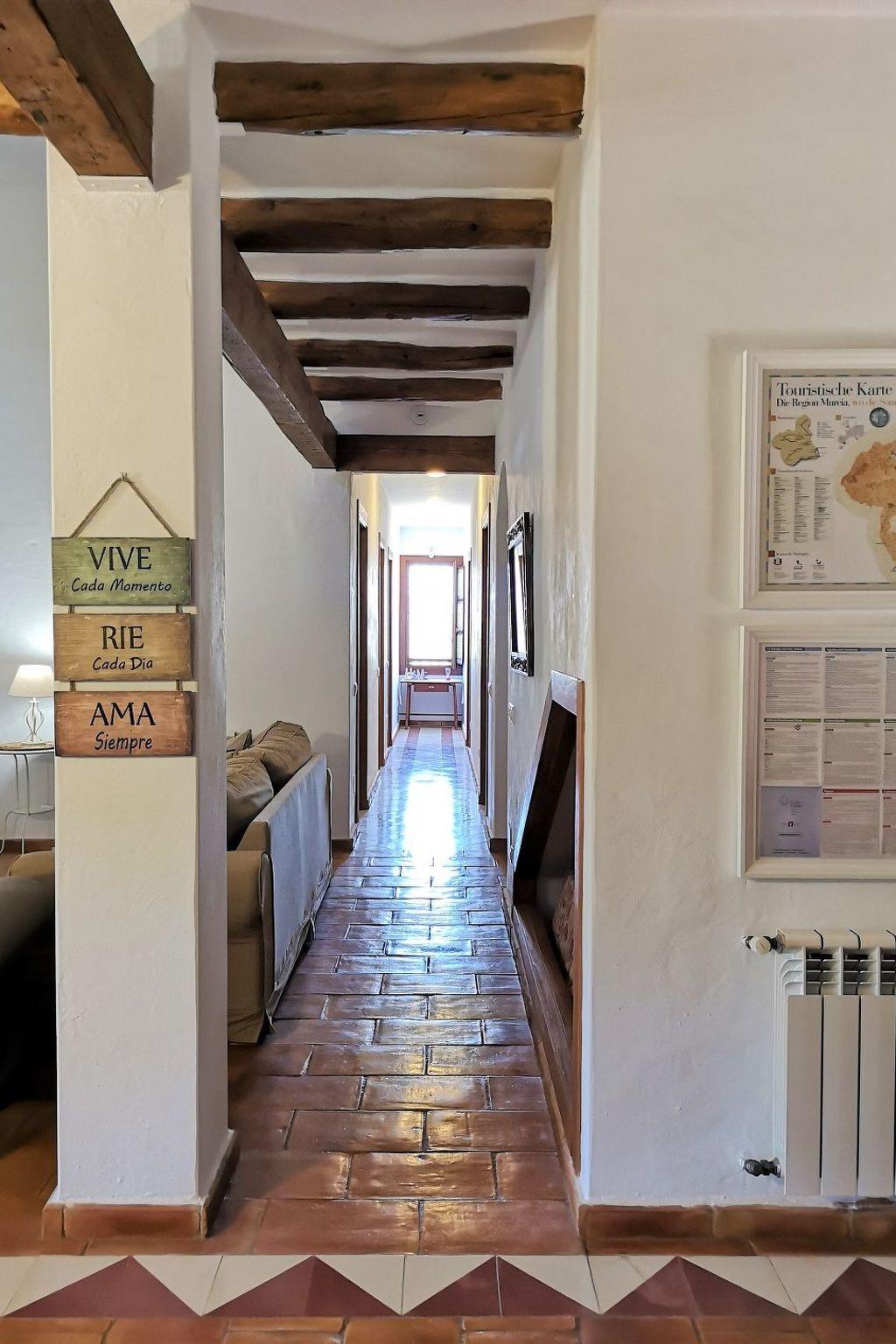 The rocks of the Valle de Ricote tower impressively into the steel-blue sky in sensational formations. Thousands of lemon and orange trees enchant the valley with their lush green colour and wonderful fruit. The intoxicating scent wafts through the air during the orange blossom season. The wind elegantly moves the palm fronds. The Moorish origins of the settlements are recognisable everywhere, as the Valle de Ricote reminded the Moors of their Moroccan valleys, among other things. Norias, the large, often wooden water wheels, are both a functioning and silent testimony to this time. Numerous well-marked hiking and walking trails lead through the valley or up the mountains, depending on the level of interest and difficulty. The views and vistas are always breathtaking and fascinating. The highest peak is called Los Almeces and is reached at 1122 metres above sea level. The neighbouring mountains are the territory of the local ibex, and hiking and climbing fans will love the wonderfully wooded mountain slopes of the Sierra de Ricote and the wildly rugged, varied Campo de Ricote above the valley. Almond and olive trees dominate the vegetation here, particularly impressive with the pink and white almond blossoms in spring. Rabbits feel at home here, the butterflies flutter around and the morning bird concerts are a delight. The evening fades into late autumn with chirping crickets, while the night delights curious stargazers and moonlight fans. The Mirador Alto del Bayna near Blanca, a viewing platform above the river, offers a unique, relaxed all-round view. The Azud de Ojós reservoir is a fresh water reserve, energy supplier, bird paradise and paddling area all in one. The Balneario de Archena thermal complex offers thermal baths, high-quality medical services and beauty treatments on an area of more than 200,000 square metres, located directly in the Valle de Ricote Nature Park. The surrounding towns of the holiday home are Blanca (4 km, approx. 6,500 inhabitants), Abarán (8 km, approx. 13,000 inhabitants) and Cieza (14 km, approx. 35,000 inhabitants) to the north-west and Ricote (5 km, approx. 1,500 inhabitants), Archena (14 km, approx. 20,000 inhabitants) and Murcia (35 km, approx. 450,000 inhabitants) to the south-east. Blanca already offers the complete infrastructure of shops for daily needs, doctors, pharmacies, restaurants, bars/cafés. In Ricote there is a weekly market on Tuesdays and in Blanca on Thursdays, both in the morning.