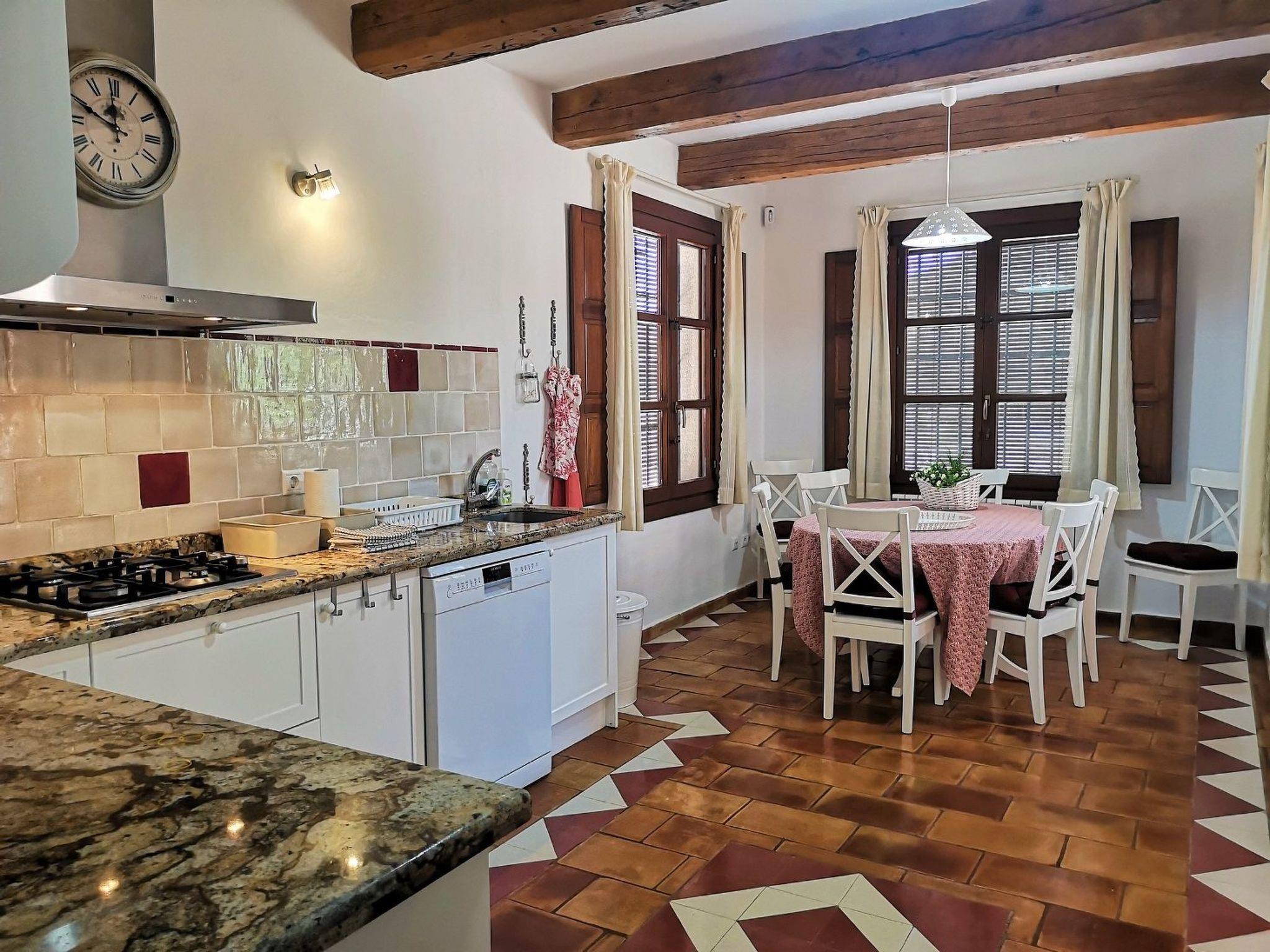 - Fully equipped kitchen with high-quality branded appliances double fridge, oven, gas hob and dishwasher, toaster, blender, Nespresso machine and kettle, plus dining table with eight chairs for socialising, cooking, eating, chatting or playing board games together. Including initial equipment dishwasher tabs, washing-up liquid, dish towels and potholders