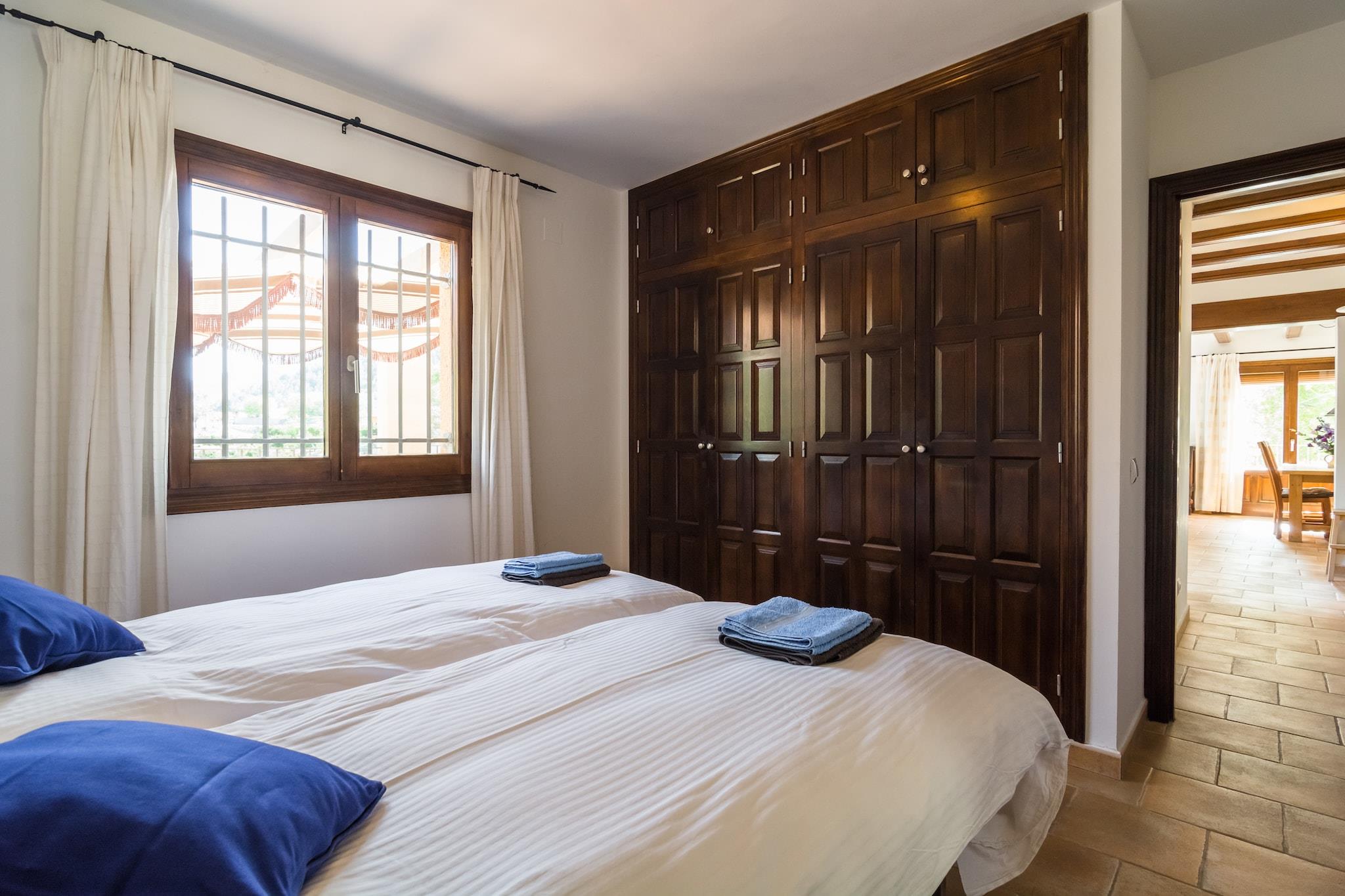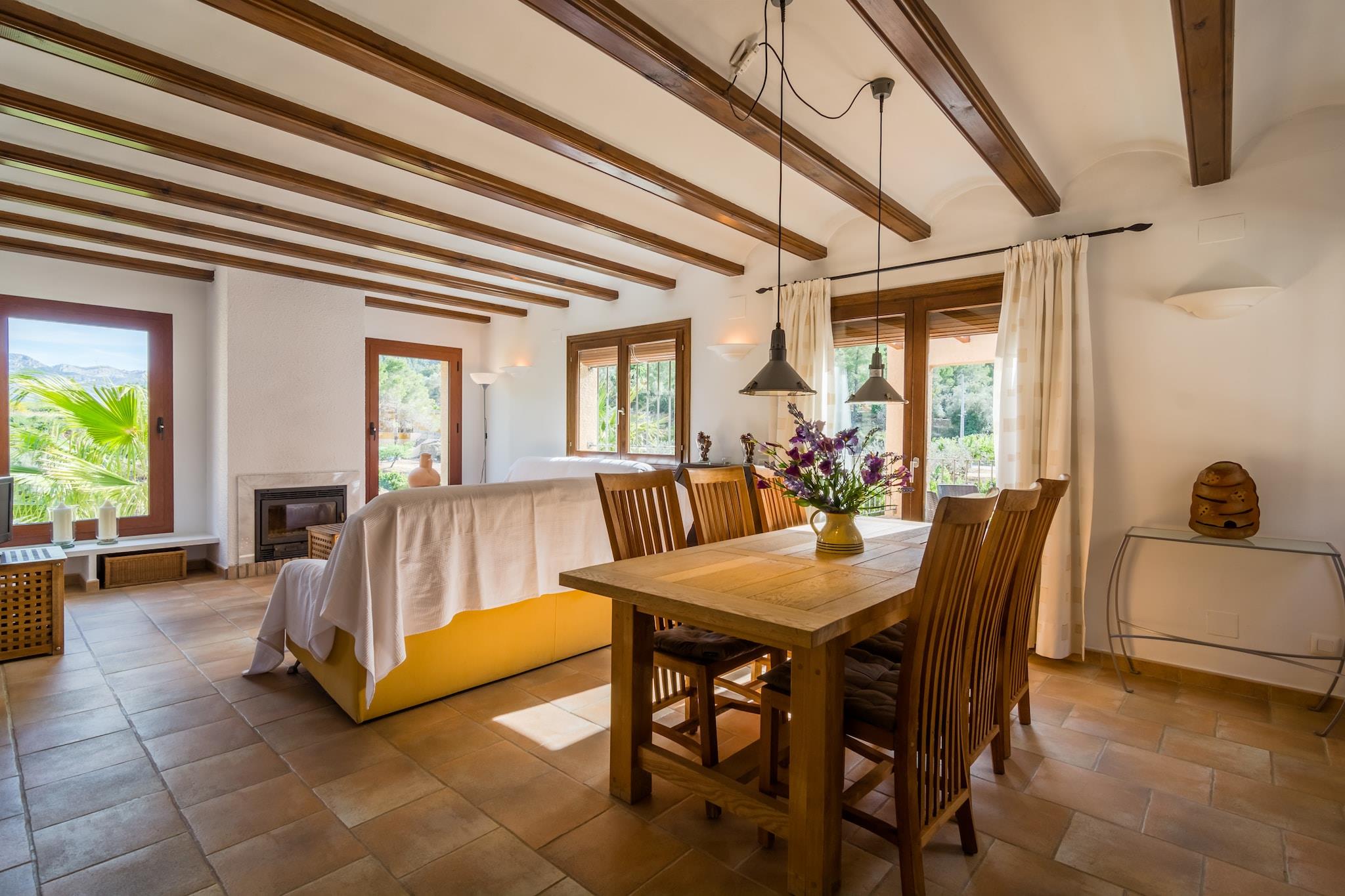 Set at the base of Caballo Verde and surrounded by forest, this peaceful villa in Murla offers a relaxing escape for families or small groups. The private swimming pool is perfect for cooling off on warm days, and the barbecue area invites you to enjoy outdoor meals in the fresh air. Inside, the villa is equipped with electric heating and features two bedrooms for four guests, plus a sofa bed in the living room that can accommodate two children. The location is ideal for exploring Costa Blanca’s beaches, where you can swim, snorkel, or enjoy the vibrant promenades. For nature lovers, hiking and horseback riding are nearby, while day trips to Javea, Moraira, and Calpe offer coastal charm. Valencia’s cultural highlights, including the Central Market and Albufera Park, are also within reach. The villa includes two terraces and a furnished garden for outdoor relaxation. A high chair is available on request, and bath towels are provided. Public transport is 18 km away, so renting a car is recommended.