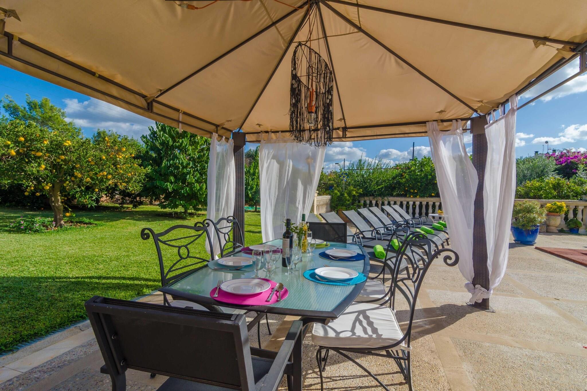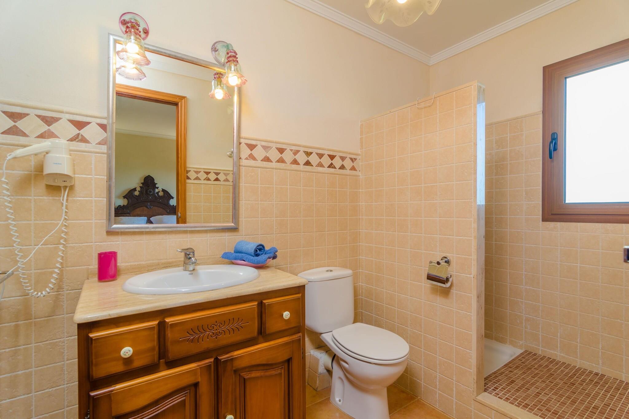 Denne smukke 250 m² villa nær Muro er det perfekte sted for en middelhavsflugt. Nyd solrige dage i den 4,5 x 8 m private pool, slap af i haven eller del måltider under den 100 m² møblerede veranda. Med en grill, et andet udendørs køkken (inklusive en opvaskemaskine) og et afslapningsområde er det et ideelt sted for familie eller venner at samles. En pergola ved poolen tilbyder endnu et sted at spise udendørs. Indvendigt har to-etagers huset tre soveværelser med aircondition (to med dobbeltsenge, et med to enkeltsenge) og fire badeværelser - tre med bruser og et med badekar. Den hyggelige stue inviterer dig til at slappe af med satellit-tv, og det fuldt udstyrede køkken har alt hvad du behøver for at tilberede lokale specialiteter. Der er også en vaskemaskine, strygejern og strygebræt for ekstra bekvemmelighed. Villaen ligger kun 500 m fra Muros centrum, tæt på butikker, restauranter og lokale tjenester. På 10 minutter kan du nå sandstrandene i Can Picafort eller Playa de Muro - perfekt til familier med lavt, klart vand. Nærliggende byer som Alcúdia og Pollença byder på charmerende bugter, god mad og naturskøn udsigt. Ideel til en afslappet ferie med gode forbindelser.