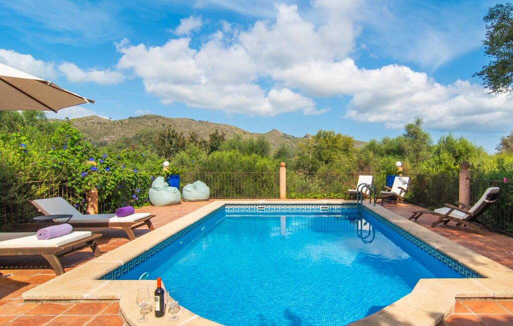 Bondegården "Na Mayans" fra 1700-tallet er blevet omhyggeligt restaureret. Det er omgivet af en smuk, ugeneret have og en 50.000 m² stor grund i den østlige del af Mallorca. Den frodige vegetation af palmer og bougainvillea byder på adskillige hyggelige tilflugtssteder og terrasser med masser af privatliv. Takket være sin høje beliggenhed byder poolområdet på en smuk udsigt over de bølgende bakker i Serra de Levant. Nyd socialt samvær og skønne grillaftener, og vælg jeres private sted til solbadning, læsning og afslapning i solen eller skyggen. Der er også et bordtennisbord og en boks med spil til børn. Indretningen imponerer med sin autentiske landstedsatmosfære. De originale elementer blev bibeholdt under renoveringen. Naturstensvægge, træbjælkelofter og sandstensbuer blev med succes kombineret med en lys, hyggelig dekoration. Fra entréen fører en stenbue direkte ind i den hyggelige stue med pejs. Til højre for entréen ligger spisestuen og et åbent, veludstyret køkken. Et arkitektonisk højdepunkt er det tilstødende hvælvede rum. I er velkommen til at spise jeres måltider her. Der er fire hyggelige dobbeltværelser på øverste etage. Et af soveværelserne har udgang til egen lille terrasse med en smuk udsigt over landskabet. Stuehuset ligger i det idylliske bakkelandskab mellem Artá ??og Capdepera på den østlige del af Mallorca. Begge landsbyer byder på gode indkøbsmuligheder omkring 10 minutter væk i bil. Den smukke sandstrand Cala Ratjada ligger 7 km derfra. Capdepera Golfbane ligger 2,4 km derfra. Området er ideelt til vandre- og cykelture.