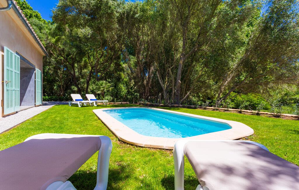 Mini fincas som "Na Mikeleta" er ikke nemme at finde på Mallorca, især ikke når den er så sød som denne. Derfor er vi rigtig glade for at kunne tilbyde endnu en attraktiv villa for op til to personer. Især en, der er et utroligt sted i naturen og slet ikke langt fra havet. Omgivet af et varieret landskab af skov og marker finder vi ejendommen på over 21.000 m² nær centrum af Capdepera, tæt på ruten til Son Servera. Rigelige originale arealer, en dekorativ og let hævet græsplæne med den ovale pool, en indbydende og delvist overdækket terrasse på huset samt træer, der giver masser af naturlig skygge, præger denne villas smukke udendørsområde. Liggestole og en BBQ-grill giver den sædvanlige komfort, I har brug for til en ubekymret dag i villaen. Når vejret er varmt, kan I spise alle jeres måltider på terrassen, mens I nyder udsigten over det grønne. Benyt ellers lejligheden til at ligge under middelhavshimlen og måske bare ikke lave noget – I er trods alt på ferie. Selve den delikate villa er en af de sjældne egenskaber, der kun har et soveværelse med dobbeltseng. Erfaring har vist, at små, stemningsfulde ejendomme som denne er ideelle til et par, der har planlagt deres egen individuelle ferie med god tid til hinanden. Når I kommer ind i husets indre fra terrassen, kommer I ind i et åbent køkken/alrum/alrum. Lyse væg- og møbelfarver, matchende loftsbjælker og gulvfliser samt den imponerende naturstensvæg udstråler en hyggelig og meget stilfuld flair. Opholdsstuen byder på et hyggeligt opholdsområde med brændeovn og satellit-tv. Det fremragende udstyret køkken med de sædvanlige hårde hvidevarer er ideelt for folk, der bevidst har besluttet sig for en ferie med egen forplejning. I når soveværelset med dobbeltseng via en åben passage. Et lyst badeværelse med bruser og den originale stenvask fuldender det kompakte interiør i denne charmerende villa. Mallorcas østkyst byder på en række forskellige landskaber. Og selvom villaen ligger i landlige omgivelser, ligger Mallorcas smukkeste naturstrande som Cala Torta eller Cala Mesquida kun en kort køretur væk på grund af villaens nærhed til forskellige veje. Hvis I leder efter variation, så tag en tur til de omkringliggende middelalderlandsbyer Artà og Capdepera, hvor der er et dejligt landmandsmarked på henholdsvis tirsdage og onsdage. I mellemtiden kan I finde underholdning og feststemning i Cala Ratjada, den populære havneby med sine barer, klubber og restauranter langs den maleriske havnepromenade. Lille, meget individuel villa "Na Mikeleta" ligger i et skovområde kun 4 km sydvest for Capdepera. Der er et ugentlig bondemarked i byen hver onsdag, hvor I kan købe friske lokale råvarer. I finder smukke strande i nærheden, herunder den smukke Sa Font de sa Cala, som kan nås på kun 10 minutter i bil. I kan også handle der og drage fordel af udvalget af barer og restauranter. For mere infrastruktur kan I blot køre til Cala Ratjada (7 km væk).