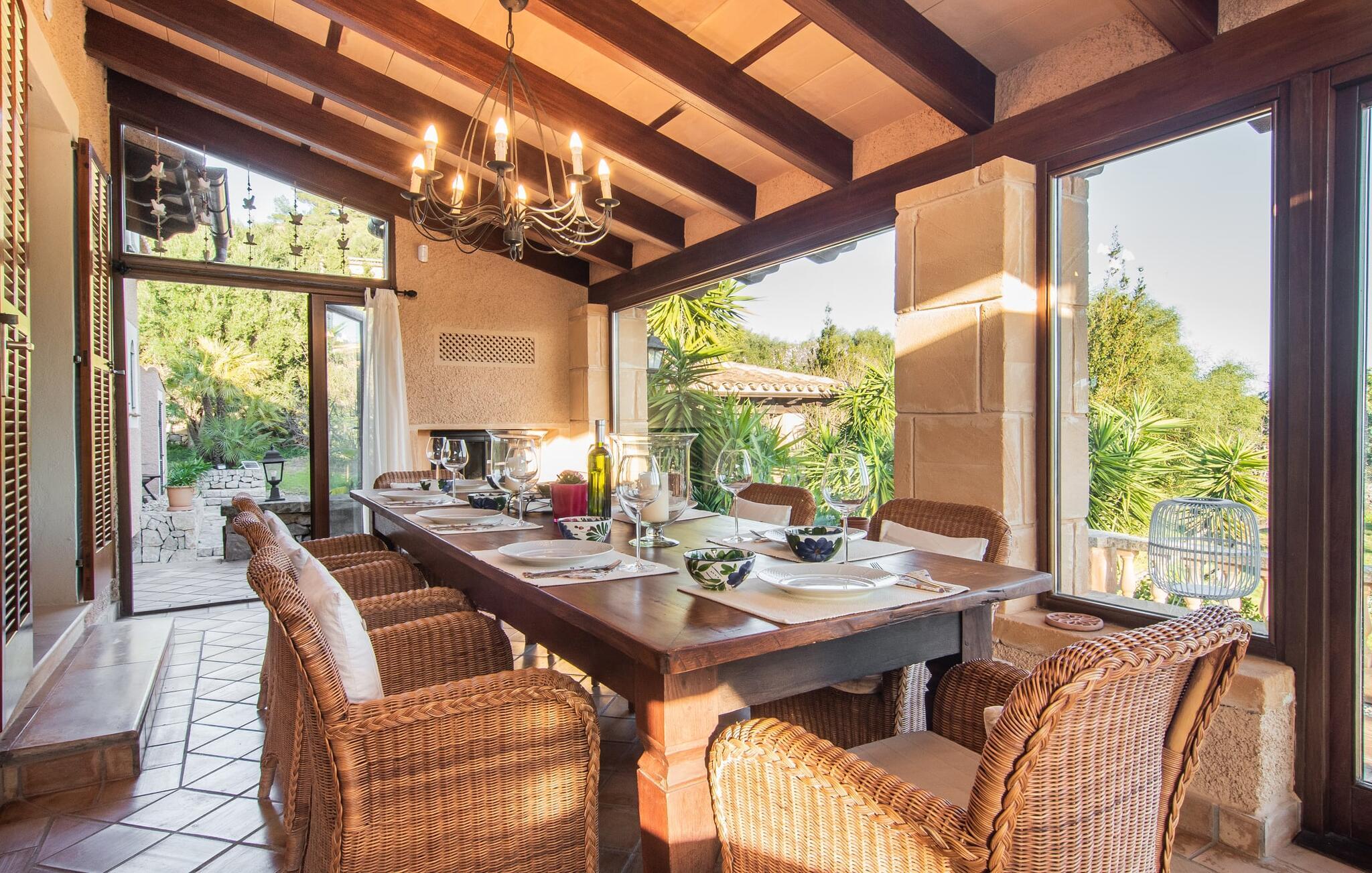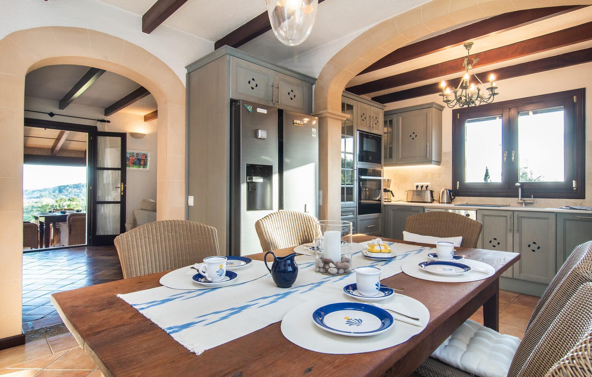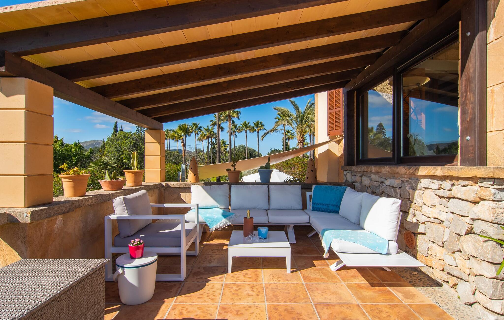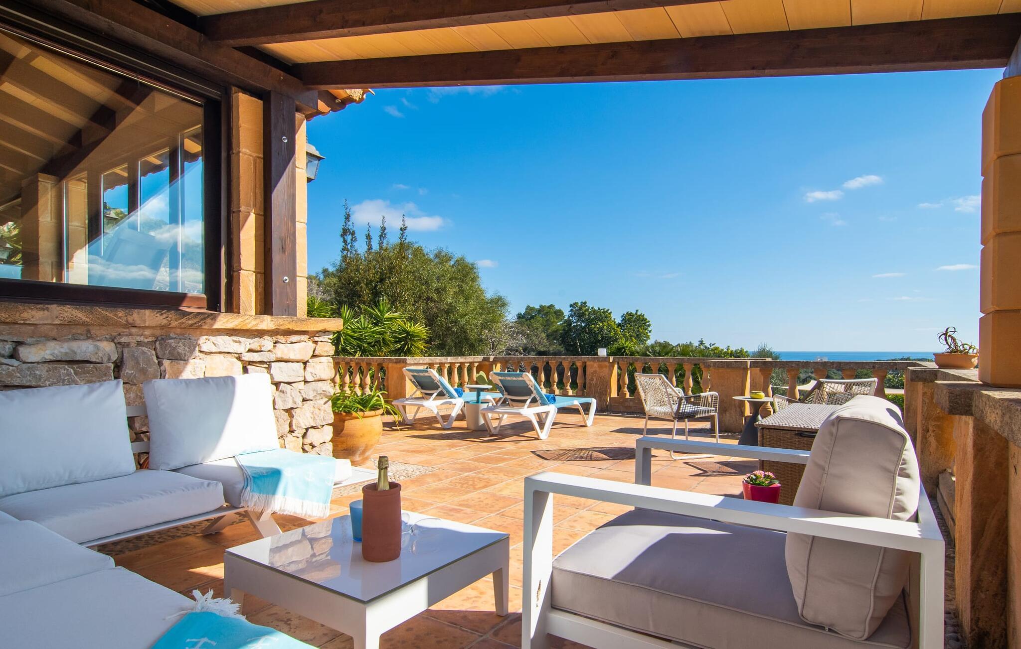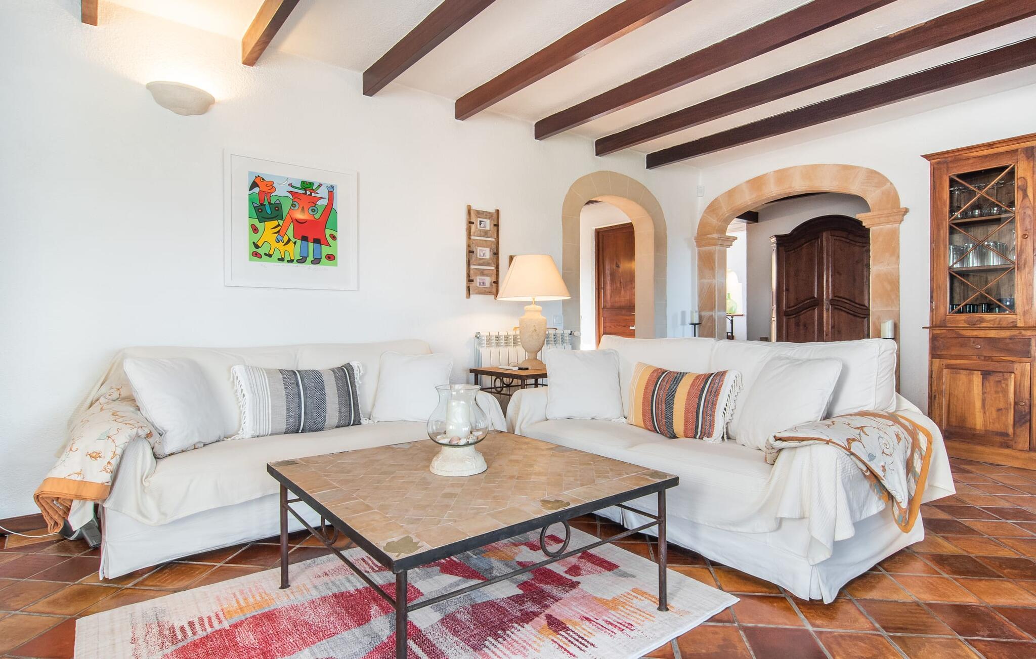 Det vidunderligt rolige feriehus "Na Nofre de Cala Ratjada" er omgivet af en rummelig have fuld af palmer, frugttræer og andre middelhavsplanter. I haveoasen vil I opdage den mosaikdækkede, klorfri pool. Den er opvarmet og kan derfor også bruges i lavsæsonen. Poolområdet har to udendørs brusere. Rundt om poolen er der liggestole i skyggen af markiser til en siesta eller den balinesiske dagseng til afslapning. Et andet højdepunkt er siddepladserne spredt ud over den spektakulære smukke have. På husets brolagte terrasser venter liggestole og et smart loungehjørne med markise. Efter en hyggelig grillaften på den overdækkede terrasse med spiseplads kan I slutte dagen af på tagterrassen med havudsigt. Der kan I nyde en uhindret panoramaudsigt over de bølgende bakker i Llevant-bjergene. Verandaen direkte ved huset byder på en anden spiseplads med en udendørs pejs. Hvis I værdsætter autentisk livsstil til jeres ferie på Mallorca, er dette charmerende og sofistikerede bondehus lige noget for jer. Det rustikke feriehus med moderne detaljer byder på masser af plads til op til 8 personer. Med sin opdeling i et hovedhus og en separat lejlighed kan dette store bondehus anbefales til at rejse med familien og især i flere generationer. I hovedhuset kan I nyde komforten i stuen med pejs og det separate køkken med spiseplads og smagfuld indretning. Der er fire soveværelser i alt (hvoraf det ene er et sammenhængende rum). Derudover er der to smarte badeværelser. Den separate lejlighed byder på kombineret opholds-, spise- og køkkenområde samt endnu et soveværelse og badeværelse. Der er adgang til en privat terrasse. “Na Nofre de Cala Ratjada” giver lyst til at tage på ferie til Mallorca. Vi kan ikke vente! Det idylliske bondehus "Na Nofre de Cala Ratjada" imponerer med sin opvarmede pool og tagterrasse med havudsigt med udsigt over den smukt anlagte have. Det roligt beliggende feriehus ligger på en skråning mellem Cala Ratjada og Capdepera, hvor I kan kombinere jeres shopping med at spise ude. Havet og de fantastiske strande er kun 8 minutter væk i bil.