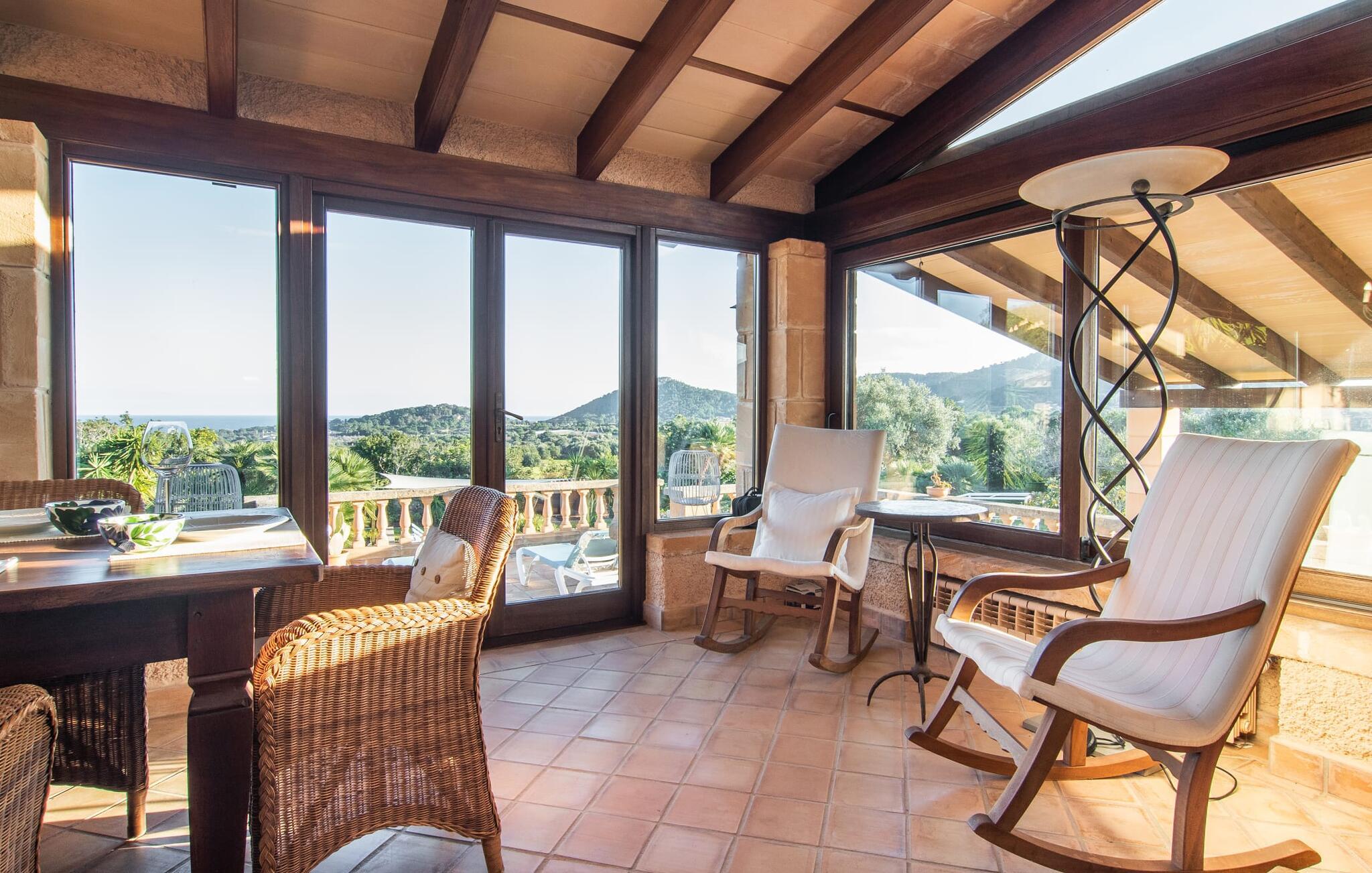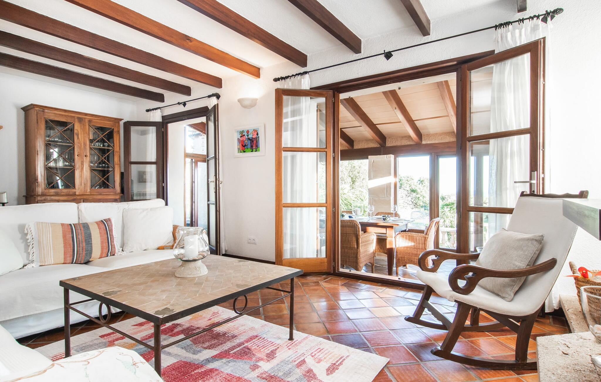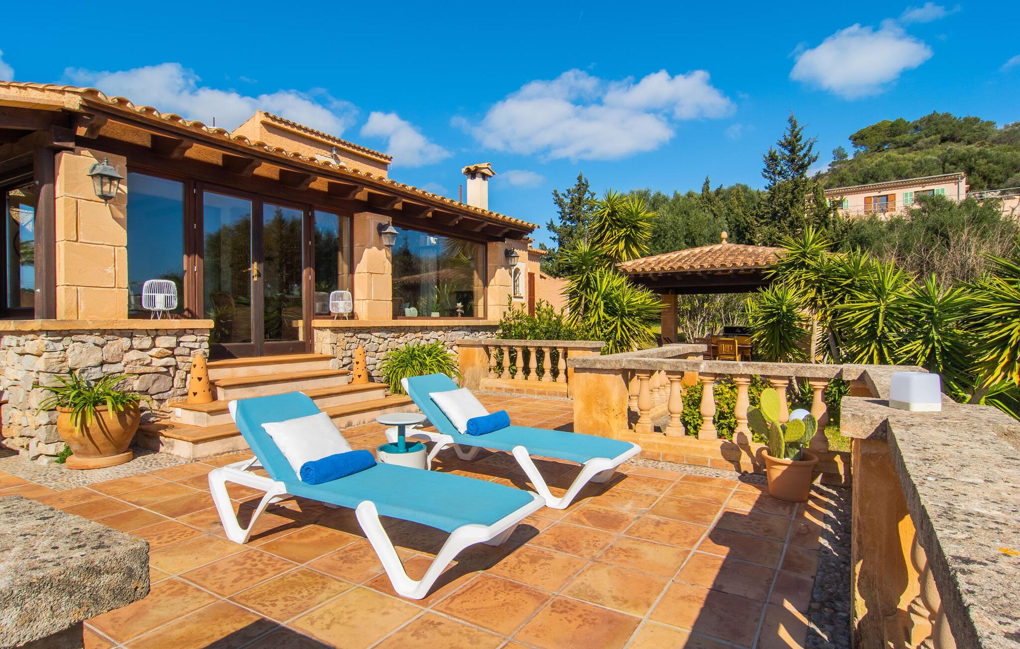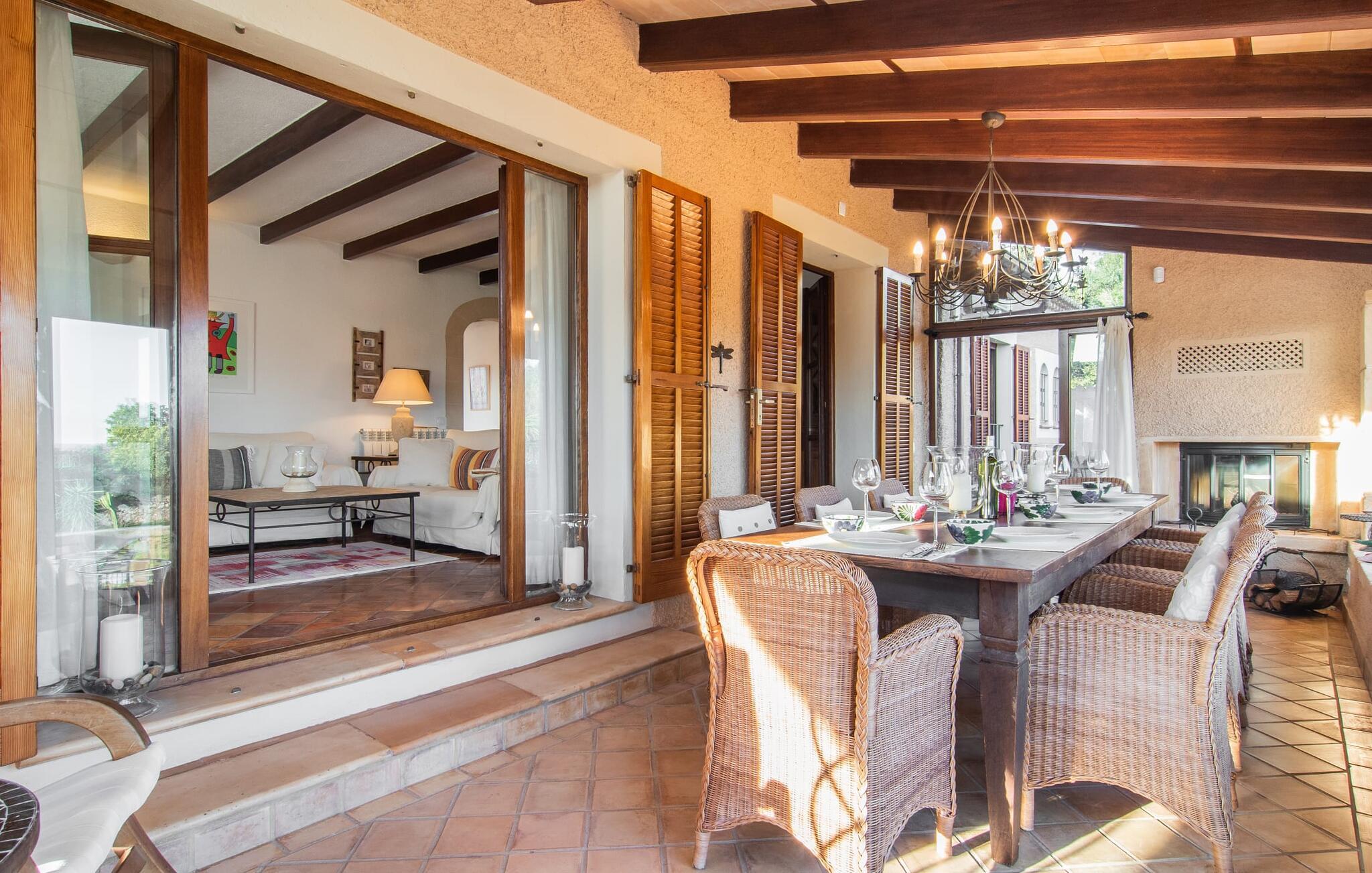 Det vidunderligt rolige feriehus "Na Nofre de Cala Ratjada" er omgivet af en rummelig have fuld af palmer, frugttræer og andre middelhavsplanter. I haveoasen vil I opdage den mosaikdækkede, klorfri pool. Den er opvarmet og kan derfor også bruges i lavsæsonen. Poolområdet har to udendørs brusere. Rundt om poolen er der liggestole i skyggen af markiser til en siesta eller den balinesiske dagseng til afslapning. Et andet højdepunkt er siddepladserne spredt ud over den spektakulære smukke have. På husets brolagte terrasser venter liggestole og et smart loungehjørne med markise. Efter en hyggelig grillaften på den overdækkede terrasse med spiseplads kan I slutte dagen af på tagterrassen med havudsigt. Der kan I nyde en uhindret panoramaudsigt over de bølgende bakker i Llevant-bjergene. Verandaen direkte ved huset byder på en anden spiseplads med en udendørs pejs. Hvis I værdsætter autentisk livsstil til jeres ferie på Mallorca, er dette charmerende og sofistikerede bondehus lige noget for jer. Det rustikke feriehus med moderne detaljer byder på masser af plads til op til 8 personer. Med sin opdeling i et hovedhus og en separat lejlighed kan dette store bondehus anbefales til at rejse med familien og især i flere generationer. I hovedhuset kan I nyde komforten i stuen med pejs og det separate køkken med spiseplads og smagfuld indretning. Der er fire soveværelser i alt (hvoraf det ene er et sammenhængende rum). Derudover er der to smarte badeværelser. Den separate lejlighed byder på kombineret opholds-, spise- og køkkenområde samt endnu et soveværelse og badeværelse. Der er adgang til en privat terrasse. “Na Nofre de Cala Ratjada” giver lyst til at tage på ferie til Mallorca. Vi kan ikke vente! Det idylliske bondehus "Na Nofre de Cala Ratjada" imponerer med sin opvarmede pool og tagterrasse med havudsigt med udsigt over den smukt anlagte have. Det roligt beliggende feriehus ligger på en skråning mellem Cala Ratjada og Capdepera, hvor I kan kombinere jeres shopping med at spise ude. Havet og de fantastiske strande er kun 8 minutter væk i bil.
