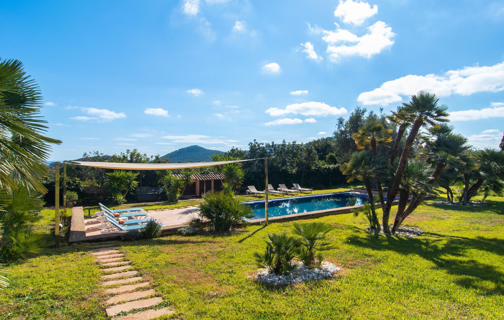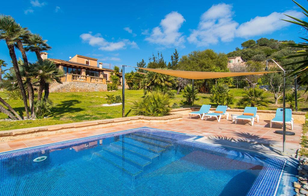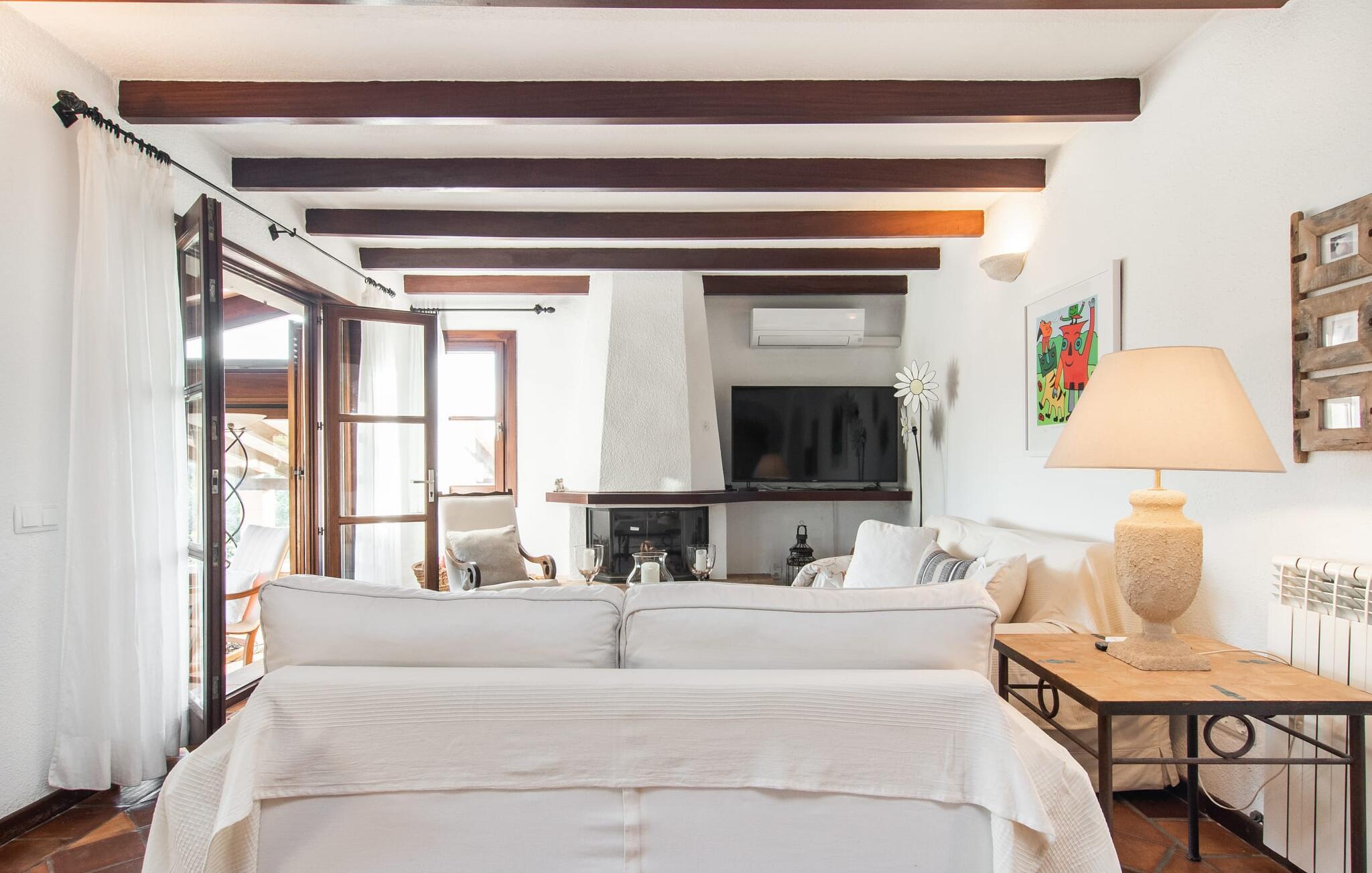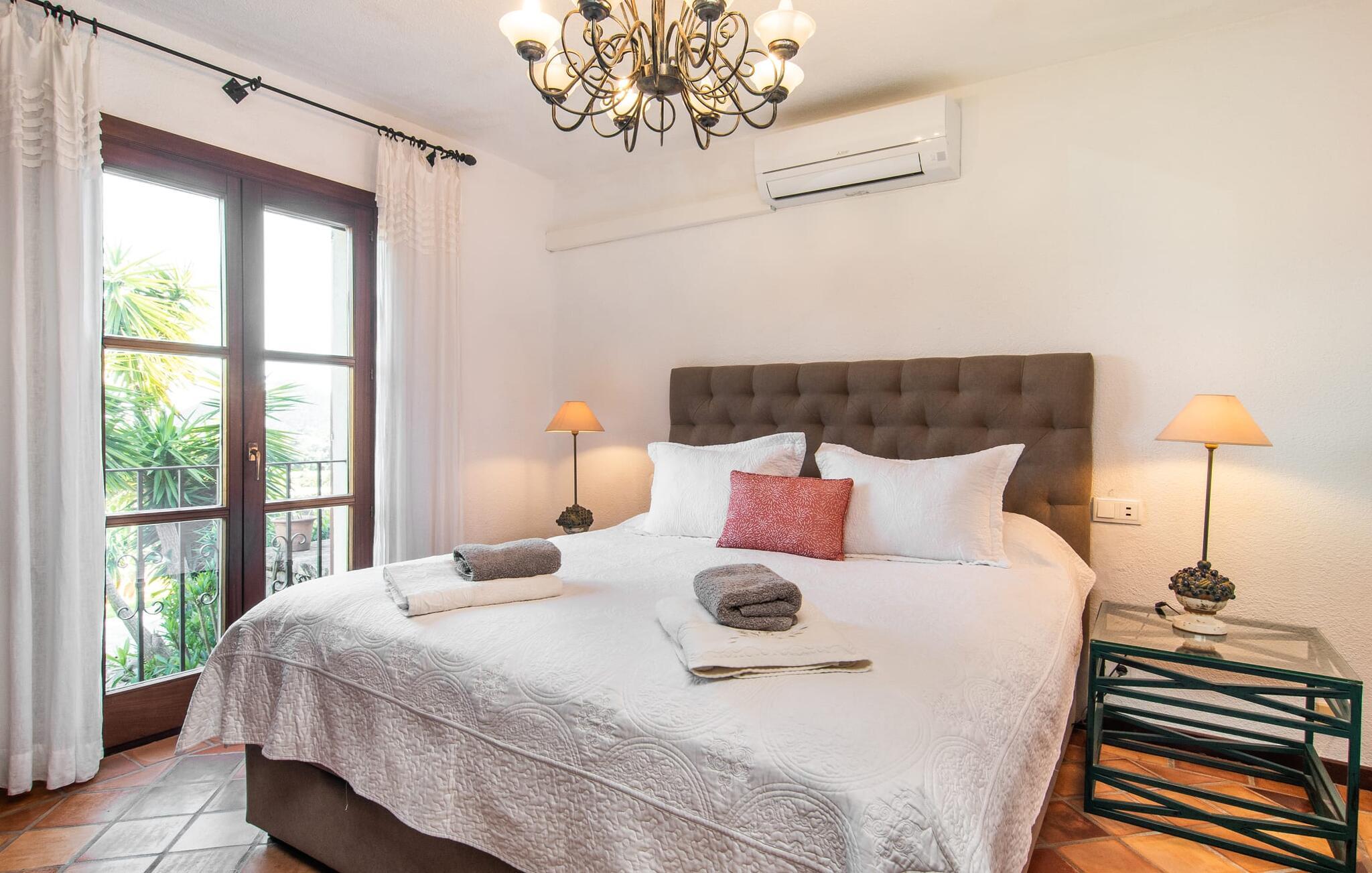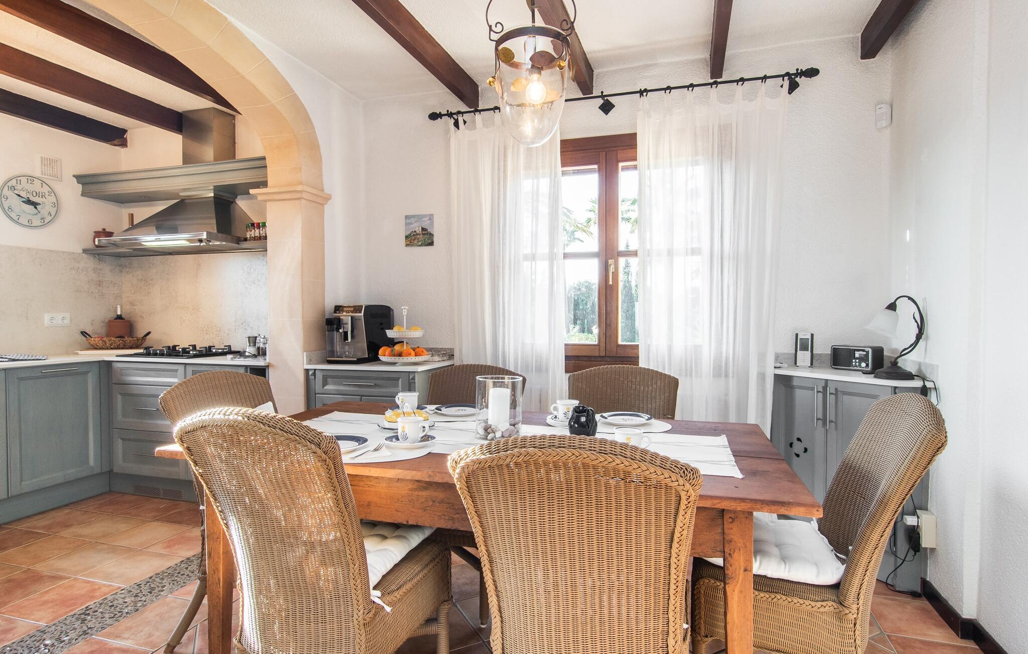 Det vidunderligt rolige feriehus "Na Nofre de Cala Ratjada" er omgivet af en rummelig have fuld af palmer, frugttræer og andre middelhavsplanter. I haveoasen vil I opdage den mosaikdækkede, klorfri pool. Den er opvarmet og kan derfor også bruges i lavsæsonen. Poolområdet har to udendørs brusere. Rundt om poolen er der liggestole i skyggen af markiser til en siesta eller den balinesiske dagseng til afslapning. Et andet højdepunkt er siddepladserne spredt ud over den spektakulære smukke have. På husets brolagte terrasser venter liggestole og et smart loungehjørne med markise. Efter en hyggelig grillaften på den overdækkede terrasse med spiseplads kan I slutte dagen af på tagterrassen med havudsigt. Der kan I nyde en uhindret panoramaudsigt over de bølgende bakker i Llevant-bjergene. Verandaen direkte ved huset byder på en anden spiseplads med en udendørs pejs. Hvis I værdsætter autentisk livsstil til jeres ferie på Mallorca, er dette charmerende og sofistikerede bondehus lige noget for jer. Det rustikke feriehus med moderne detaljer byder på masser af plads til op til 8 personer. Med sin opdeling i et hovedhus og en separat lejlighed kan dette store bondehus anbefales til at rejse med familien og især i flere generationer. I hovedhuset kan I nyde komforten i stuen med pejs og det separate køkken med spiseplads og smagfuld indretning. Der er fire soveværelser i alt (hvoraf det ene er et sammenhængende rum). Derudover er der to smarte badeværelser. Den separate lejlighed byder på kombineret opholds-, spise- og køkkenområde samt endnu et soveværelse og badeværelse. Der er adgang til en privat terrasse. “Na Nofre de Cala Ratjada” giver lyst til at tage på ferie til Mallorca. Vi kan ikke vente! Det idylliske bondehus "Na Nofre de Cala Ratjada" imponerer med sin opvarmede pool og tagterrasse med havudsigt med udsigt over den smukt anlagte have. Det roligt beliggende feriehus ligger på en skråning mellem Cala Ratjada og Capdepera, hvor I kan kombinere jeres shopping med at spise ude. Havet og de fantastiske strande er kun 8 minutter væk i bil.