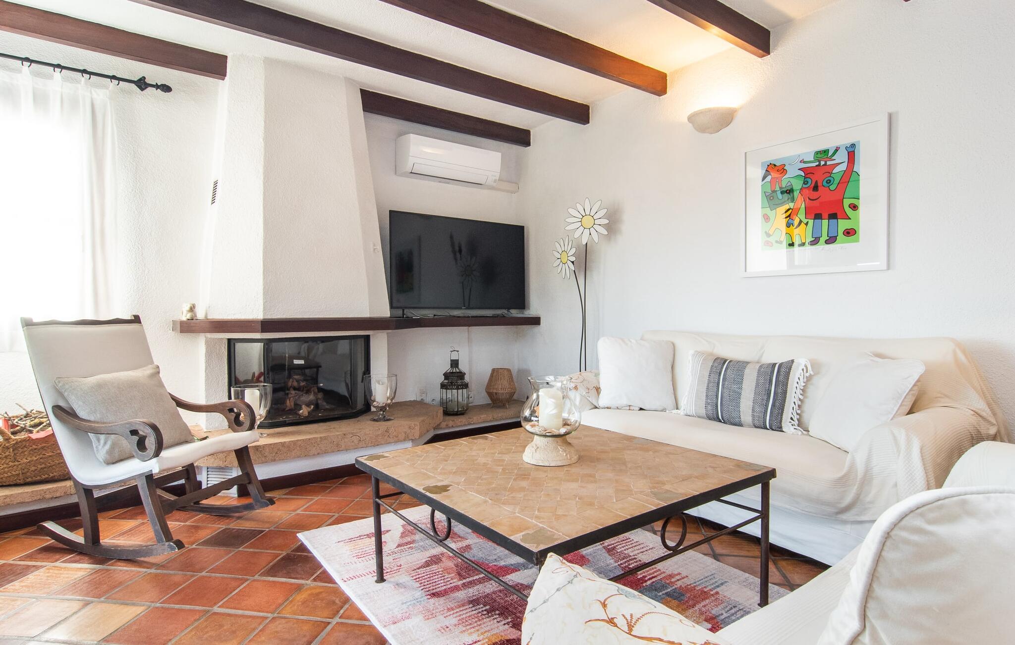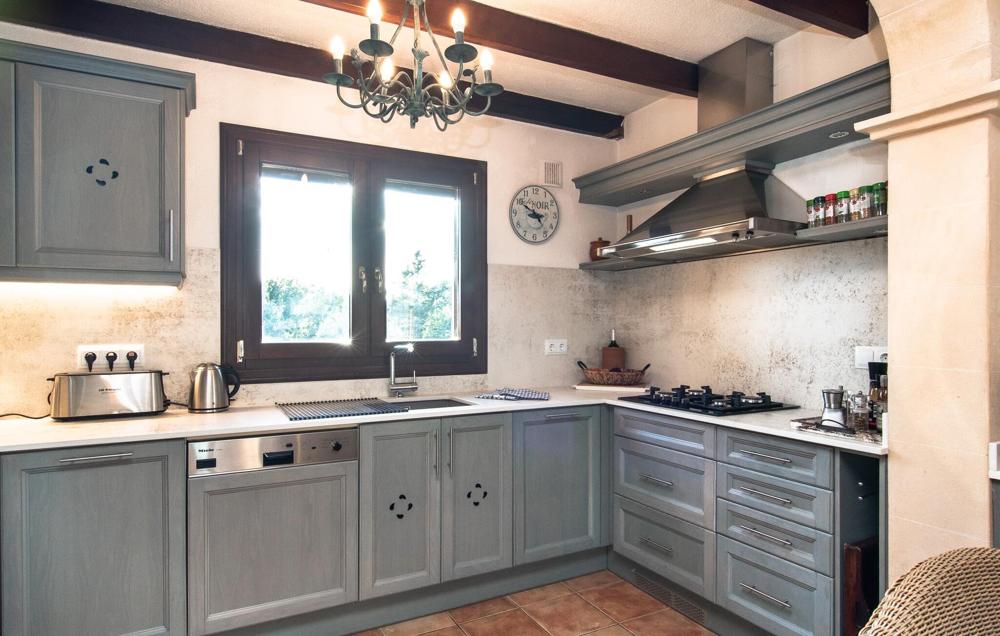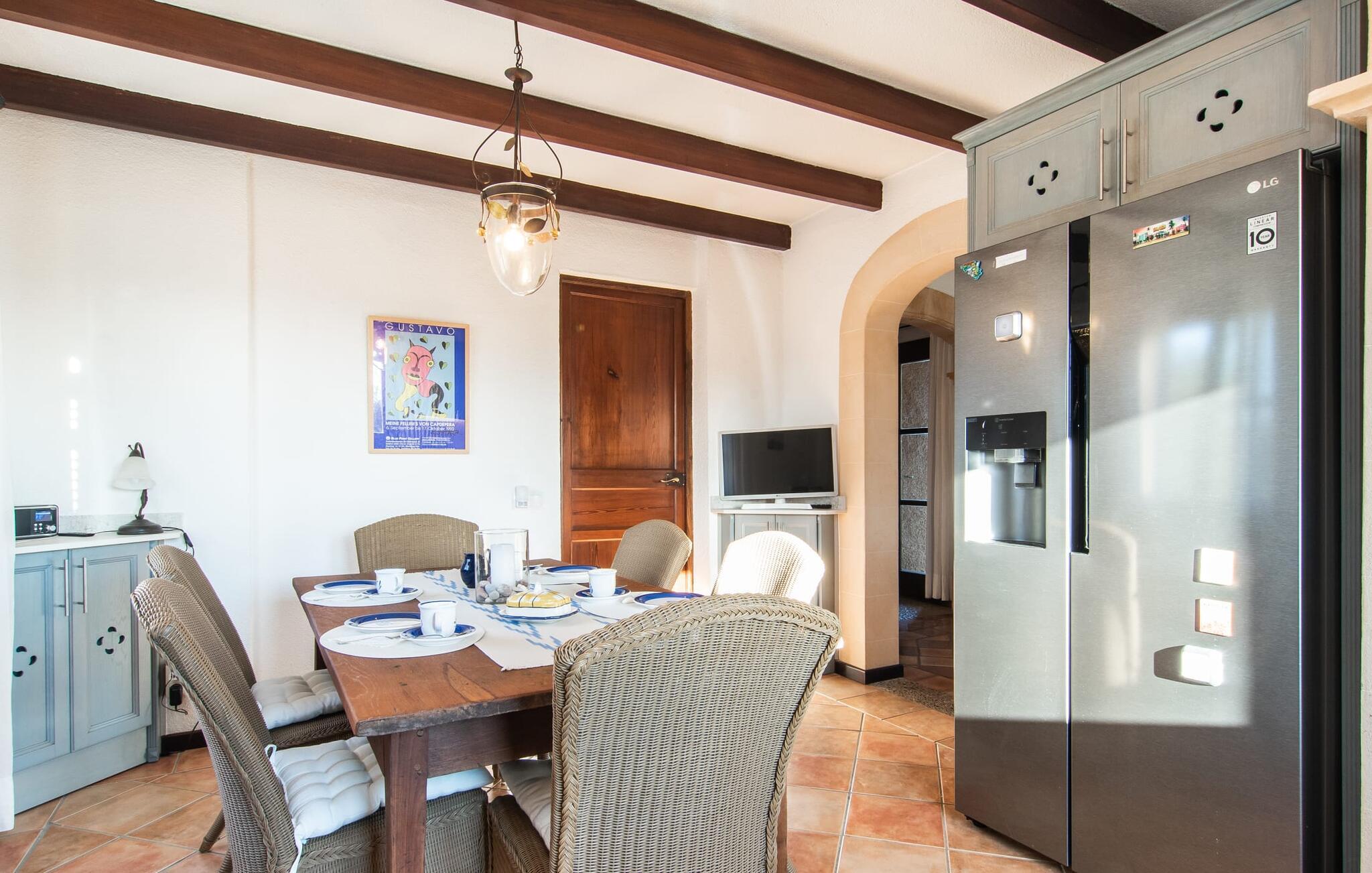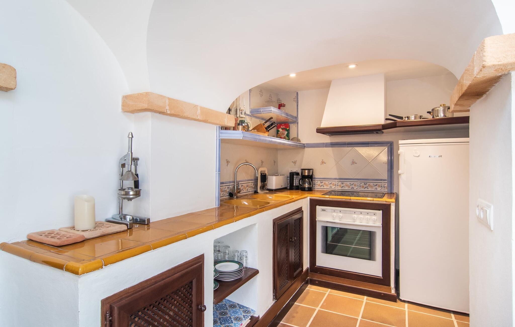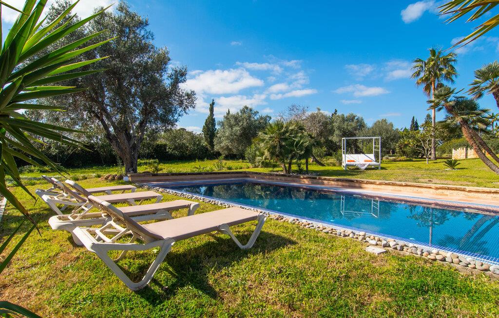 Det vidunderligt rolige feriehus "Na Nofre de Cala Ratjada" er omgivet af en rummelig have fuld af palmer, frugttræer og andre middelhavsplanter. I haveoasen vil I opdage den mosaikdækkede, klorfri pool. Den er opvarmet og kan derfor også bruges i lavsæsonen. Poolområdet har to udendørs brusere. Rundt om poolen er der liggestole i skyggen af markiser til en siesta eller den balinesiske dagseng til afslapning. Et andet højdepunkt er siddepladserne spredt ud over den spektakulære smukke have. På husets brolagte terrasser venter liggestole og et smart loungehjørne med markise. Efter en hyggelig grillaften på den overdækkede terrasse med spiseplads kan I slutte dagen af på tagterrassen med havudsigt. Der kan I nyde en uhindret panoramaudsigt over de bølgende bakker i Llevant-bjergene. Verandaen direkte ved huset byder på en anden spiseplads med en udendørs pejs. Hvis I værdsætter autentisk livsstil til jeres ferie på Mallorca, er dette charmerende og sofistikerede bondehus lige noget for jer. Det rustikke feriehus med moderne detaljer byder på masser af plads til op til 8 personer. Med sin opdeling i et hovedhus og en separat lejlighed kan dette store bondehus anbefales til at rejse med familien og især i flere generationer. I hovedhuset kan I nyde komforten i stuen med pejs og det separate køkken med spiseplads og smagfuld indretning. Der er fire soveværelser i alt (hvoraf det ene er et sammenhængende rum). Derudover er der to smarte badeværelser. Den separate lejlighed byder på kombineret opholds-, spise- og køkkenområde samt endnu et soveværelse og badeværelse. Der er adgang til en privat terrasse. “Na Nofre de Cala Ratjada” giver lyst til at tage på ferie til Mallorca. Vi kan ikke vente! Det idylliske bondehus "Na Nofre de Cala Ratjada" imponerer med sin opvarmede pool og tagterrasse med havudsigt med udsigt over den smukt anlagte have. Det roligt beliggende feriehus ligger på en skråning mellem Cala Ratjada og Capdepera, hvor I kan kombinere jeres shopping med at spise ude. Havet og de fantastiske strande er kun 8 minutter væk i bil.