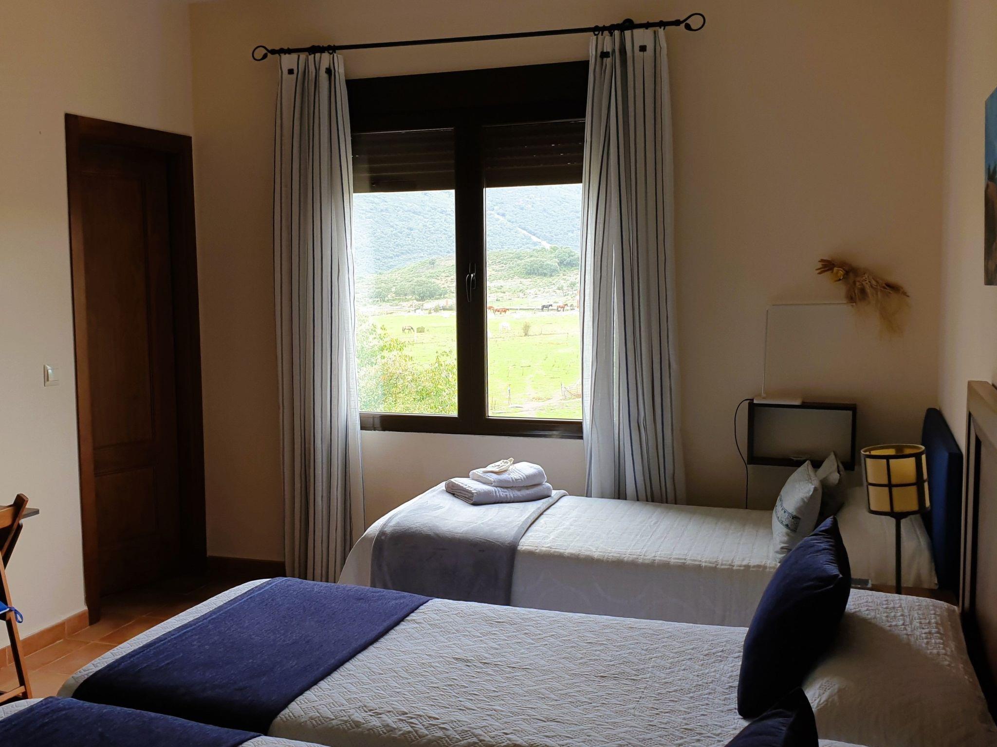 This detached holiday home in Navas de Estena (Cabañeros National Park) is the perfect place to stay for up to 6 people. With 2 bedrooms and 2 bathrooms equipped with shower, this accommodation offers privacy and comfort. Enjoy refreshing moments in the exclusive use swimming pool or relax in its exclusive garden. The house has a terrace, balcony and a private roof terrace, ideal spaces to enjoy outdoor moments without leaving the house.