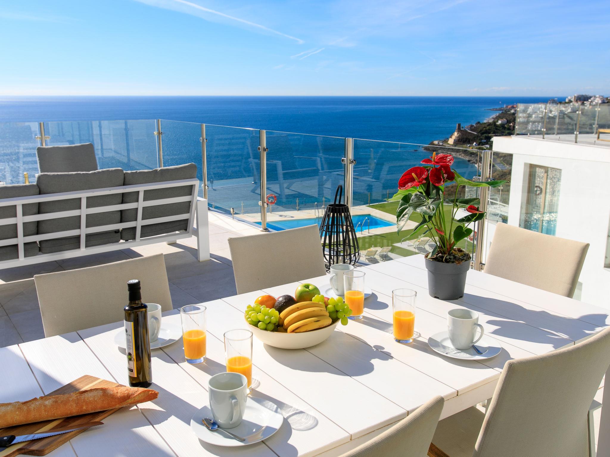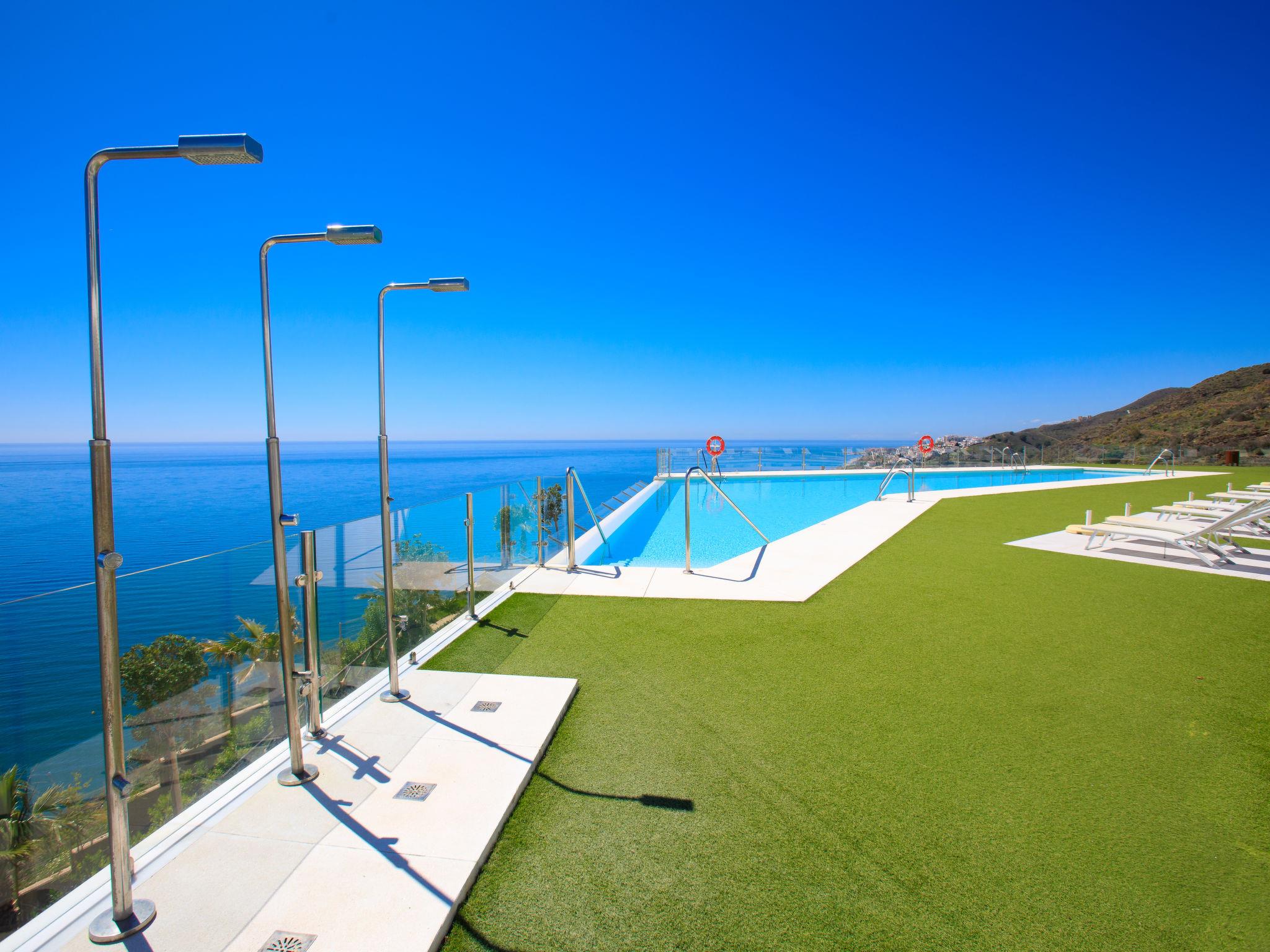 Nerja: Amazing complex with fantastic views over the Mediterraneo. Outdoor pool, indoor heated pool, games room, sauna available from October until end of March. Modern, beautiful, comfortable apartment block "Nerja view free sauna and spa". 5 km from the centre of Nerja, 1 km from the sea, 1 km from the beach, in a cul-de-sac. For shared use: 2 swimming pools, indoor pool heated (seasonal availability: 01.Jan. - 31.Dec.). Shower/WC in the pool area, children's pool, table tennis, garden furniture, children's playground. In the house: sauna, fitness room, spa area for shared use, billiard table, playroom, table football, lift, air conditioning. Parking space n 14. Shop 5 km, shopping centre 23 km, bus stop 1 km, railway station "Málaga Maria Zambrano" 55 km, sandy beach "Vílchez" 1 km pebble beach "Burriana" 6 km, diving center 5 km. Sports harbour 20 km, golf course (18 hole) 23 km, riding stable 7 km, sports centre 50 km. Nearby attractions: Museo de Nerja, Cuevas de Nerja, Acantilados de Maro, Aquavelis, Museo de Miel de Caña Frigiliana, Museo del Vino Competa. Well-known ski regions can easily be reached: Sierra Nevada. Hiking paths: Sierra Tejeda, Sierra Almijara. Please note: car recommended. The owner does not accept any youth groups. Loading and unloading of baggage is possible at the holiday house. Property ref. ES5405.764.1 is situated on the same property.