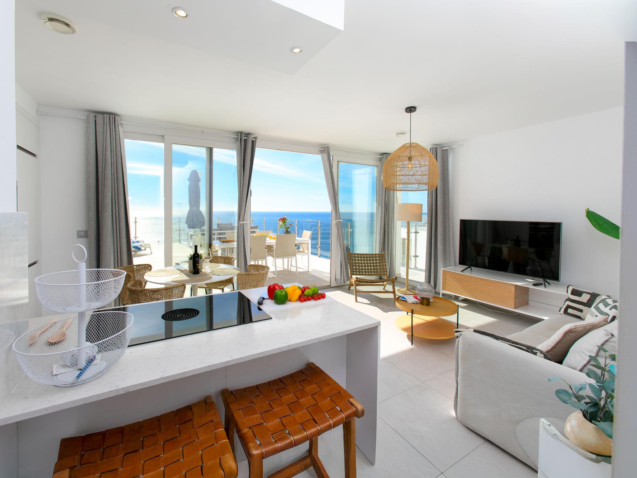 "Nerja view free Sauna & Spa", 3-room apartment 66 m2. Spacious and bright, comfortable and beautiful furnishings: living/dining room with digital TV, air conditioning and forced-air heating. Exit to the terrace. 1 room with 1 french bed (160 cm, length 200 cm), shower/WC, air conditioning and forced-air heating. Exit to the terrace. 1 room with 1 x 2 bunk beds (140 cm, length 200 cm), air conditioning and forced-air heating. Exit to the terrace. Open kitchen (oven, dishwasher, 4 ceramic glass hob hotplates, toaster, kettle, microwave, freezer, electric coffee machine). Shower/WC. Terrace furniture, barbecue, deck chairs. Panoramic view of the sea, the mountains and the resort. Facilities: washing machine, safe, iron, children's high chair, baby cot for up to 3 year olds, hair dryer. Internet (WiFi, free). VUT/MA/472266 // Reg. Nr.: ESFCTU0000290130010873330000000000000000VUT/MA/472266