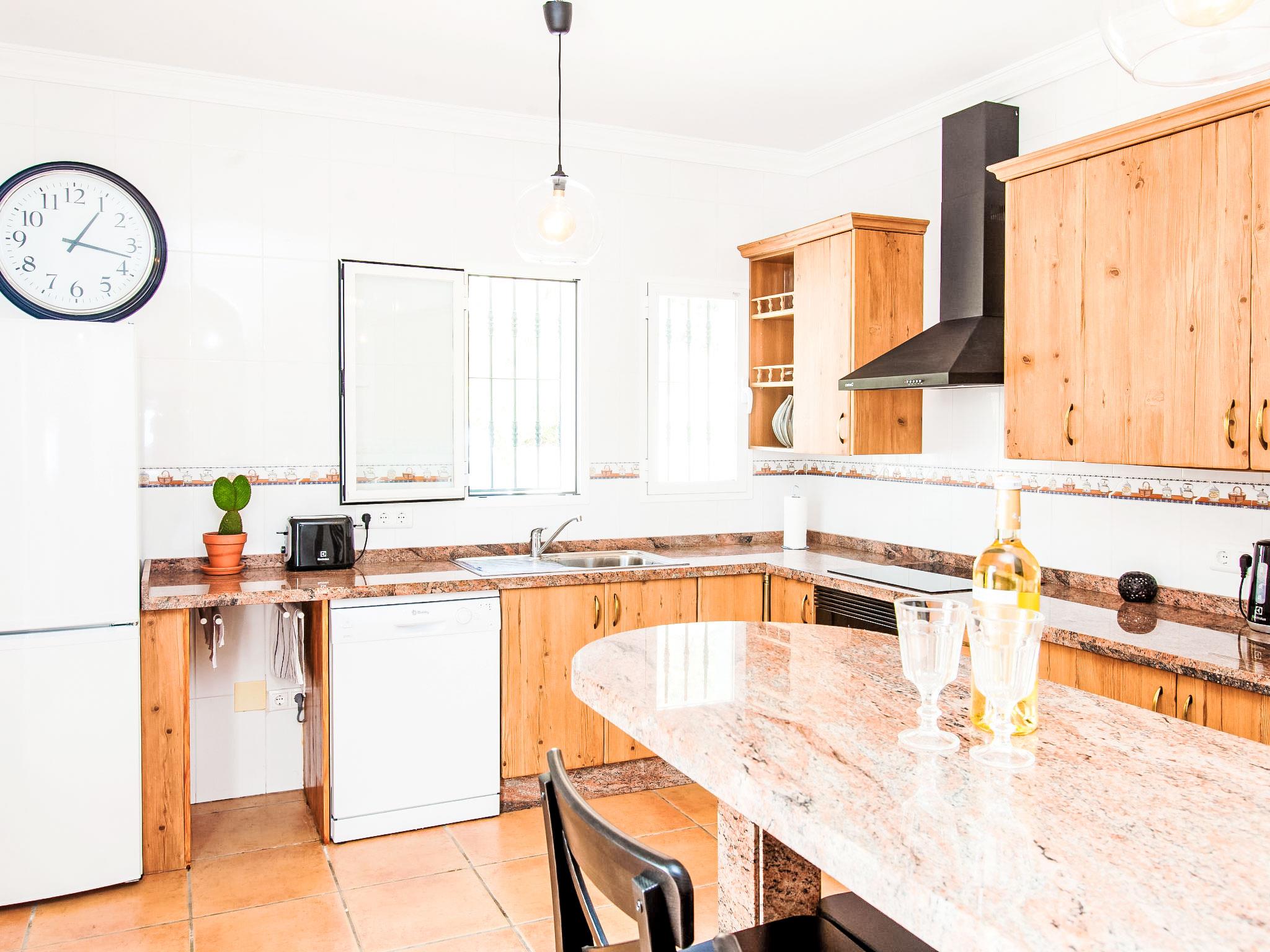 "Villa Rosa Blanca", 4-room house 120 m2. Bright, comfortable and tasteful furnishings: living/dining room with TV, wood-burning stove and air conditioning. 1 room with 2 beds (90 cm, length 200 cm), fan. 1 room with 2 beds (90 cm, length 200 cm), fan. 1 room with 1 bed (180 cm, length 200 cm), shower/WC and air conditioning. Kitchen (oven, dishwasher, 4 ceramic glass hob hotplates). Shower/WC. Large terrace. Terrace furniture, barbecue, deck chairs. Panoramic view of the sea. Facilities: washing machine, dryer. Internet (WiFi, free). Suitable for families. Refundable breakage deposit of 950 euros requested for groups of youngsters under 25 years of age payable in cash upon arrival, this is returned on departure. CR/MA/01261 // Reg. Nr.: ESFCTU00002901300099691900000000000000000CR/MA/012611