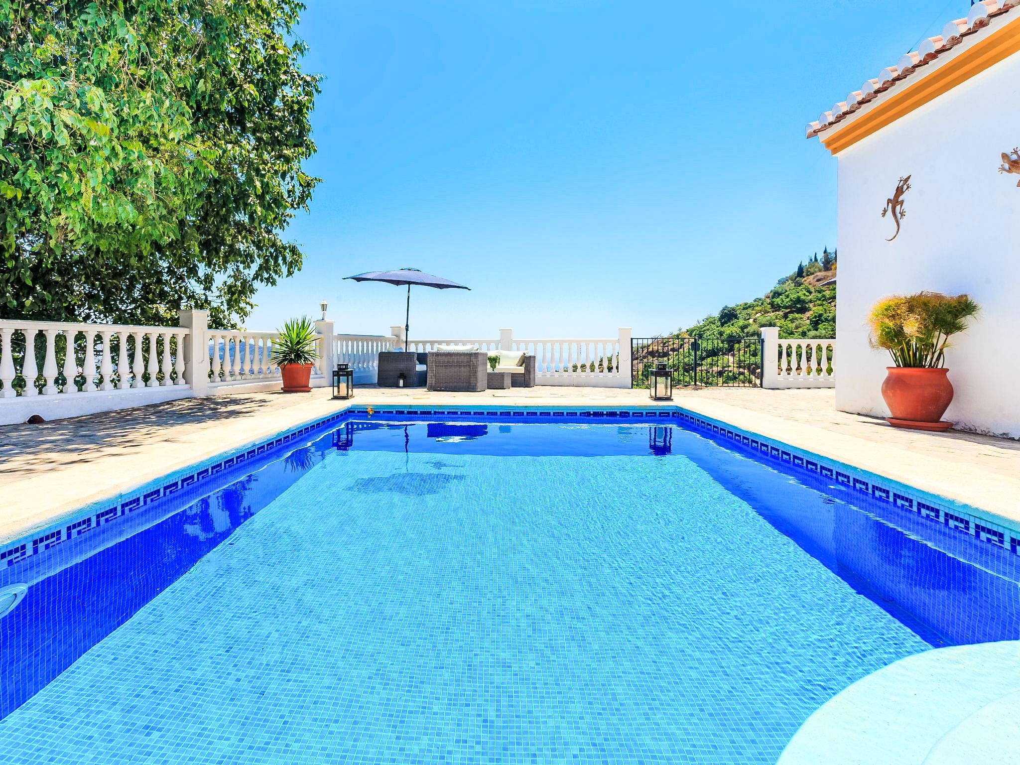 Torrox 10 km from Torrox Costa: Beautiful, comfortable house "Villa Rosa Blanca". Outside the resort, 7 km from the centre of pueblo de Torrox, in the district Torrox, in a quiet position, 10 km from the sea, in the countryside. Private: natural garden, swimming pool angular (6 x 4 m, seasonal availability: 01.Jan. - 31.Dec.). Outdoor shower, terrace, garden furniture, barbecue. In the house: internet access, WiFi, sun terrace, roof terrace, washing machine, tumble dryer. 2 km long steep, narrow motor access (2 km via unmade road). Parking space n 1 (for 2 cars) at the house on the premises. Shop 7 km, grocery 7 km, supermarket 7 km, shopping centre 25 km, restaurant 7 km, bar 7 km, bakery 7 km, café 7 km, pedestrian zone 7 km, bus stop "Torrox" 7 km, sandy beach "Torrox Costa" 10 km, diving center 10 km. Sports harbour 25 km, golf course (18 hole) 20 km. Nearby attractions: Torrox pueblo 7 km, Nerja 20 km, Frigiliana 23 km, Malaga 70 km, Competa 10 km. Well-known ski regions can easily be reached: Sierra Nevada. Well-known lakes can easily be reached: La Viñuela 35 km. Hiking paths: Almijara 20 km. Please note: car recommended. Baby equipment (included). Groups of teenagers on request only. Loading and unloading of baggage is possible at the holiday house.