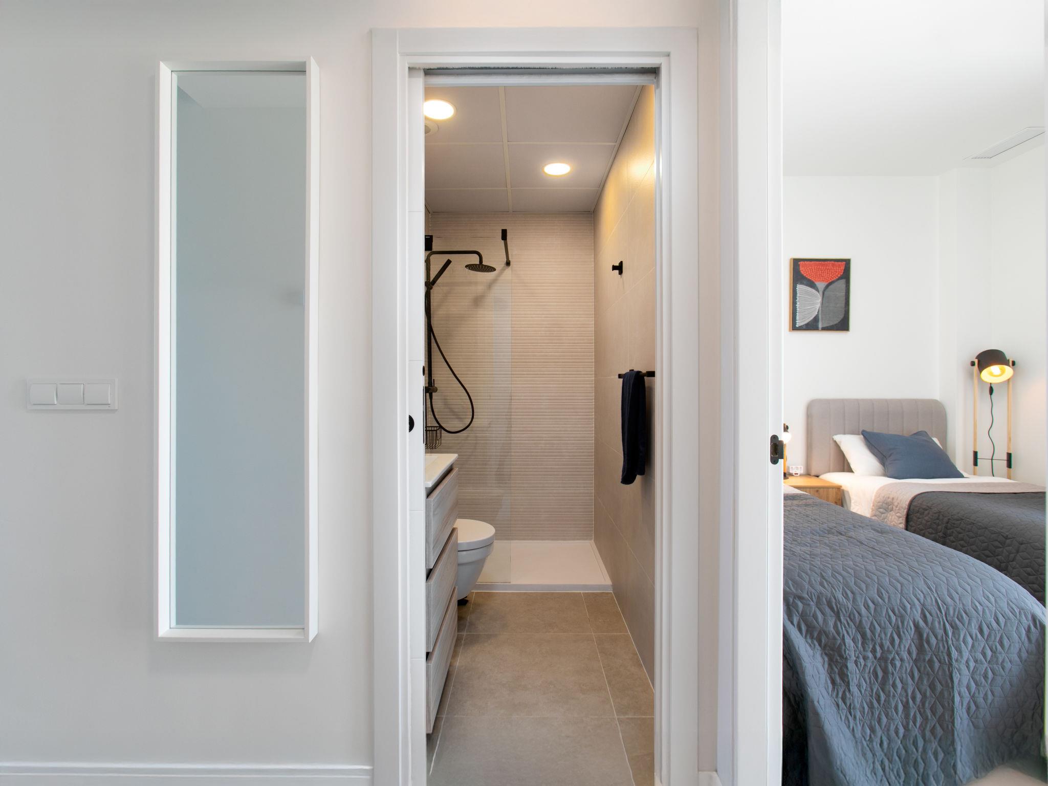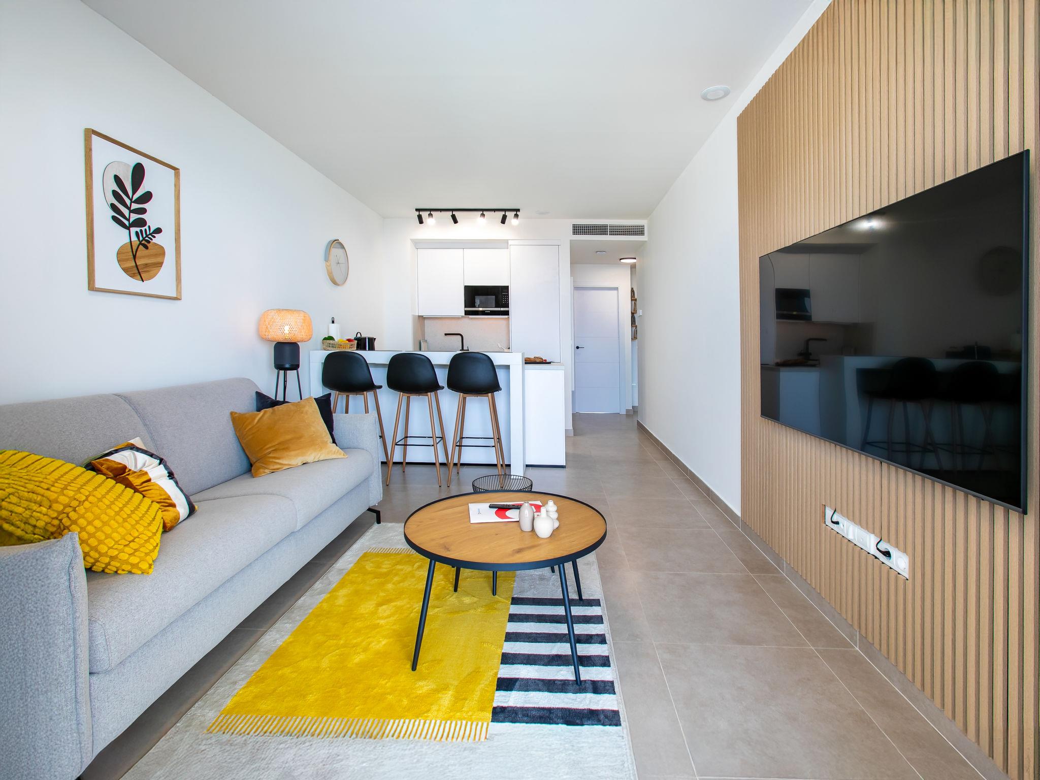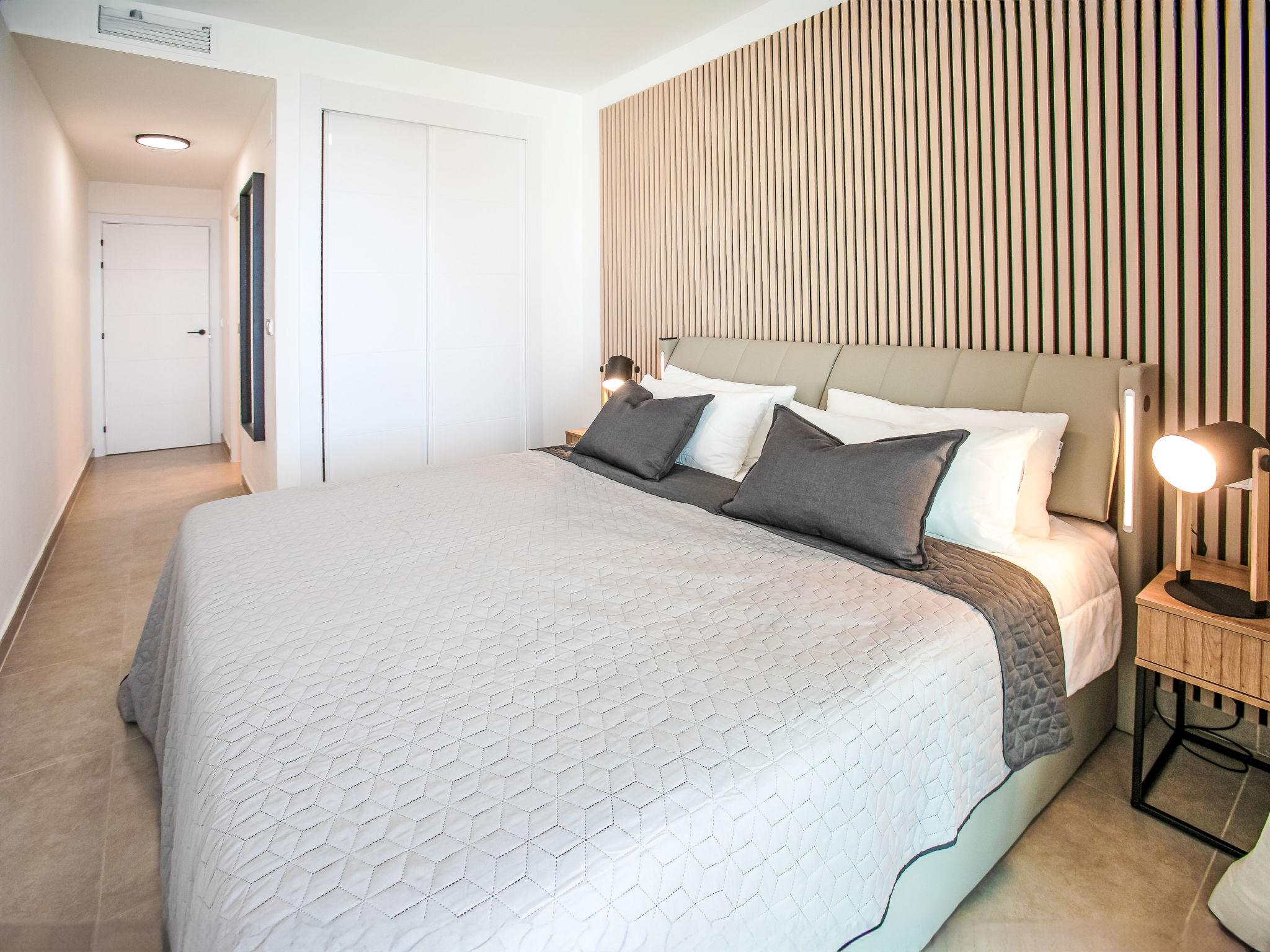 "Bayview Collection Free Spa & Padel", 3-room apartment 75 m2. Comfortable and cosy furnishings: living/dining room with digital TV. Exit to the terrace, to the swimming pool. 1 room with 1 french bed (180 cm, length 200 cm), shower/WC, air conditioning and forced-air heating. Exit to the terrace, to the swimming pool. 1 room with 2 beds (90 cm, length 200 cm), air conditioning and forced-air heating. Exit to the terrace, to the swimming pool. Open kitchen (oven, dishwasher, 4 ceramic glass hob hotplates, toaster, kettle, microwave, freezer, electric coffee machine). Shower/WC. Terrace. Terrace furniture, deck chairs. Marvellous view of the sea and the resort. Facilities: safe, iron, children's high chair, baby cot, hair dryer. Internet (WiFi, free). Parking space n 10 (roofed). Private pool can be heated. There is an extra charge for that if required. VUT7MA/94220 // Reg. Nr.: ESFCTU0000290130011203130000000000000000VUT/MA/942208