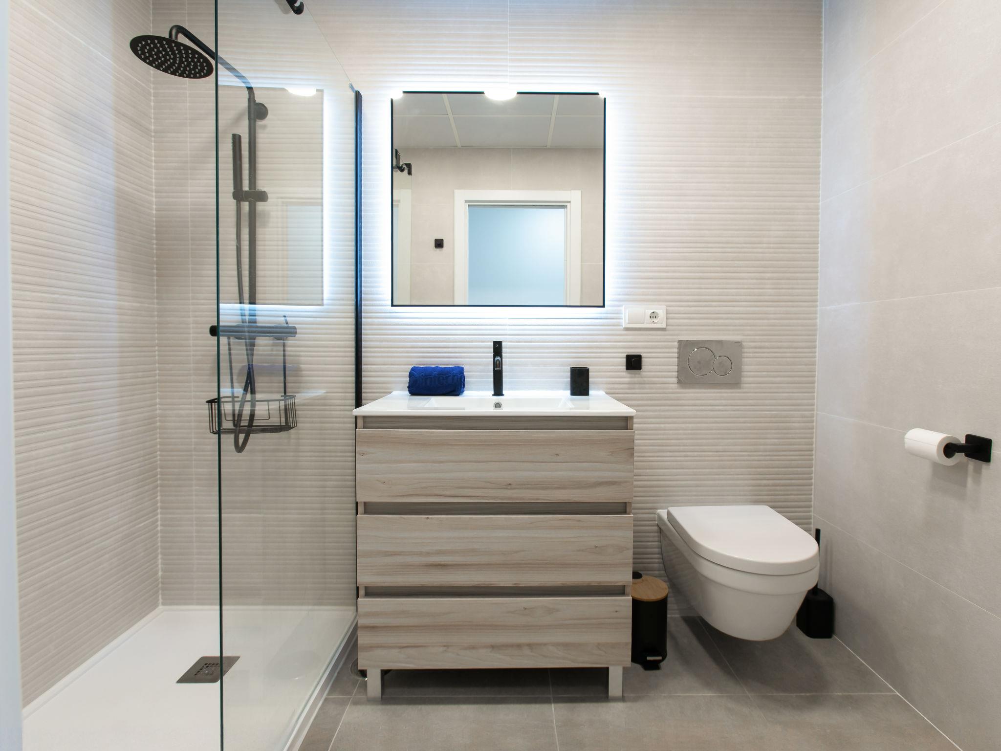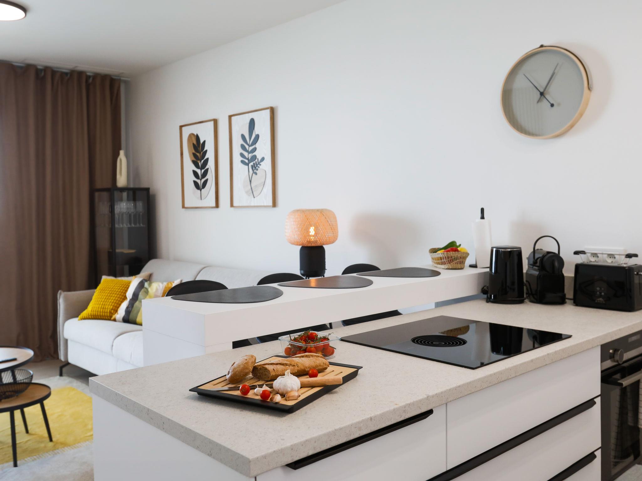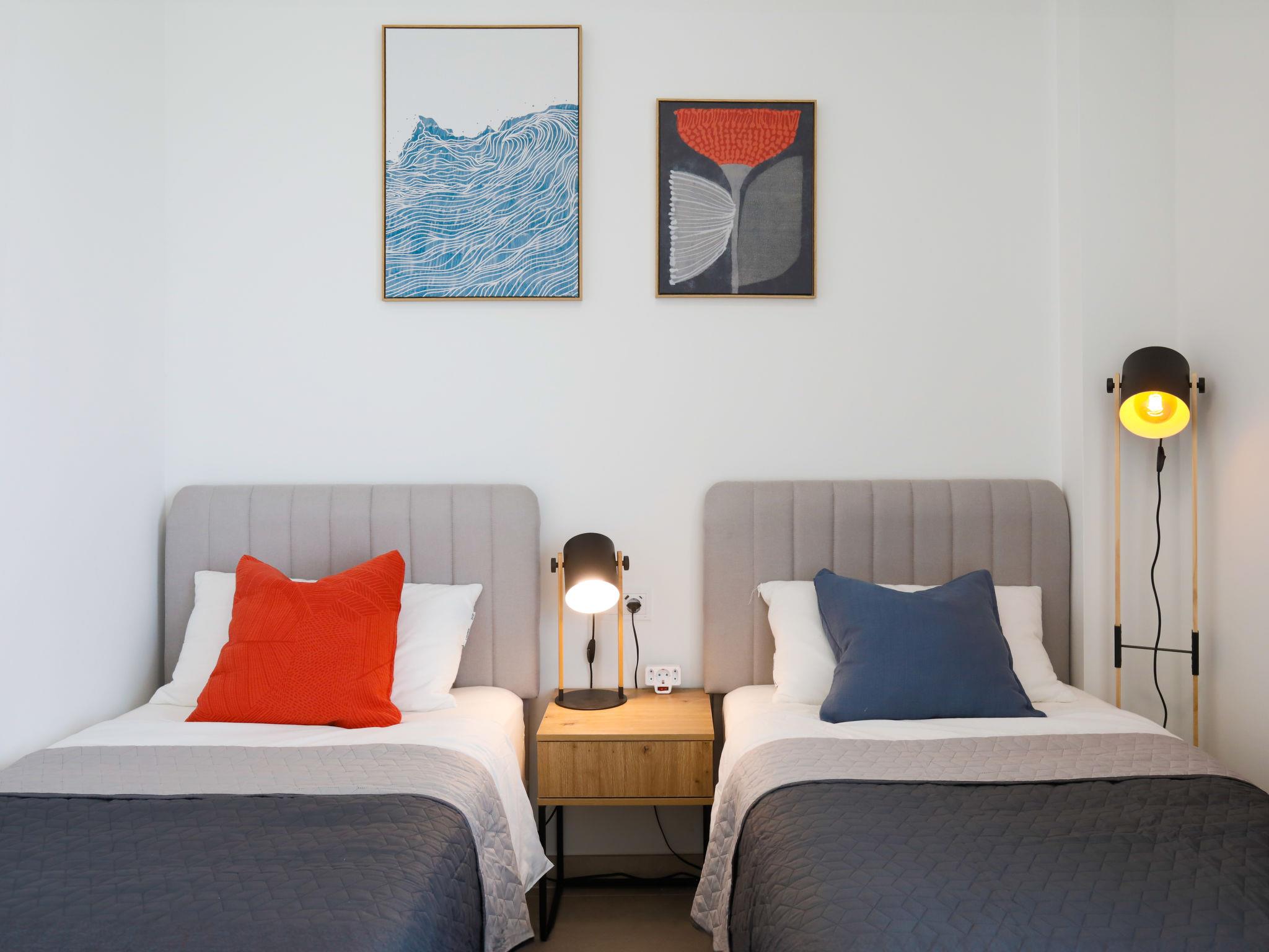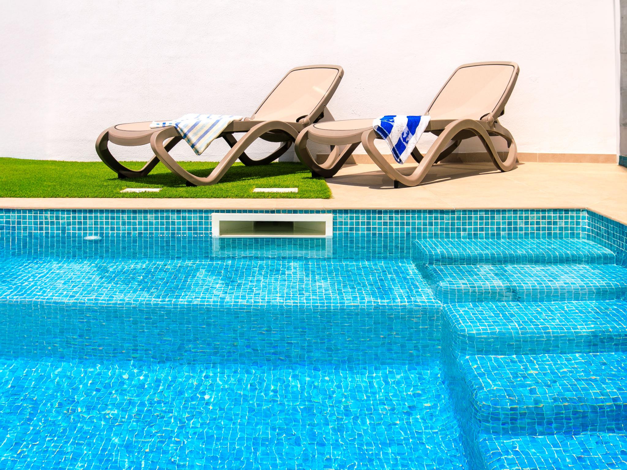 "Bayview Collection Free Spa & Padel", 3-room apartment 75 m2. Comfortable and cosy furnishings: living/dining room with digital TV. Exit to the terrace, to the swimming pool. 1 room with 1 french bed (180 cm, length 200 cm), shower/WC, air conditioning and forced-air heating. Exit to the terrace, to the swimming pool. 1 room with 2 beds (90 cm, length 200 cm), air conditioning and forced-air heating. Exit to the terrace, to the swimming pool. Open kitchen (oven, dishwasher, 4 ceramic glass hob hotplates, toaster, kettle, microwave, freezer, electric coffee machine). Shower/WC. Terrace. Terrace furniture, deck chairs. Marvellous view of the sea and the resort. Facilities: safe, iron, children's high chair, baby cot, hair dryer. Internet (WiFi, free). Parking space n 10 (roofed). Private pool can be heated. There is an extra charge for that if required. VUT7MA/94220 // Reg. Nr.: ESFCTU0000290130011203130000000000000000VUT/MA/942208