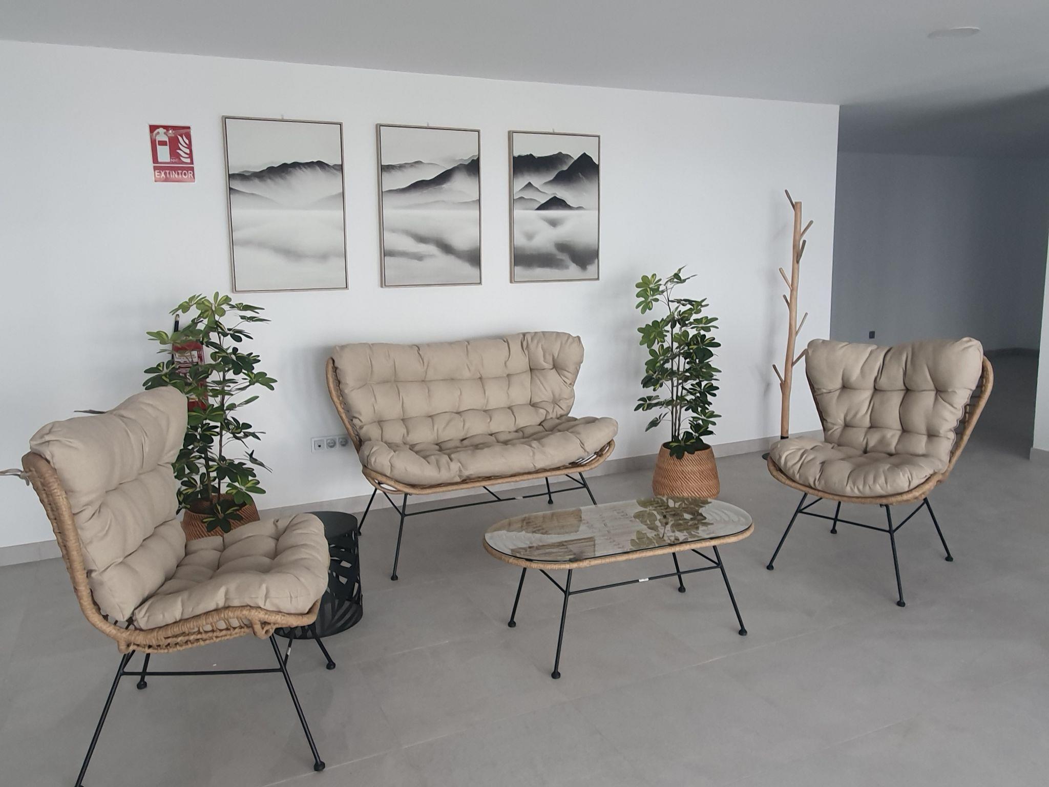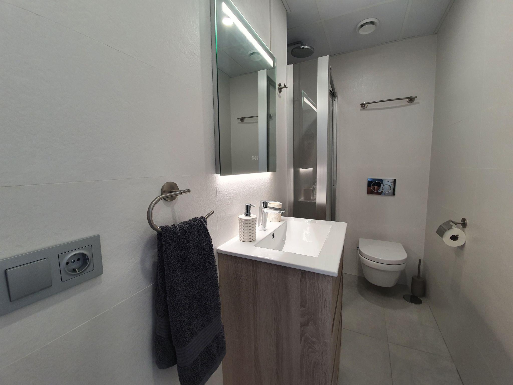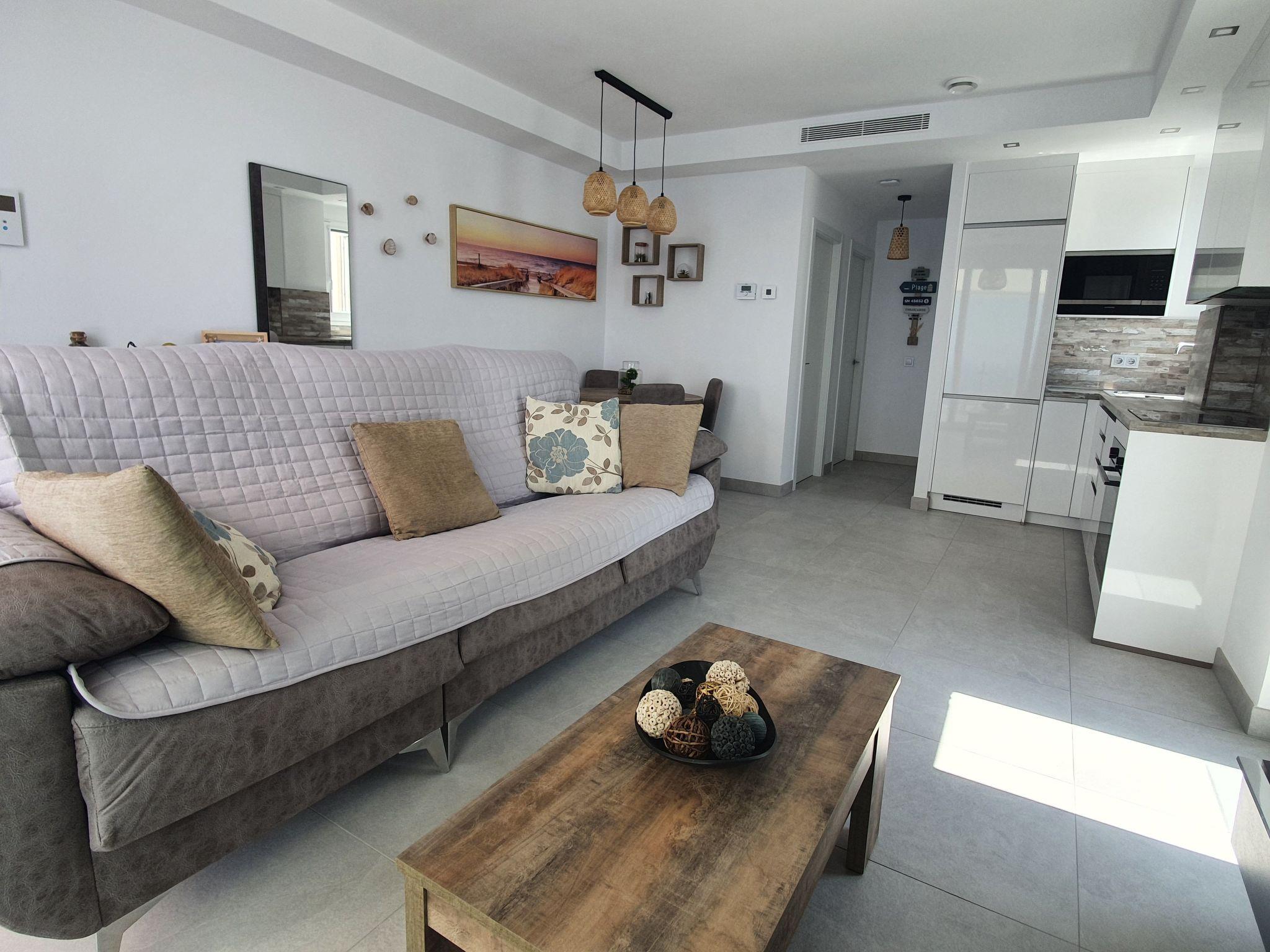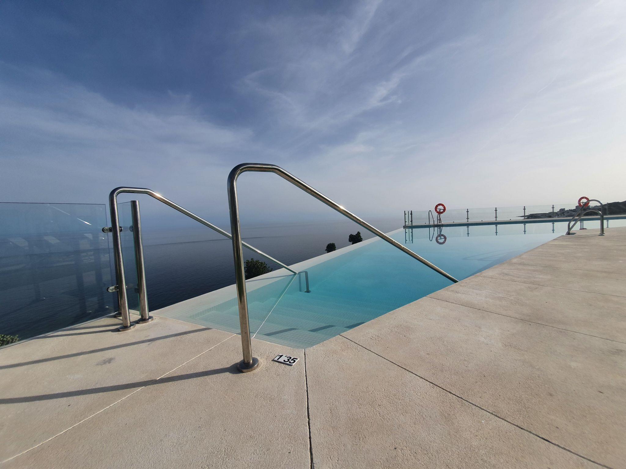 The private terrace area is spacious and has a dining area with table and chairs, as well as an outdoor chill out area comprising of aluminium and textured sofas and chairs. Two folding armchairs are provided. You will never tire of the views, which consist of the communal pool and gardens, the Mediterranean Sea in its entirety and, if you are lucky, you will see dolphins frolicking at certain times of the day.With regard to the complex, there is a large outdoor 'infinity' pool and an indoor pool. The latter is heated and is accompanied by a Jacuzzi and sauna. On the floor directly above the indoor pool is a fully equipped gymnasium with weights and machines. In addition, there is a large communal lounge area with access to the outdoor pool where you can sit and relax or play billiards. The outdoor communal areas are spacious and you will find an outdoor exercise area, table tennis, picnic area with barbecues and beautiful gardens with outstanding views. There is no shortage of things to do if you wish to venture outside the flat.