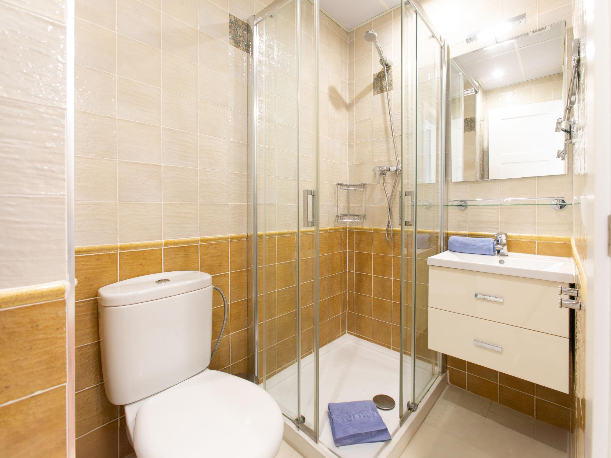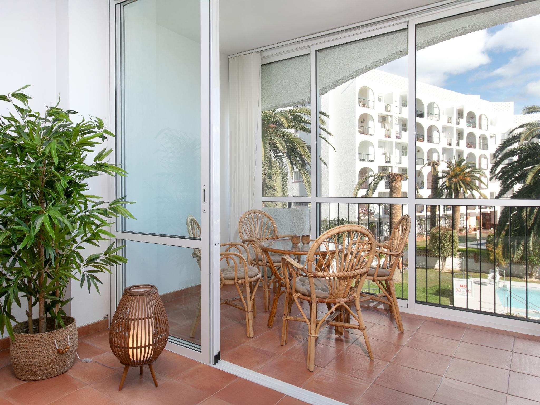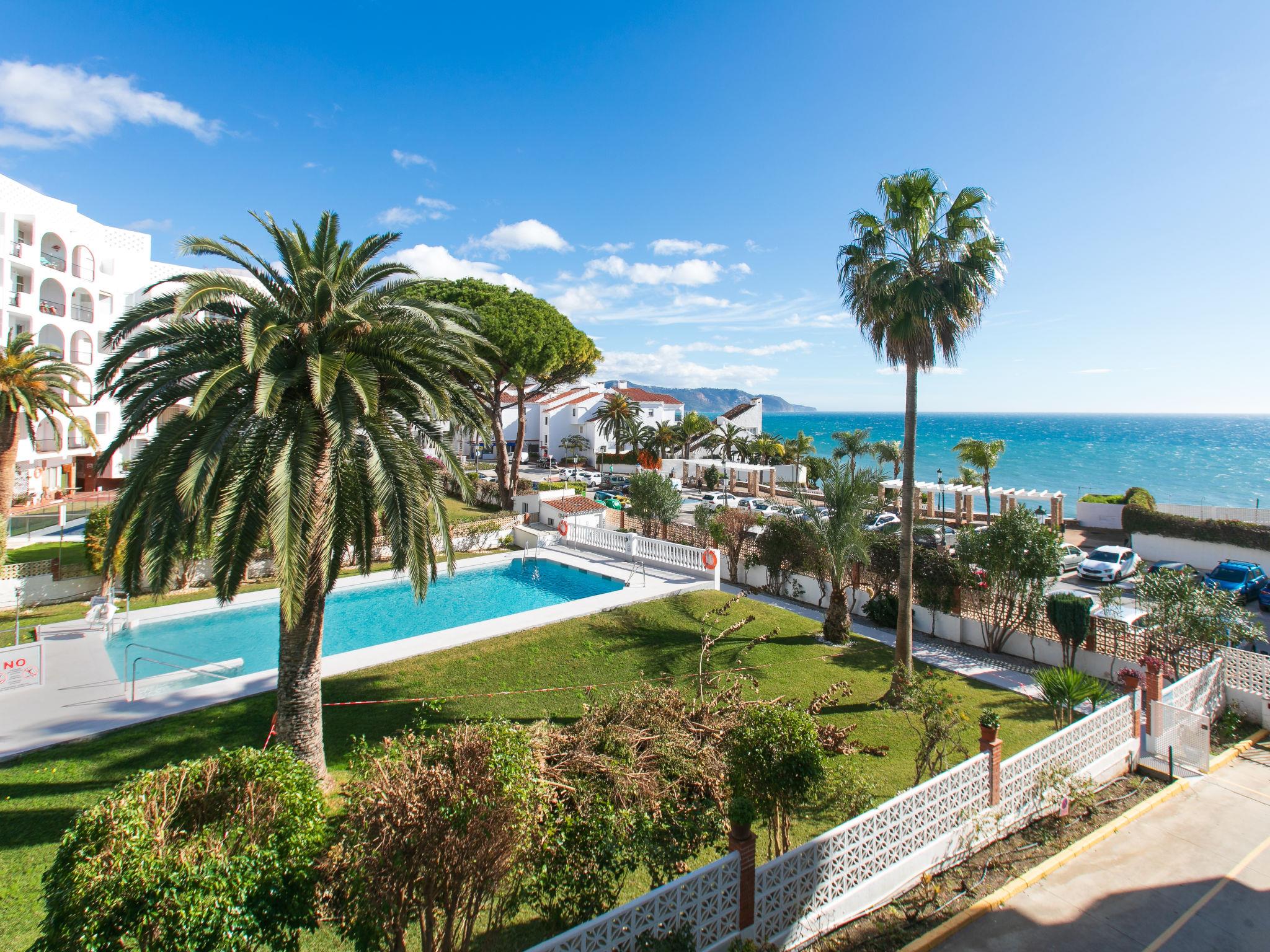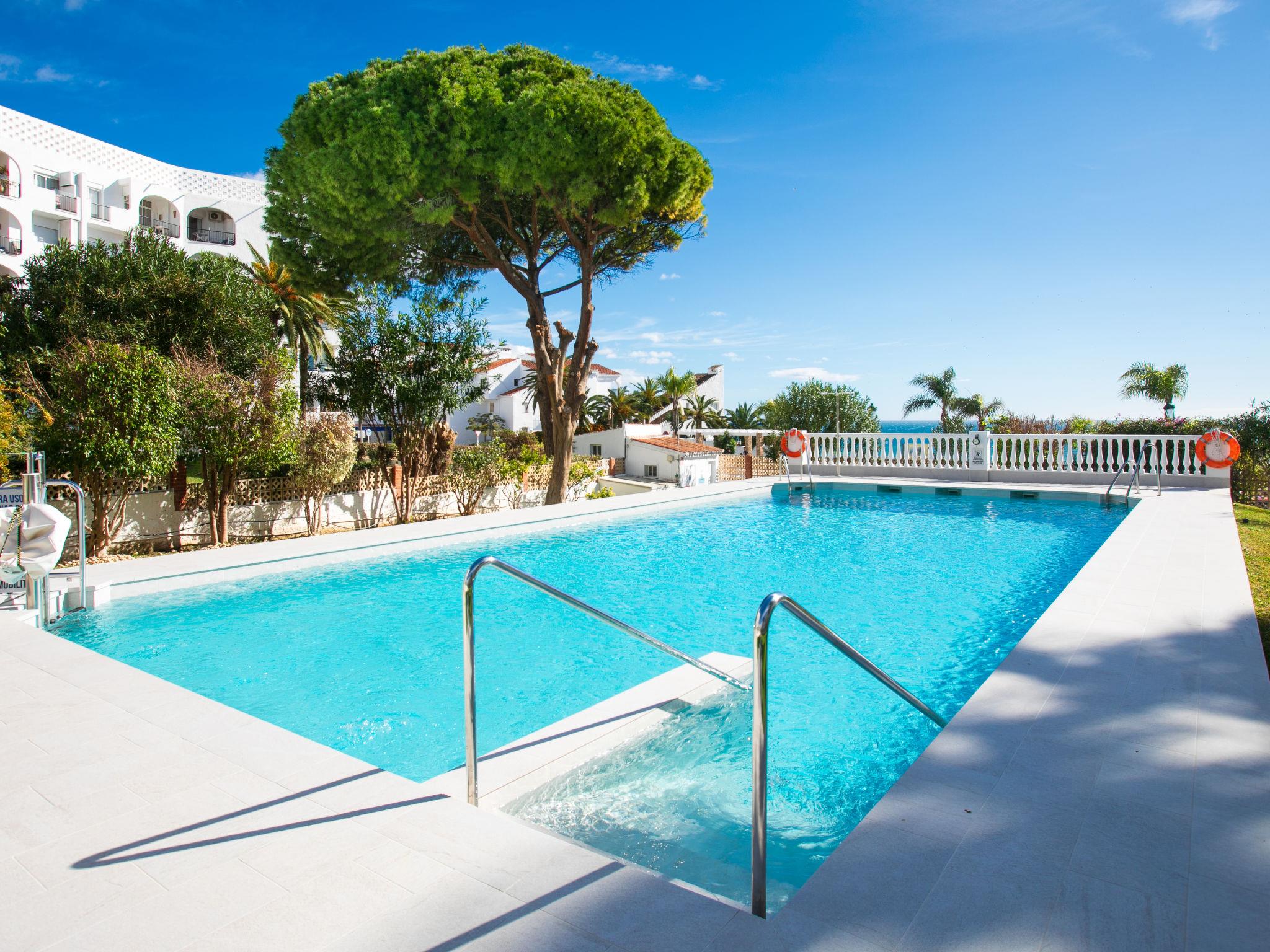 Nerja: Apartment block "Carabeo". In the centre of Nerja, 50 m from the sea, 50 m from the beach, road to cross. For shared use: lawn for sunbathing, swimming pool angular (10 x 5 m, depth 135 - 180 cm, seasonal availability: 15.Apr. - 30.Oct.). Shower/WC in the pool area. In the house: lift. Parking (limited number of spaces) on the premises. Shop, grocery 50 m, supermarket 1 km, shopping centre 20 km, restaurant, bar, bakery, café 50 m, pedestrian zone 100 m, bicycle rental 1 km, bus stop 200 m, railway station "Malaga", sandy beach "Burriana" 50 m, diving center 300 m. Sports harbour 18 km, marina 18 km, golf course (28 hole) 22 km, surf school 18 km. Nearby attractions: Cueva de Nerja, Tres Culturas Frigiliana, Auqavelis, Museo de Nerja, Museo del Vino en Cómpeta, Castillo de Almuñecar. Well-known ski regions can easily be reached: Sierra Nevada. Hiking paths: Sierra Tejeda, Sierra Almijara, Sierra Alpujarras. The owner does not accept any youth groups. Please note: Loading and unloading of baggage is possible at the holiday house.