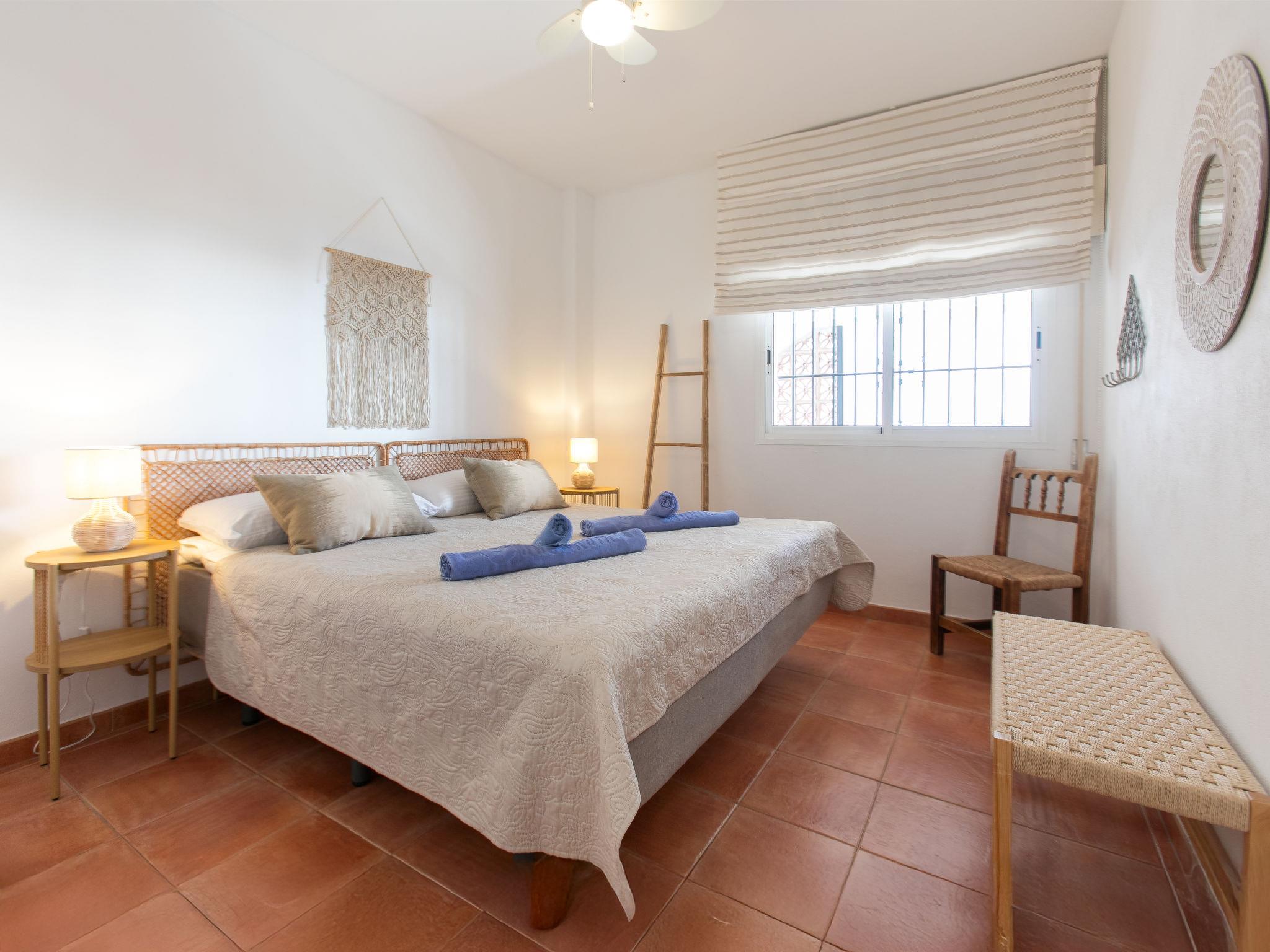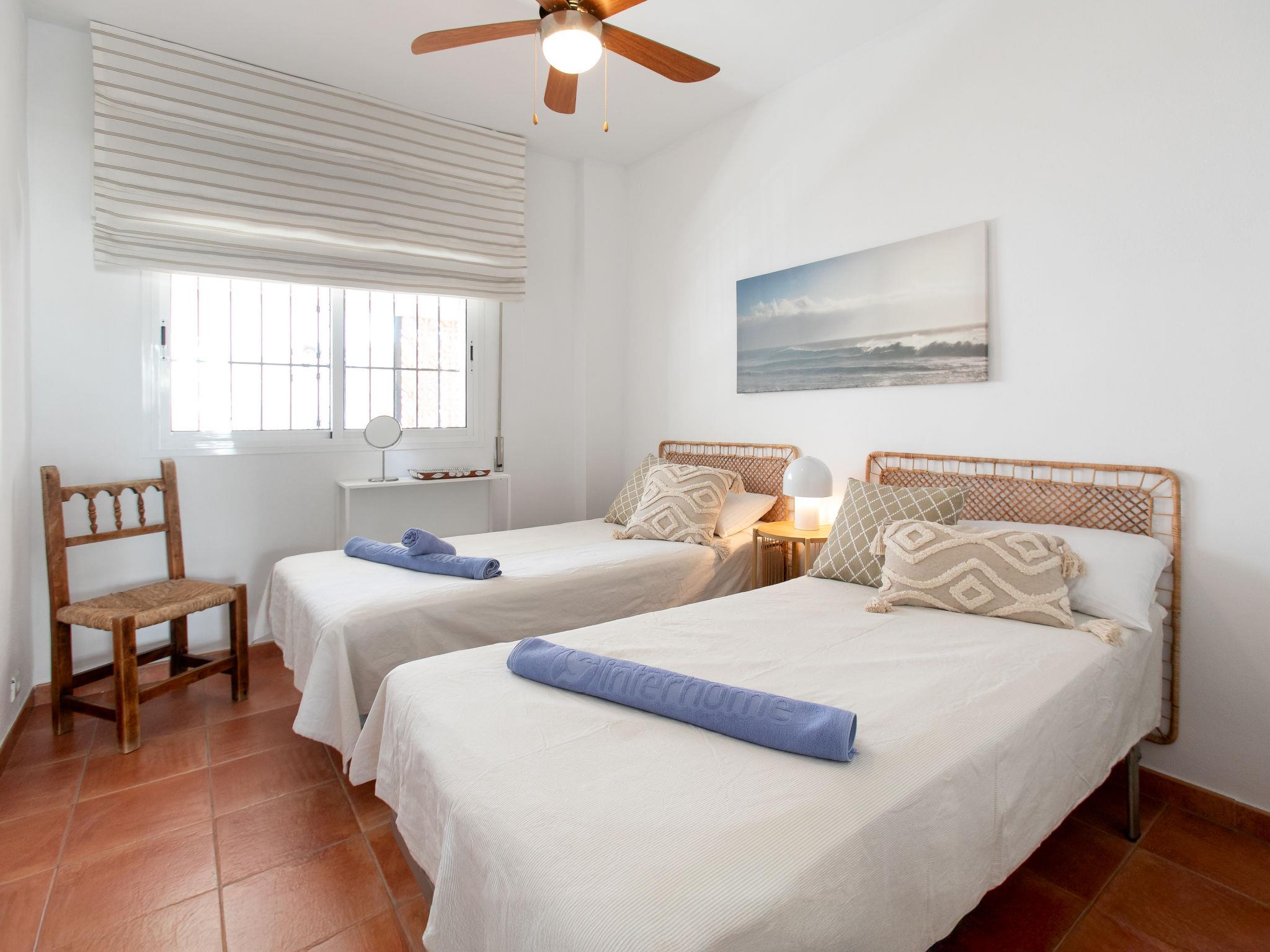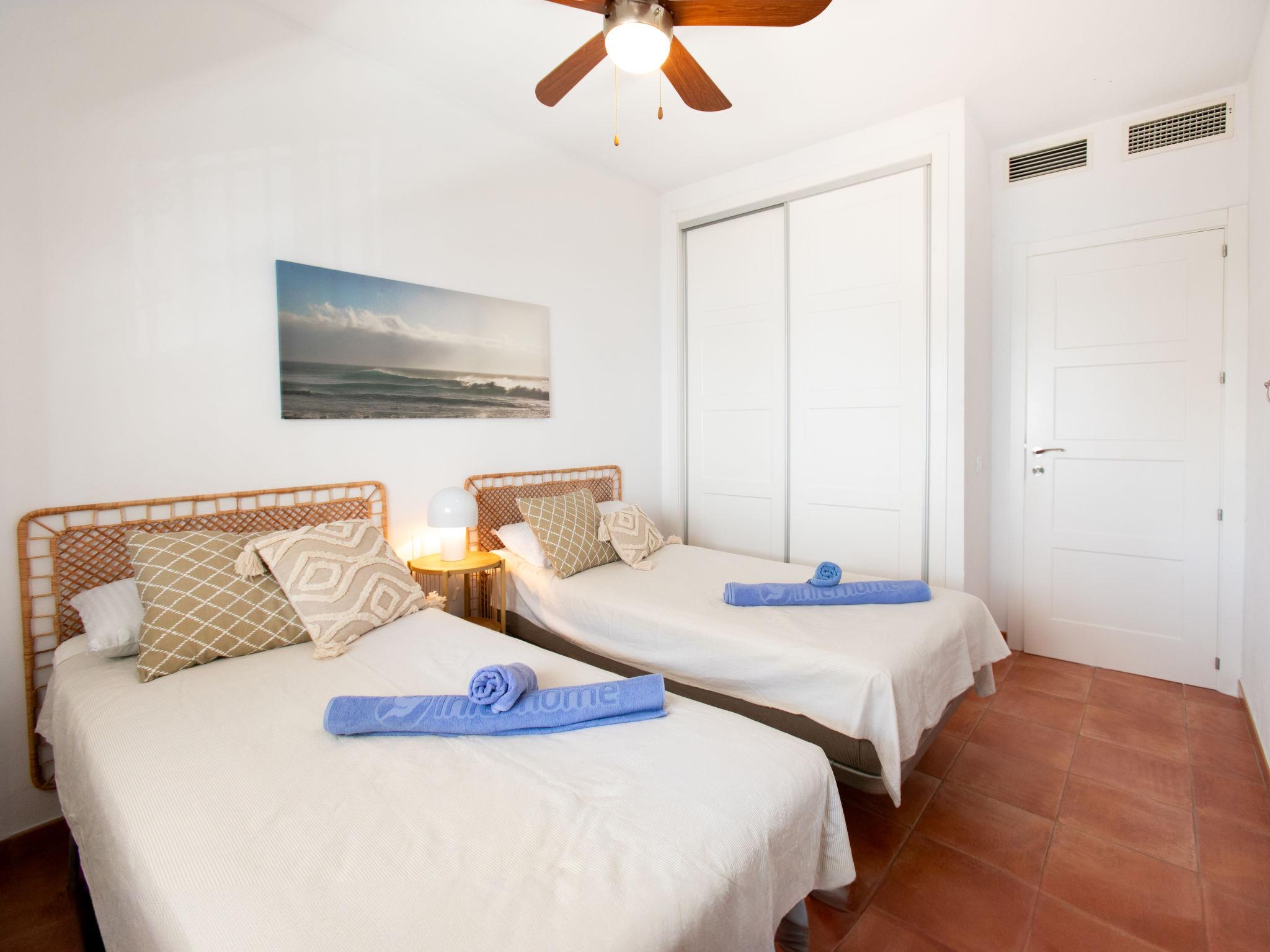 "Carabeo", 3-room apartment 78 m2. Practical and comfortable furnishings: living room with digital TV, international TV channels and air conditioning. Exit to the terrace. 1 room with 2 beds (90 cm, length 190 cm), air conditioning and forced-air heating. 1 room with 2 beds (90 cm, length 190 cm), air conditioning and forced-air heating. Open kitchen (oven, dishwasher, 4 ceramic glass hob hotplates, toaster, kettle, microwave, electric coffee machine) with dining nook. Exit to the terrace. Bath/WC, shower/WC. No heating option. Large terrace. Very beautiful view of the sea, the mountains, the swimming pool and the garden. Facilities: washing machine, iron, children's high chair, baby cot for up to 3 year olds, hair dryer. Internet (WiFi, free). Please note: non-smoking house. Private parking available: Street Hernando de Carabeo. VUT/MA/10928 // Reg. Nr.: ESFCTU0000290130001236120000000000000000VUT/MA/109285