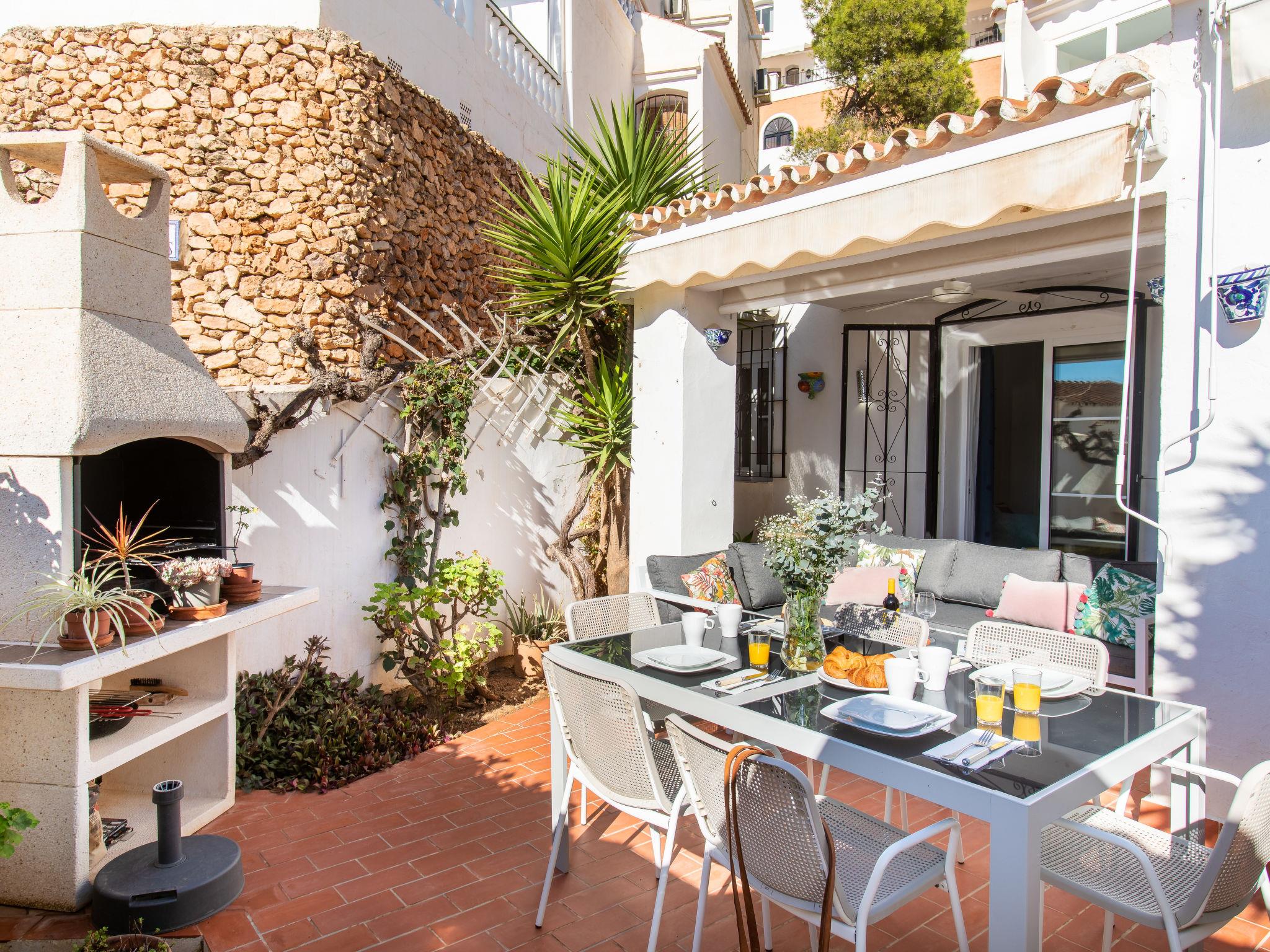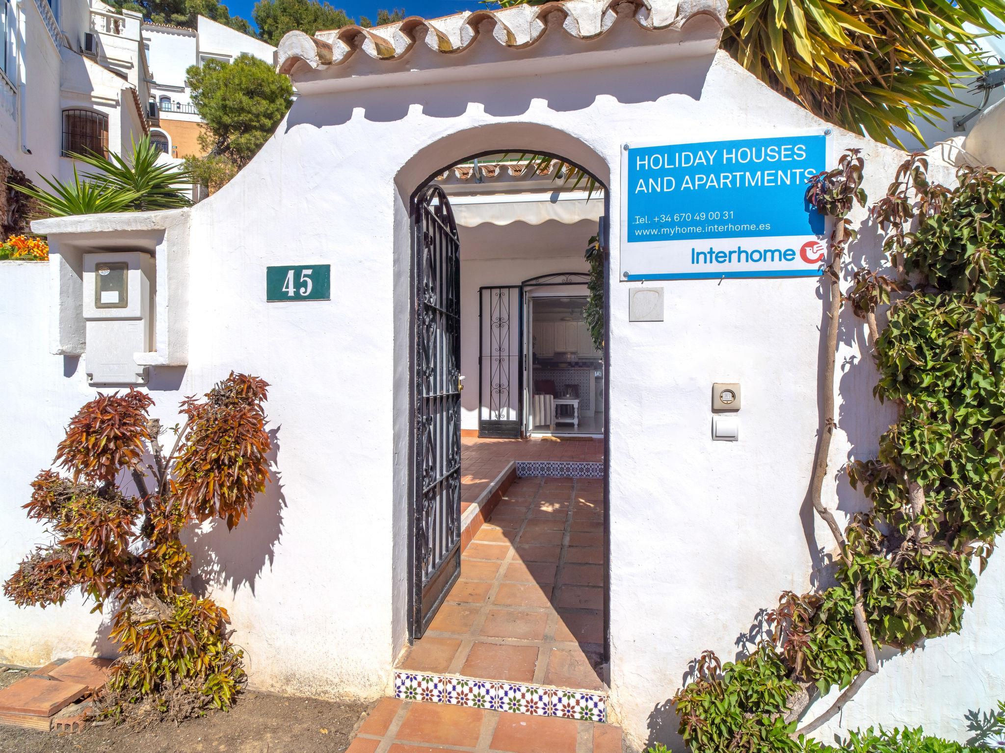 Nerja: Cosy, comfortable apartment block "Capuchinos San Juan de Capistrano". In the resort 2 km from the centre of Nerja, in a quiet, sunny position residential area (villas), 2 km from the sea, 2 km from the beach, south facing position. For shared use: garden, swimming pool fenced (15 x 8 m, depth 100 - 200 cm, seasonal availability: 01.Apr. - 01.Nov.). Shower/WC in the pool area. Private: courtyard. Shop, grocery, supermarket 1 km, shopping centre 24 km, restaurant, bakery 200 m, café 200 m, pedestrian zone 2 km, pub garden 1 km, bus stop 50 m, railway station "Malaga" 50 km, sandy beach "Burriana" 2 km, diving center 2 km. Sports harbour 20 km, marina 20 km, golf course (18 hole) 24 km, surf school 17 km, tennis 1 km. Nearby attractions: Frigiliana, Almuñecar, Malaga, Granada, Maro, Competa. Well-known ski regions can easily be reached: Sierra Nevada. Hiking paths: Sierra Tejeda, Sierra Almijara. Please note: car recommended. The owner does not accept any youth groups. Loading and unloading of baggage is possible at the holiday house. Apartment at street level with no steps and very close to the pool, local shop and bus stop. Ideal for families with young children or guests with walking difficulties.