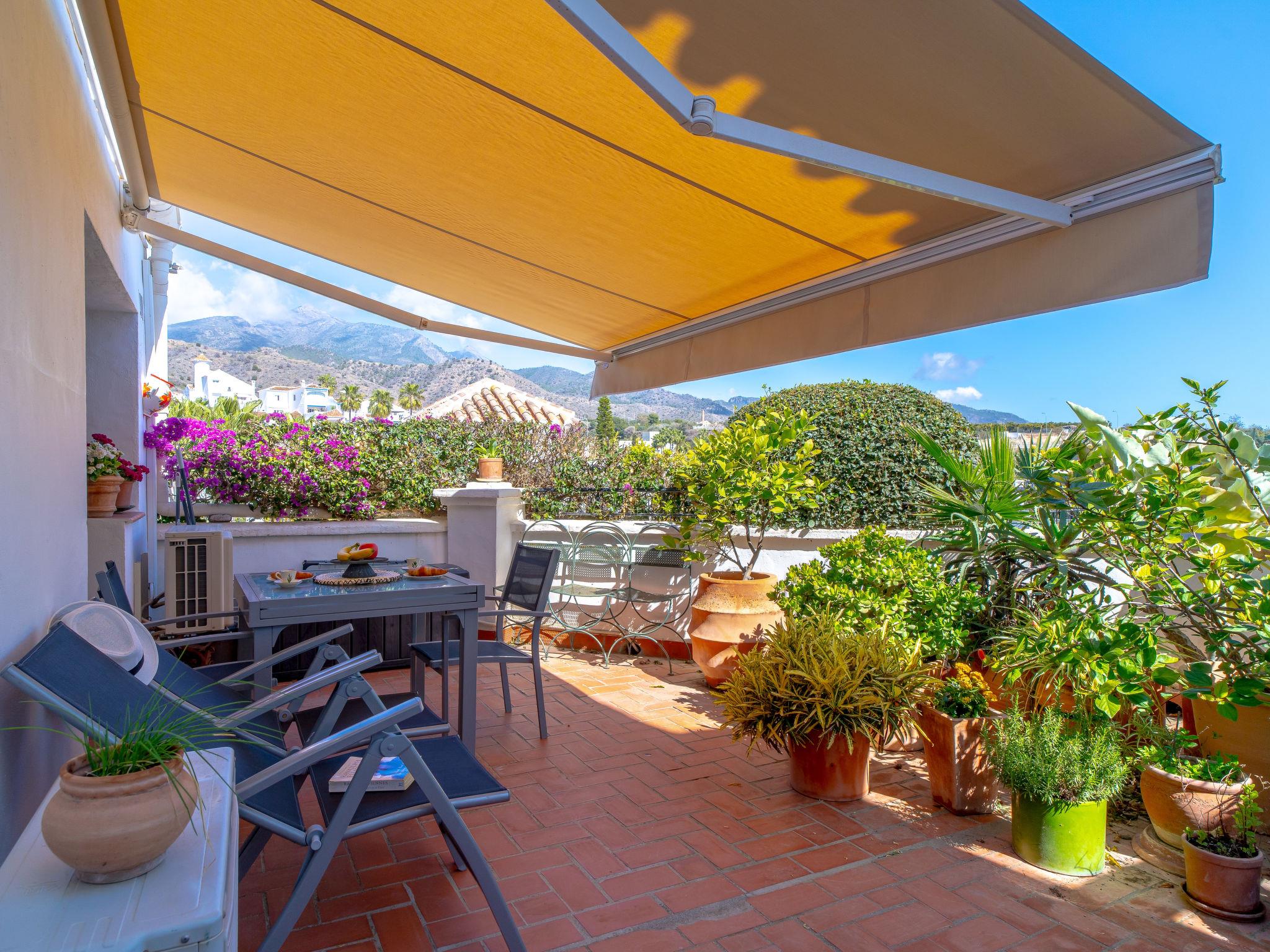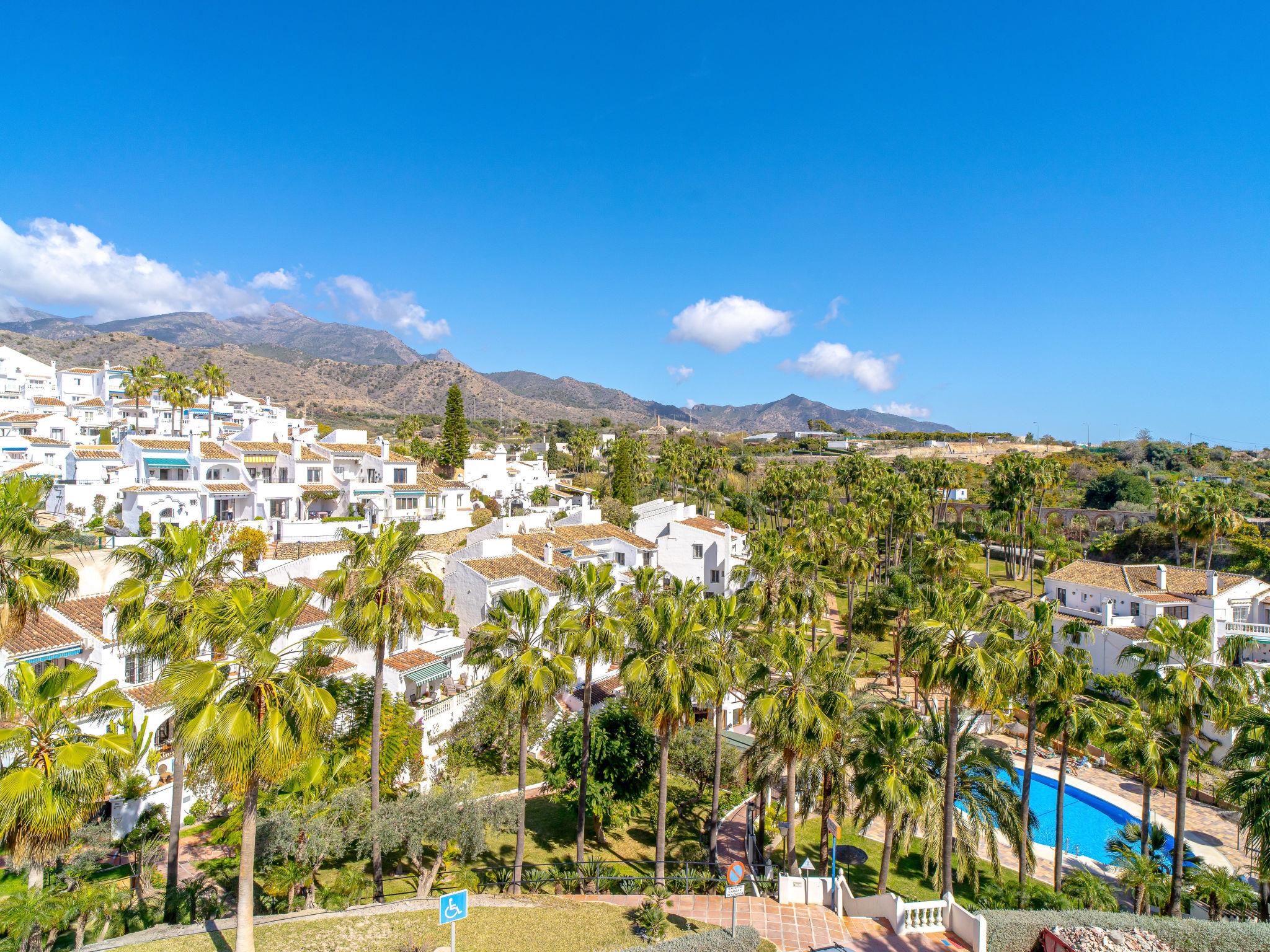 Nerja: Modern, cosy, comfortable apartment block "Tanger", renovated in 2022. El Oasis de Capistrano, in the resort, 3 km from the centre, in a secluded, quiet position, traffic calmed area, 650 m from the sea, 3 km from the beach. For shared use: with lawn and flowers, 2 swimming pools (seasonal availability: 01.Jan. - 31.Dec. pool opening hours: 10:00-20:00). WC in the pool area, shower/WC in the pool area, children's pool, patio, bathing place. Private: with wildlife garden and flowers, parking, public parking on the road. Grocery, supermarket 500 m, bar, café 100 m, bus stop 300 m. Golf course 24 km. Nearby attractions: Cuevas de Nerja 2 km, Acantilados de Maro 3 km, Frigiliana 5 km, Málaga centro 50 m, Granada centro 97 m. Well-known ski regions can easily be reached: Sierra Nevada 126 km. Hiking paths: Sierra Almijara 7 km, Sierra Tejeda 10 m. Please note: car recommended. Suitable for families, suitable for seniors.