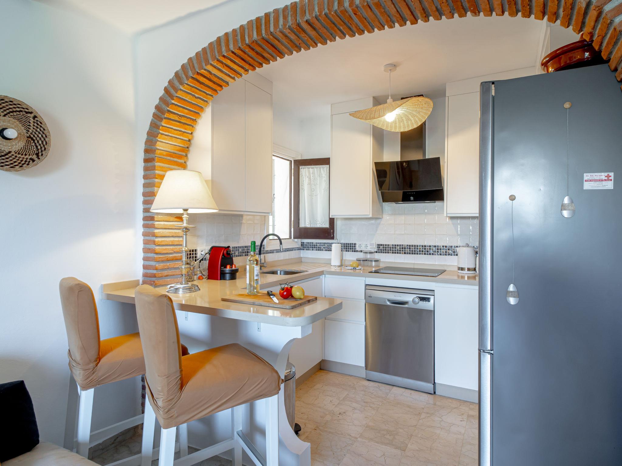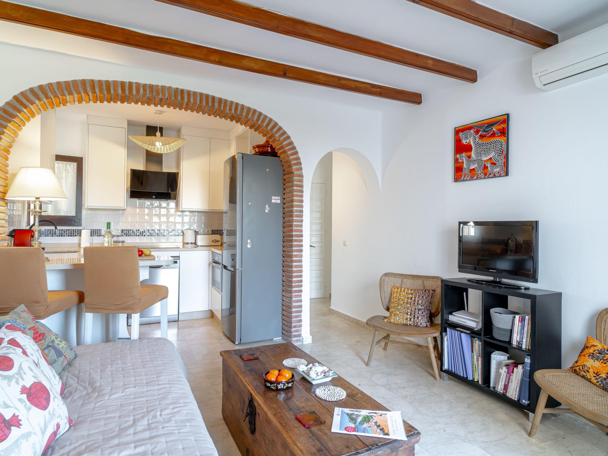 " Tanger", 3-room apartment 75 m2, on the ground floor, east facing position. Object suitable for 4 adults + 1 child. Fully renovated in 2022, practical and wooden furniture furnishings: open living room with Scandinavian wood stove, dining nook, bar, digital TV, international TV channels, air conditioning and forced-air heating. Exit to the terrace. 1 room with 1 double bed (150 cm, length 190 cm), air conditioning and forced-air heating. Exit to the terrace, to the veranda. 1 room with 2 beds (90 cm, length 190 cm), air conditioning and forced-air heating. Open interconnecting room. Exit to the terrace. Open kitchen (oven, dishwasher, 4 ceramic glass hob hotplates, toaster, kettle, microwave, freezer, electric coffee machine) with small bar. Shower/WC. Electric heating. Large terrace. Terrace furniture, barbecue. View of the mountains and the swimming pool. Facilities: washing machine, iron, children's high chair, baby cot for up to 2 year olds, hair dryer. Internet (WiFi, free). Please note: suitable for families. Non-smokers only. Smoke alarm, fire extinguisher. VUT/MA/37902 // Reg. Nr.: ESFCTU0000290130001833570000000000000000VUT/MA/379024