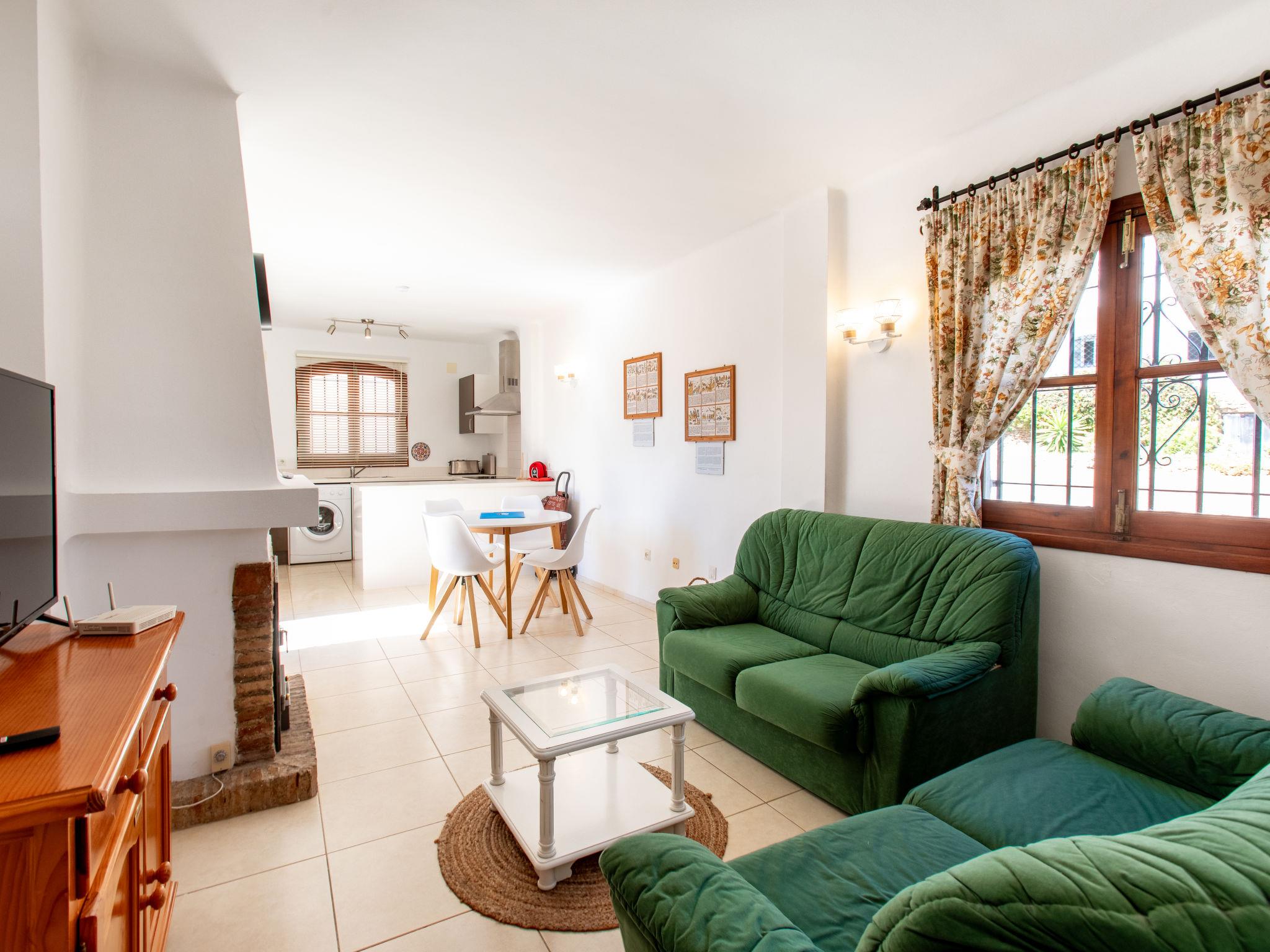 "Las Golondrinas", 3-room apartment 50 m2, south facing position. Simple and practical furnishings: living/dining room with digital TV, air conditioning and forced-air heating. Exit to the garden, to the patio. 1 room with 2 beds (90 cm, length 190 cm), air conditioning and forced-air heating. 1 room with 1 french bed (135 cm, length 190 cm), air conditioning and forced-air heating. Open kitchen (oven, 3 ceramic glass hob hotplates, kettle, microwave, freezer, electric coffee machine). Shower/WC. Patio. Terrace furniture, deck chairs (2). Facilities: washing machine, iron, children's high chair, baby cot for up to 2 year olds, hair dryer. Internet (WiFi, free). Please note: smoke alarm, fire extinguisher. A/MA/01239