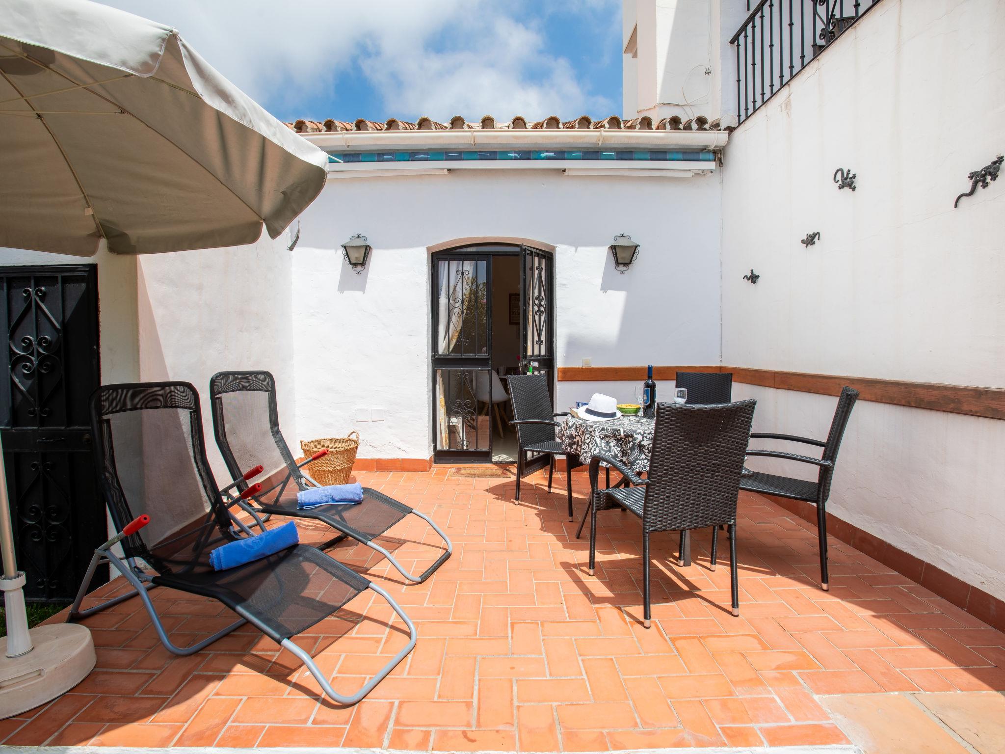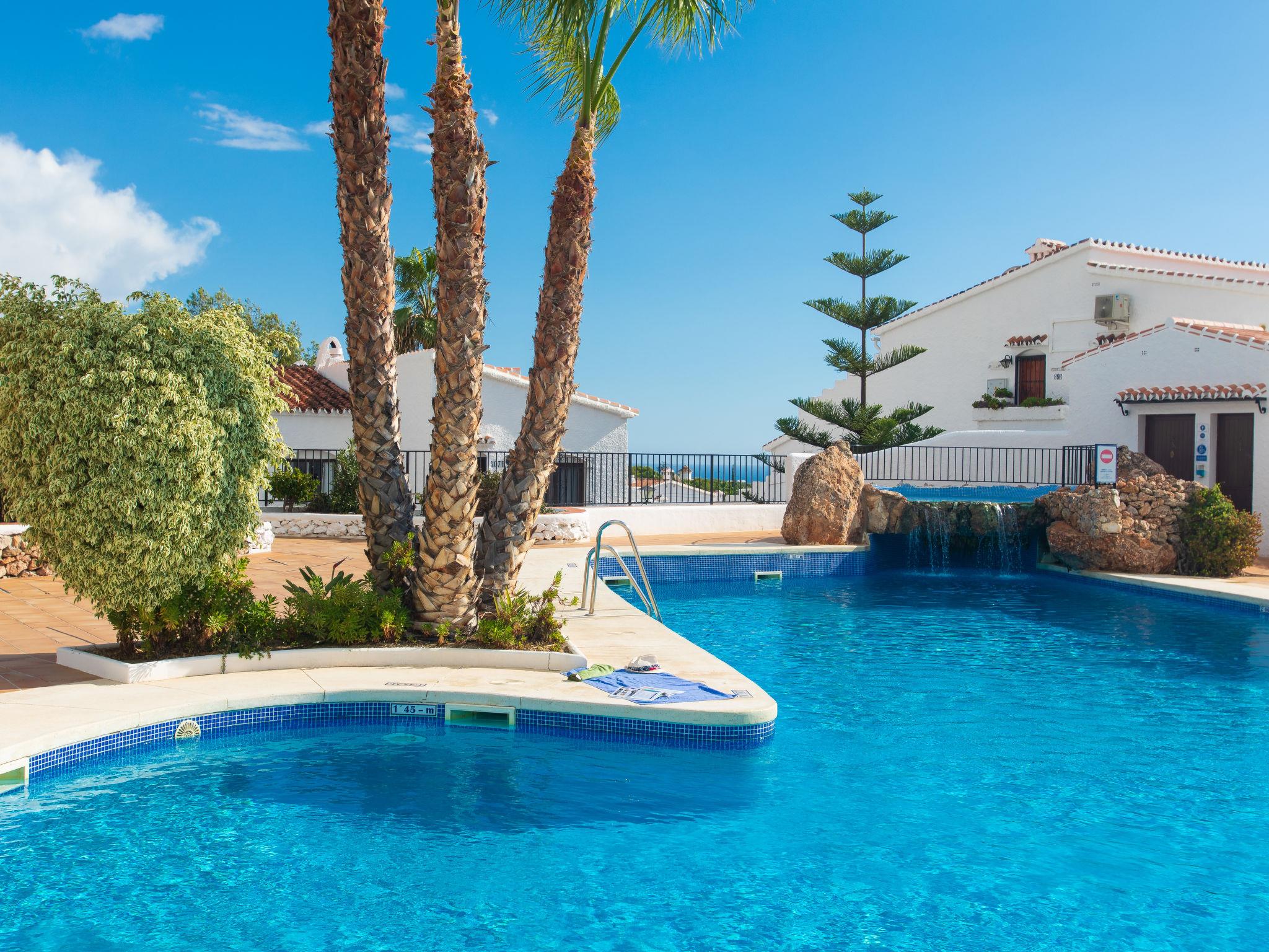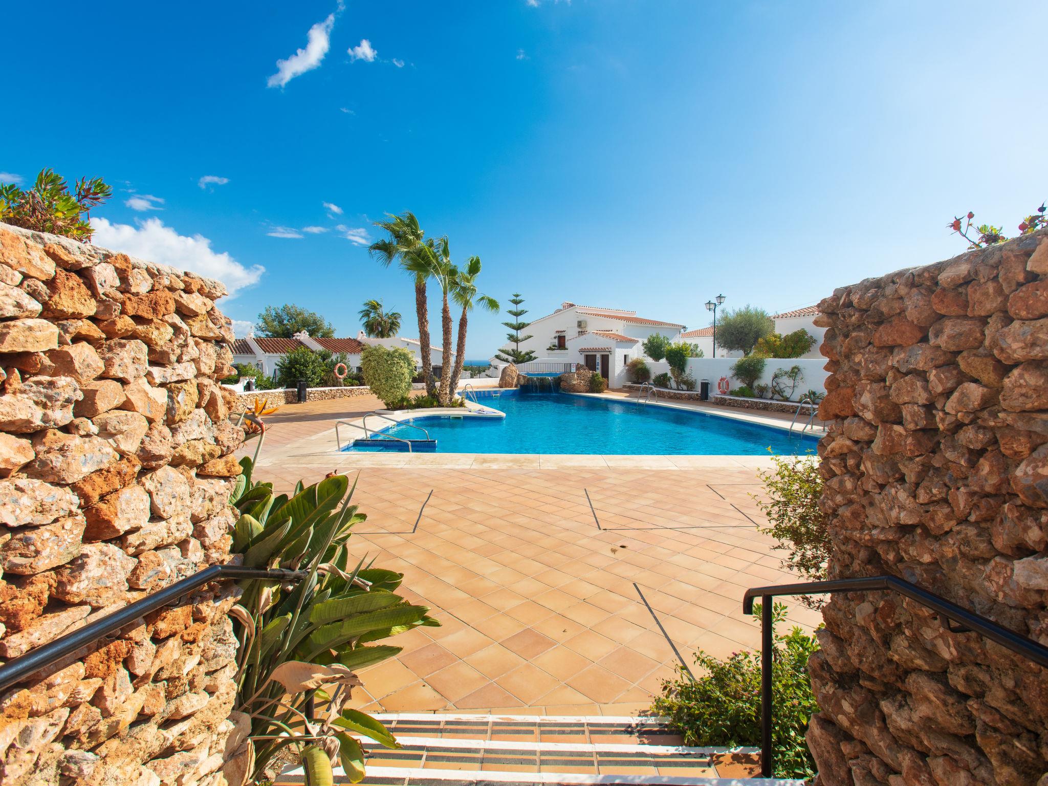 Capistrano: Beautiful, simple, comfortable apartment block "Las Golondrinas". In the resort 1.5 km from the centre of Nerja, 1.5 km from the sea, 1.5 km from the beach. For shared use: lawn for sunbathing, swimming pool (10 x 5 m, depth 100 - 175 cm, seasonal availability: 01.Jun. - 31.Sep.). Shower/WC in the pool area, children's pool. Shop, supermarket 500 m, shopping centre 23 km, restaurant, bakery 200 m, pub garden 1 km, bus stop "Capistrano Village" 50 m, railway station "Málaga" 50 km, ferry "Málaga" 50 km, sandy beach "Burriana" 1.5 km, diving center 1.5 km, outdoor swimming pool 400 m. Sports harbour 17 km, marina 17 km, golf course (18 hole) 23 km, surf school 40 km, sailing school 17 km. Nearby attractions: Frigiliana, Cómpeta, Almuñecar, Maro, Málaga, Granada. Well-known ski regions can easily be reached: Sierra Nevada. Hiking paths: Sierra Almijara, Sierra Tejeda, Las Alpujarras. Please note: no lift. Object suitable for 4 adults + 1 child.