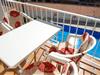 På 3. etage: (Stue(Fjernsyn, spisebord, sofahjørne), åbent køkken(elkedel, brødrister, kaffemaskine, ovn, mikrobølgeovn, opvaskemaskine , køle-fryseskab, elektriske kogeplader, ), soveværelse(dobbeltseng), soveværelse(dobbeltseng), badeværelse(bruser, føntørrer), badeværelse(bruser), Internetadgang) , vaskemaskine, balkon, klimaanlæg, swimmingpool(deles med andre gæster), strygejern
