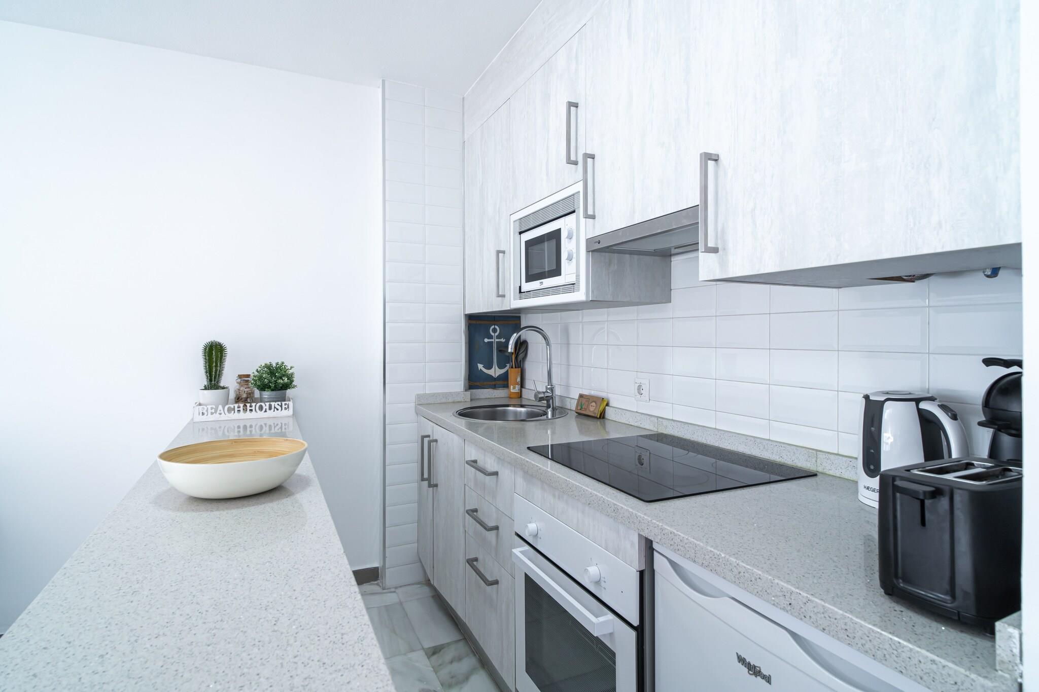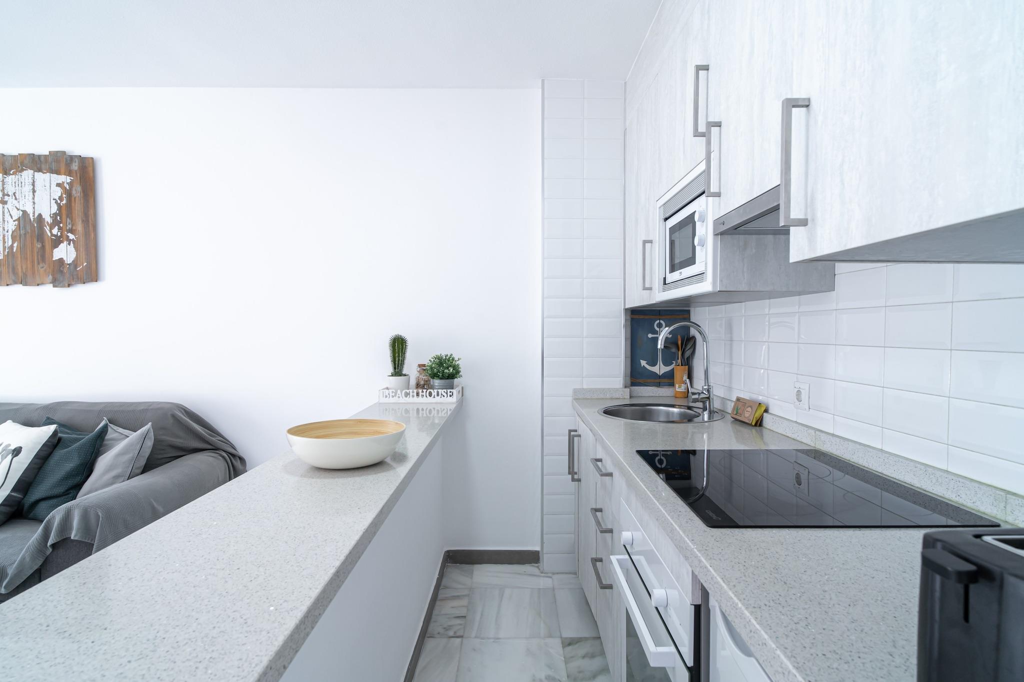 Dette charmerende feriehus er ideelt for par og har et komfortabelt soveværelse med dobbeltseng og plads til op til to gæster. Den lyse opholdsstue er udstyret med et Smart TV og højhastighedsinternet, ideelt til afslapning eller fjernarbejde. Selvom kæledyr ikke er tilladt, har gæsterne nem adgang til en fælles udendørs pool og en privat terrasse. Der er aircondition i hele lejligheden. Valgfrie tjenester såsom lufthavnstransport og velkomstpakker med mad og drikkevarer kan arrangeres for at forbedre din ankomstoplevelse. Selvom der ikke er angivet gratis aktiviteter på stedet, tilbyder selve beliggenheden øjeblikkelig adgang til fritidsaktiviteter ved stranden. Denne lejlighed ligger kun 50 meter fra den fredfyldte El Playazo-strand og har en førsteklasses beliggenhed i et fredeligt kystområde. Gæsterne finder traditionelle strandbarer inden for gåafstand, der tilbyder autentisk lokal mad. Nerjas centrum ligger kun 1,5 km væk og kan nås via en naturskøn strandpromenade. Et nærliggende busstoppested, kun 50 meter fra ejendommen, tilbyder bekvem bytransport, og parkering på stedet er tilgængelig selv i højsæsonen. Málaga Lufthavn er det nærmeste store rejseknudepunkt med internationale og indenlandske forbindelser. Lejligheden har et fuldt udstyret åbent køkken med keramisk kogeplade, ovn, mikrobølgeovn, køleskab og fryser samt nødvendigt køkkengrej og service. Vaskemaskine, strygejern og tøjstativ giver praktisk bekvemmelighed ved længere ophold. Badeværelset har et moderne brusebad og hårtørrer. Gæsterne får også vinglas, flaskevand og små detaljer som elkedel og kaffemaskine for ekstra komfort.