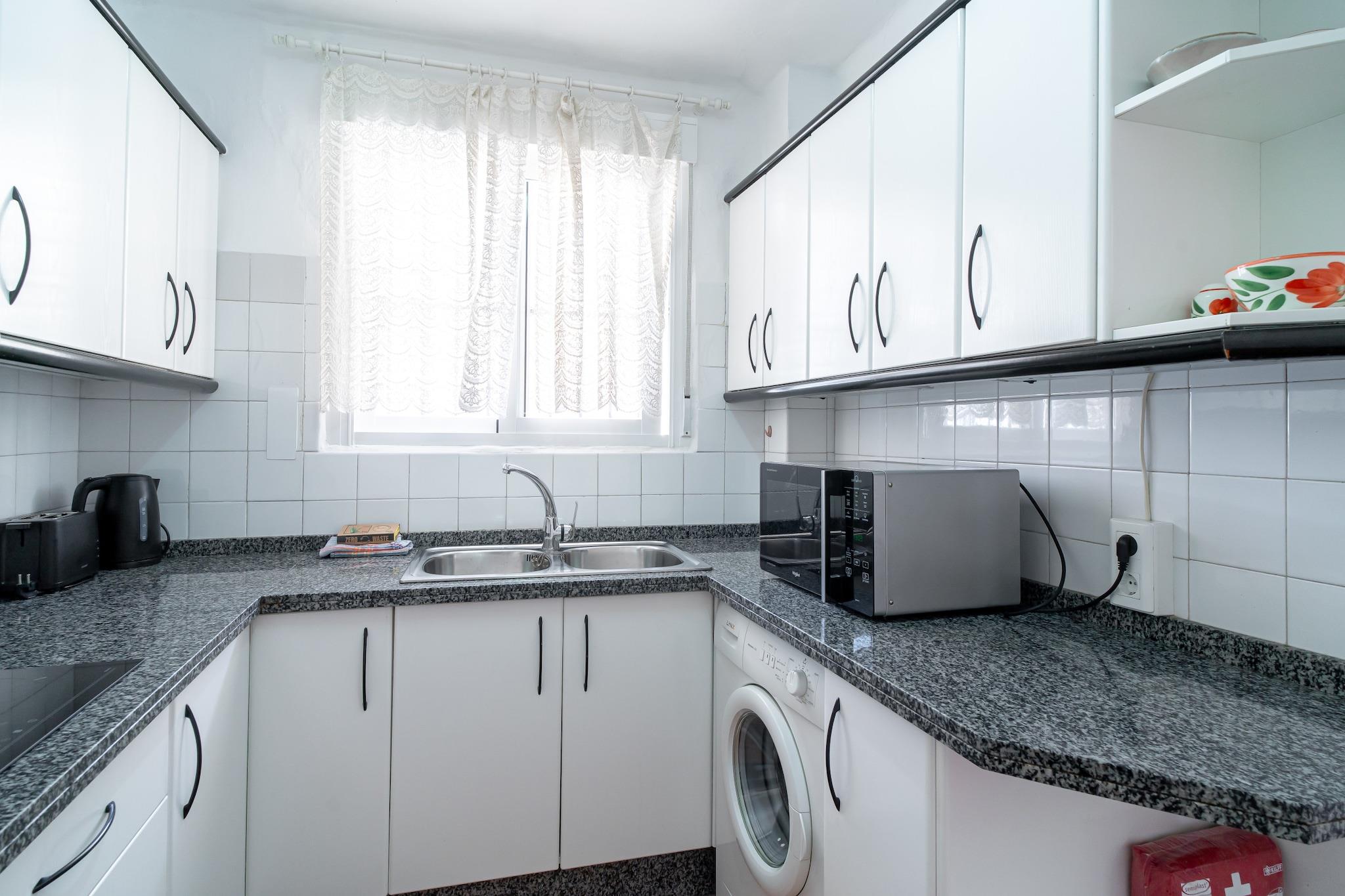 Dette lyse og komfortable feriehus har to soveværelser – et med en dobbeltseng og et andet med to enkeltsenge – og er egnet til op til fire gæster. Det er ikke kæledyrsvenligt, og rygning er ikke tilladt. Gæsterne har adgang til både en fælles swimmingpool og en børnepool, og lejligheden har aircondition, Wi-Fi, elevator og en privat balkon med udsigt over poolen. Selvom der ikke er yderligere udlejningsmuligheder som sofaer eller aktivitetspakker, tilbyder ejendommen en bekvem og afslappende atmosfære for familier eller små grupper. Denne lejlighed ligger i et familievenligt kvarter i Nerja, kun 250 meter fra sandstranden Carabeillo og kun 500 meter fra Balcón de Europa i byens centrum. Daglige bekvemmeligheder er lige uden for døren, med et Coviran-supermarked og lokale spisesteder som Rincon de Encarni inden for 50 meter. Denne centrale beliggenhed sikrer, at gæsterne har gode forbindelser til butikker, restauranter og byens charmerende kystattraktioner. Det separate køkken er udstyret med en glaskeramisk kogeplade, ovn, køleskab, fryser, mikrobølgeovn og brødrister. Gæsterne har adgang til alt nødvendigt køkkenudstyr til nem selvforplejning. Badeværelset har hårtørrer, og håndklæder er inkluderet i prisen. Ekstraudstyr såsom barneseng, højstol og velkomstpakke kan tilføjes for mere komfort.