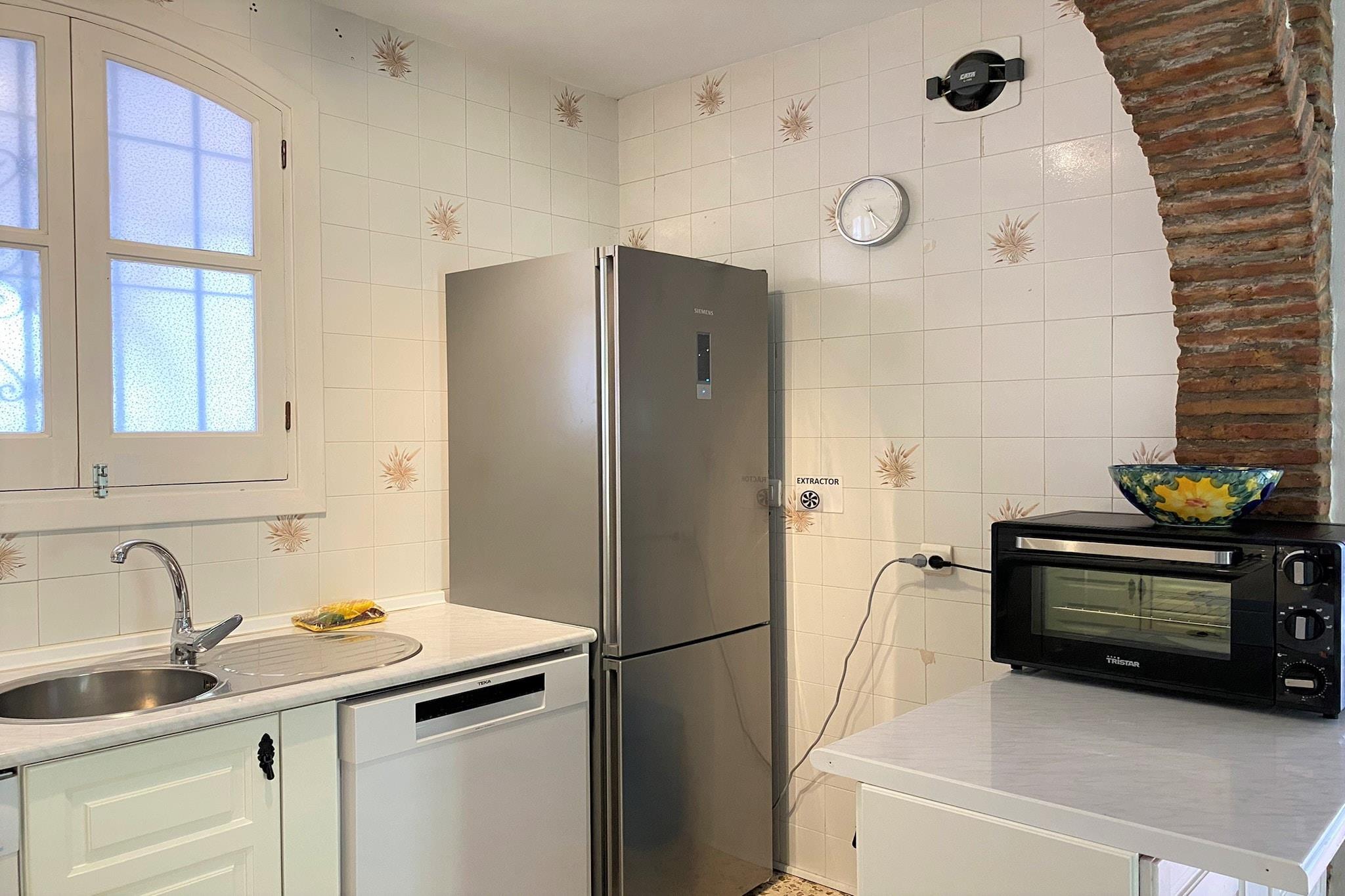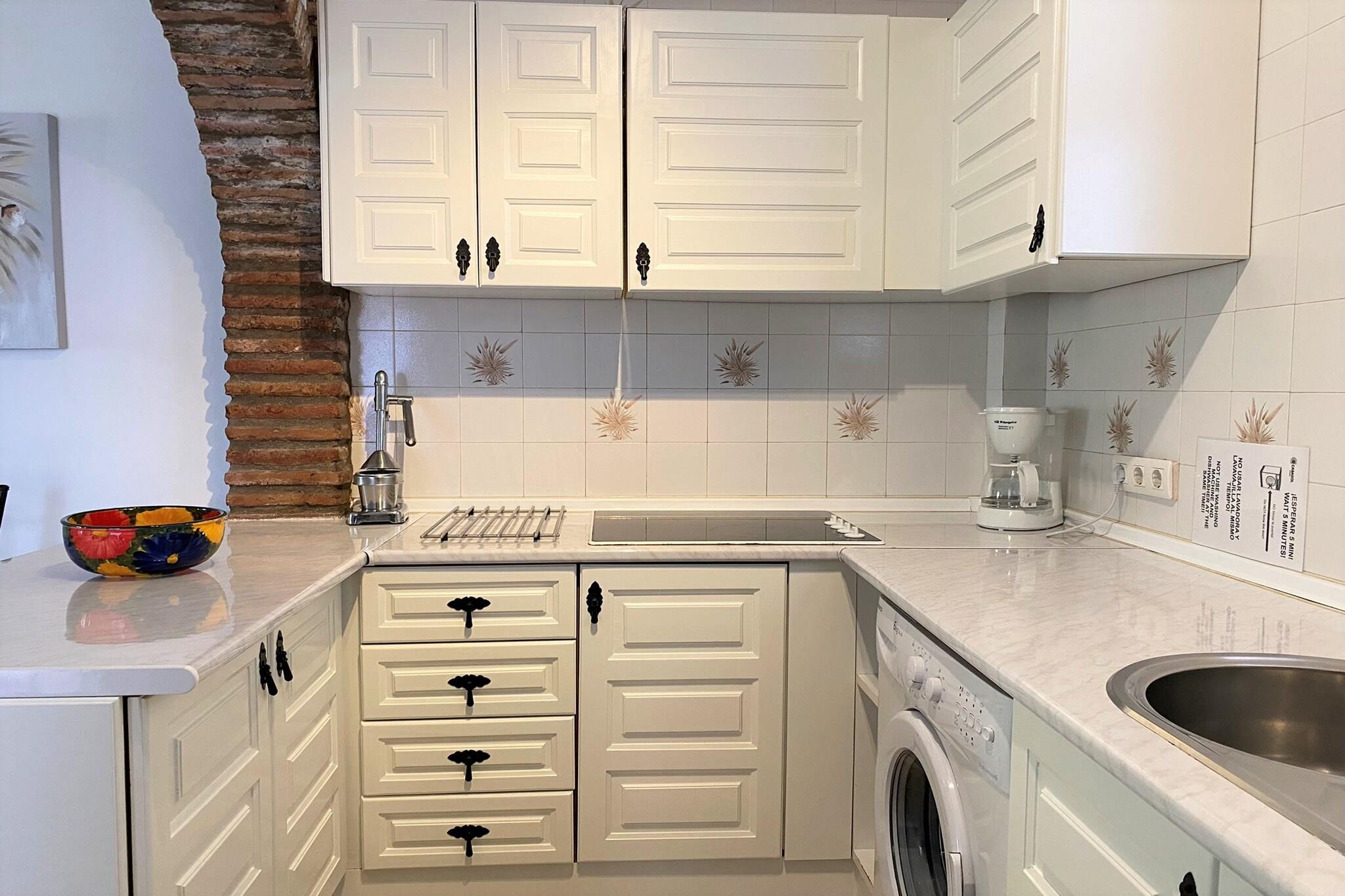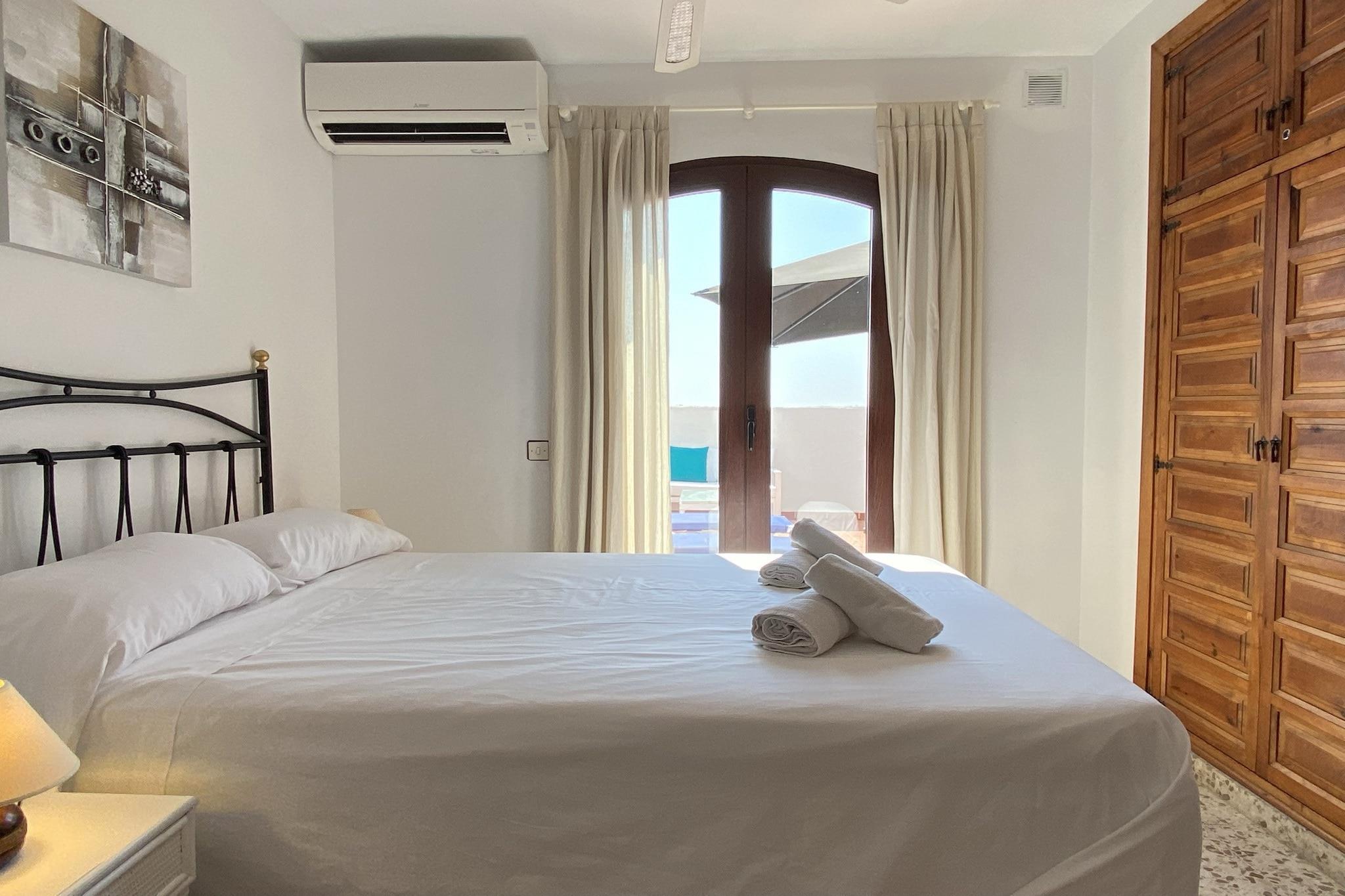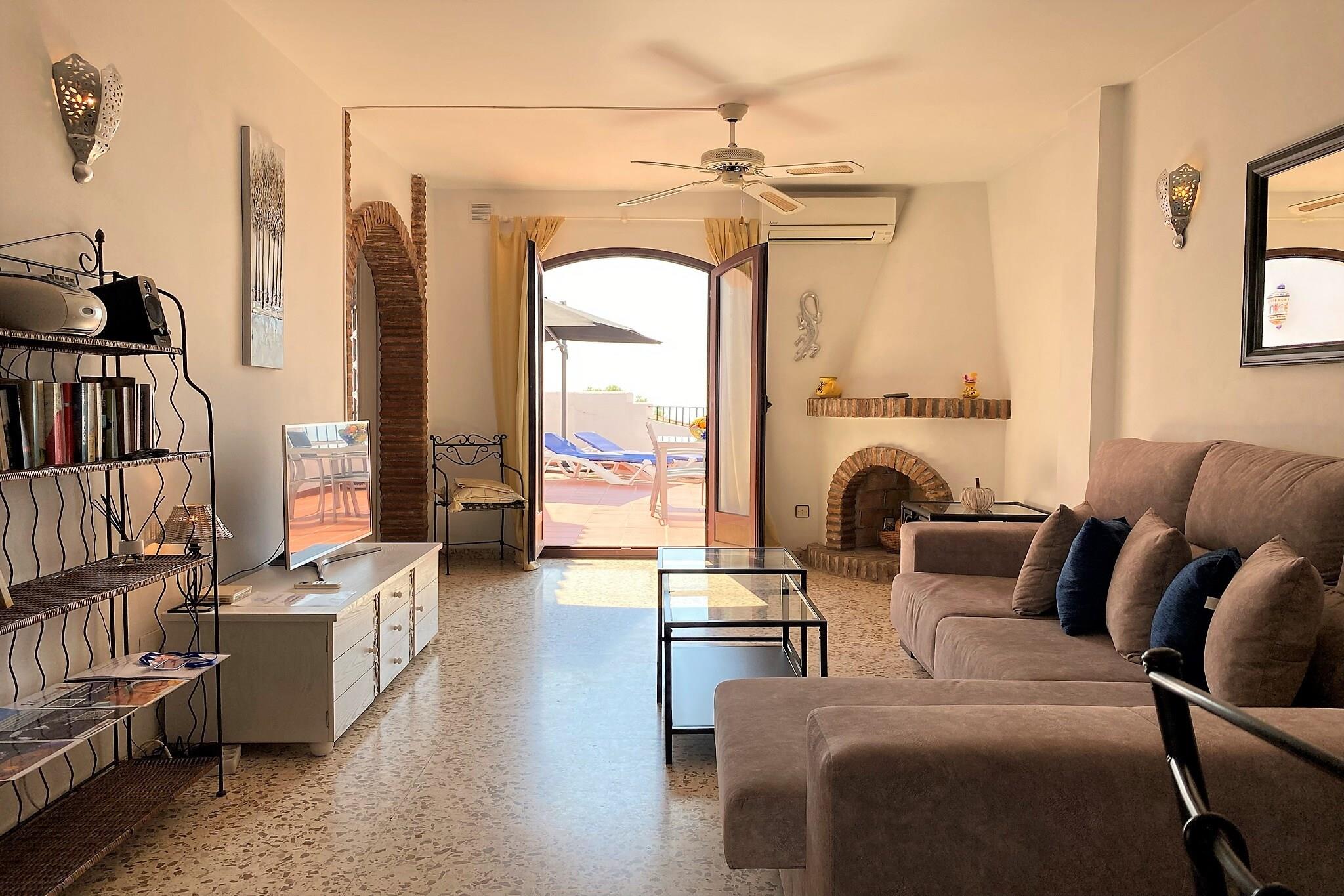 Dette smukt beliggende feriehus med sydvendt udsigt har to soveværelser – et med en dobbeltseng og det andet med to enkeltsenge – der komfortabelt kan rumme op til fire gæster. Det mest bemærkelsesværdige er en 40 m² stor terrasse med panoramaudsigt over havet, møbleret med liggestole, en skyggefuld spiseplads og et loungeområde, der er ideelt til afslapning. Denne ikke-ryger, kæledyrsfri ejendom har aircondition, Wi-Fi og en lys stue med tv, der tilbyder komfort til par eller små familier. Der tilbydes ikke gratis aktiviteter, men der er en fælles pool med børneafdeling kun 200 meter væk. Lejligheden ligger i det maleriske San Juan de Capistrano-område i Nerja, kun 1,8 km fra Burriana-stranden og 4 km fra den historiske Balcón de Europa. En nærliggende buslinje giver nem adgang til både strand og by. Vigtige faciliteter ligger inden for gåafstand – kun en kort gåtur til lokale restauranter, barer og et supermarked – hvilket gør det bekvemt for gæster, der foretrækker at udforske området til fods. Det fuldt udstyrede køkken har elektrisk kogeplade, ovn, mikrobølgeovn, køleskab, fryser og opvaskemaskine samt køkkenredskaber og små apparater som kaffemaskine og brødrister. Der er også et badeværelse med badekar og hårtørrer. Ekstraudstyr såsom barneseng, højstol, champagne og velkomstpakke kan arrangeres, og ejendommen inkluderer personlig indtjekning med værten for en problemfri ankomst.