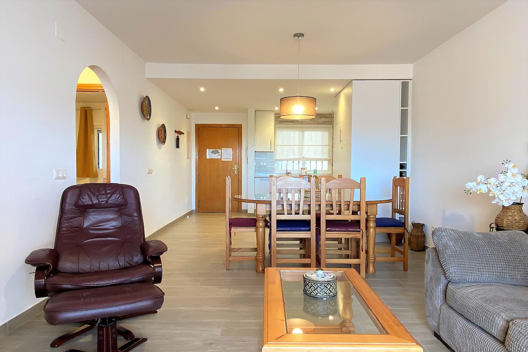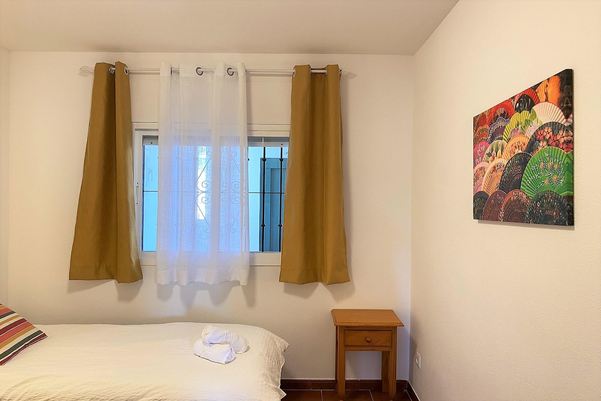 Denne charmerende og nyrenoverede lejlighed har to rummelige soveværelser med en dobbeltseng og to enkeltsenge, der komfortabelt kan rumme op til fire gæster. Ejendommen har to badeværelser, hvoraf det ene er ensuite. Lejligheden er udstyret med moderne bekvemmeligheder som aircondition, højhastighedsinternet, internationale tv-kanaler og et fuldt udstyret køkken med opvaskemaskine. Det er ikke kæledyrsvenligt, men gæsterne kan nyde godt af yderligere tjenester som personlig indtjekning og valgfrie premium-pakker. Der er en fælles swimmingpool, perfekt til afslapning på varme dage. Lejligheden ligger kun 500 meter fra den berømte Burriana-strand og tilbyder nem adgang til denne smukke sandstrand, der er kendt for sit krystalklare vand. Stranden er omgivet af en livlig promenade med souvenirbutikker og en række restauranter, herunder den berømte "Restaurante Ayo", der er berømt for sine brændefyrede paellaer. Gæsterne kan udforske den maleriske by Nerja, mens der er gode transportforbindelser til nærliggende områder og Malaga Lufthavn. Lejligheden kan prale af et fuldt udstyret køkken med moderne apparater som induktionskogeplade, ovn, køleskab, mikrobølgeovn, kaffemaskine og meget mere. De to badeværelser, inklusive det tilhørende badeværelse, har bruser og hårtørrer. En privat balkon tilbyder en fantastisk udsigt over havet og bjergene, og ejendommen har også vaskemaskine og strygejern for ekstra bekvemmelighed.