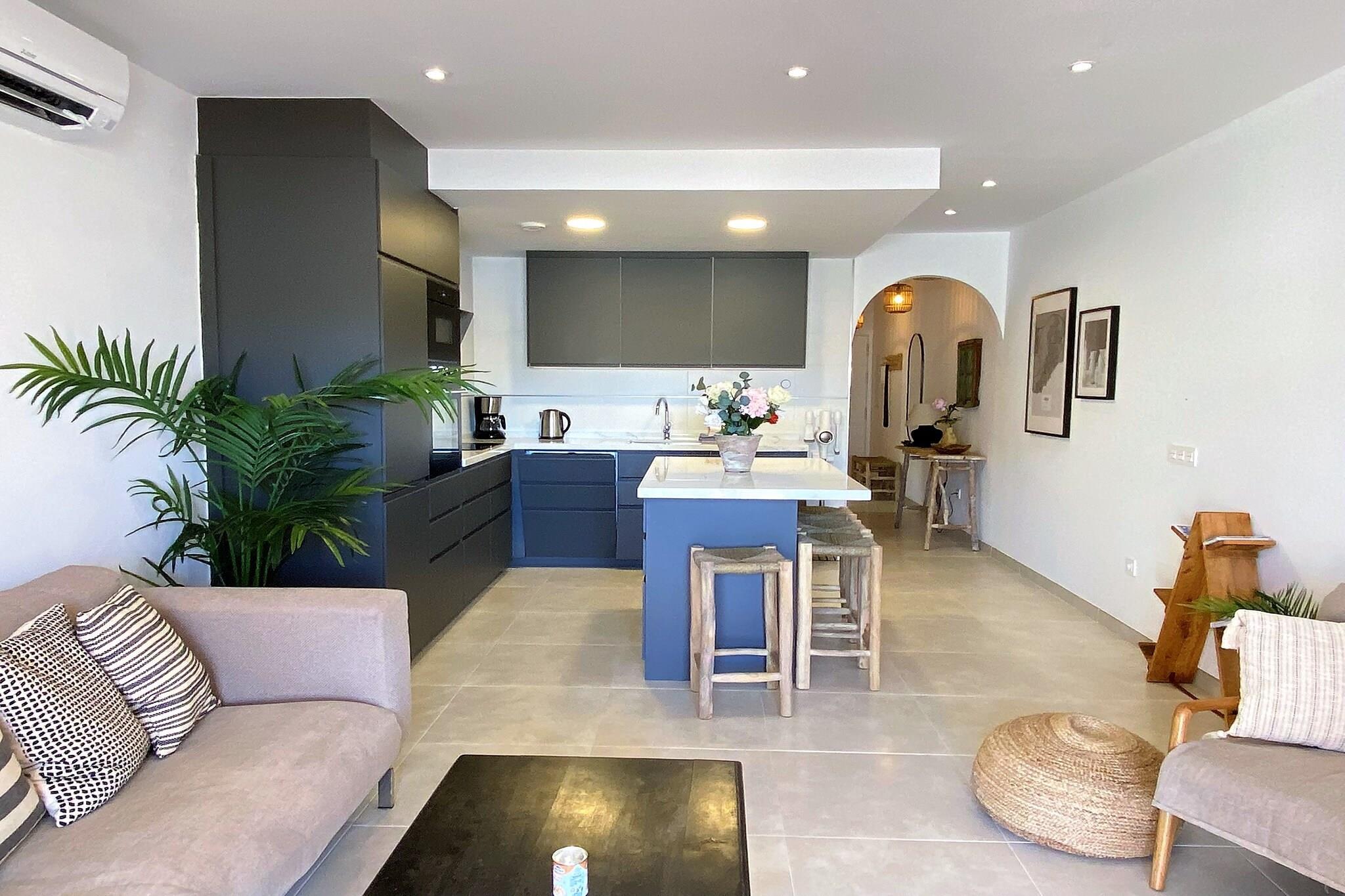 Dette rummelige feriehus er en smukt møbleret villa med tre soveværelser og tre private terrasser, der komfortabelt kan rumme op til seks voksne og to børn. Med to dobbeltsenge og et værelse med køjesenge er den ideel til familier eller små grupper. Villaen har et hyggeligt opholdsområde med en legeplads, højhastighedsinternet og et smart-tv med internationale kanaler. Gæsterne kan slappe af på flere terrasser, hvoraf den ene har en gasgrill og spiseplads, mens den anden har en chill-out-zone og hængekøje. Ejendommen er ikke kæledyrsvenlig, men tilbyder valgfri leje af babysenge og høje stole. Ideelt beliggende kun 600 meter fra den velkendte Burriana-strand og 400 meter fra et stort supermarked, tilbyder villaen nem adgang til Nerjas bedste kyst- og kulinariske steder. Inden for få minutter kan gæsterne udforske strandrestauranter, lokale tapasbarer og butikker. Bymidten og andre attraktioner som Balcón de Europa ligger kun en kort køretur eller gåtur væk. Der er parkering på stedet for op til to køretøjer, og lufthavnstransport kan arrangeres efter anmodning, hvilket øger bekvemmeligheden. Villaen har et fuldt udstyret køkken med moderne apparater, herunder opvaskemaskine, ovn og mikrobølgeovn. En tredje terrasse på taget tilbyder et udendørs køkken, køleskab, siddeområde og havudsigt, samt et brusebad til at køle af på varme dage. Ejendommen kan også prale af en fælles swimmingpool, aircondition overalt, vaskemaskine og strygefaciliteter, hvilket gør den perfekt til lange eller korte ophold i komfort.