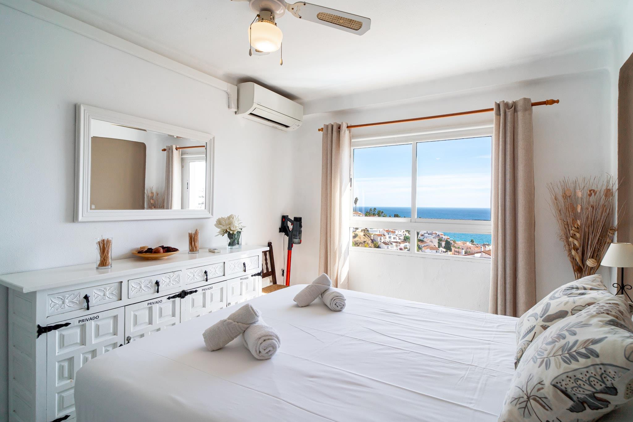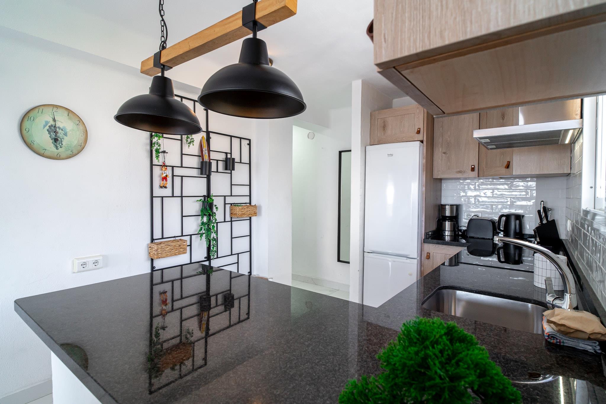 Denne hyggelige lejlighed med 2 soveværelser, beliggende i Bahamas Building, tilbyder et komfortabelt ophold for op til fire gæster. Den inkluderer en terrasse med udsigt over den fælles pool og det grønne område, perfekt til afslapning og udendørsaktiviteter. Lejligheden er udstyret med moderne bekvemmeligheder såsom aircondition, højhastighedsinternet, strygejern og hårtørrer. Sengelinned og håndklæder er inkluderet, hvilket sikrer et problemfrit ophold. Selvom der er fælles parkering, er der et begrænset antal pladser, så en parkeringsplads kan ikke garanteres. Lejligheden er ideelt beliggende kun 600 meter fra den berømte Burriana-strand, en af de mest populære sandstrækninger i Nerja, hvilket gør det nemt at nyde middelhavssolen og surfe. For dem, der ønsker at udforske området yderligere, ligger ejendommen i et roligt område, der tilbyder fred og ro, samtidig med at den stadig er inden for rækkevidde af lokale attraktioner. Den fælles pool og de omkringliggende grønne områder er perfekte til solbadning eller en forfriskende dukkert. Det fuldt udstyrede køkken er klar til at opfylde dine behov og har alle de nødvendige apparater, herunder køleskab, mikrobølgeovn, ovn og opvaskemaskine. Uanset om du forbereder en hurtig snack eller et komplet måltid, har du alt hvad du behøver for at nyde et komfortabelt og bekvemt ophold.