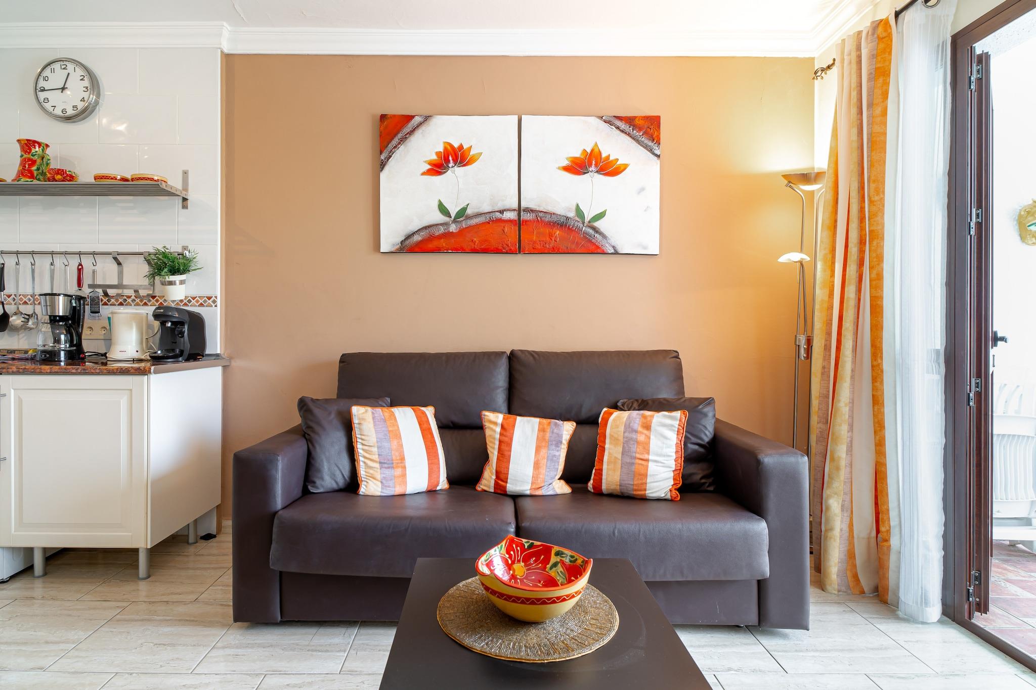 Velkommen til denne fredelige lejlighed med et soveværelse, ideel til et afslappende ophold i Nerja. Denne lyse og veludstyrede lejlighed i stueetagen har et komfortabelt soveværelse med dobbeltseng, et stilfuldt badeværelse med bruseniche og vaskemaskine, et fuldt udstyret åbent køkken og en hyggelig stue med aircondition, tv og internetadgang. Højdepunktet er den private haveterrasse mod sydvest, møbleret med liggestole - perfekt til at nyde den andalusiske sol. Lejligheden ligger i den charmerende landsby Capistrano og giver gæsterne adgang til to store fælles swimmingpools (den ene er åben året rundt), frodige haver, et grillområde samt en poolbar og restaurant på stedet. De hvidkalkede huse og den middelhavsinspirerede landskabspleje skaber en malerisk og afslappende atmosfære. Du er inden for gåafstand af to store supermarkeder (Mercadona og Carrefour), og det lokale busstoppested ligger kun 5 minutter væk med regelmæssig service til bymidten og strandene. Burriana-stranden, en af Nerjas mest populære strande, ligger 25 minutters gang fra ejendommen og tilbyder vandsport, restauranter som den berømte AYO og naturskønne vandrestier med havudsigt. Der er gratis gadeparkering i nærheden. Nyd vores 5-stjernede personlige indtjekning, valgfri lufthavnstransport og velkomstpakker for en problemfri ankomst. Uanset om du planlægger en solrig ferie eller en romantisk pause, er denne lejlighed din perfekte base i Nerja.