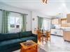 , Køkken(elkedel, brødrister, kaffemaskine, ovn, mikrobølgeovn, køleskab, ), stue / spisestue(Fjernsyn, spisebord, sofahjørne), soveværelse(dobbeltseng), badeværelse(bruser), Internetadgang, Internetadgang, vaskemaskine, klimaanlæg, terrasse, grill, strygejern, føntørrer, Mountain view, Sea view, Wine glasses