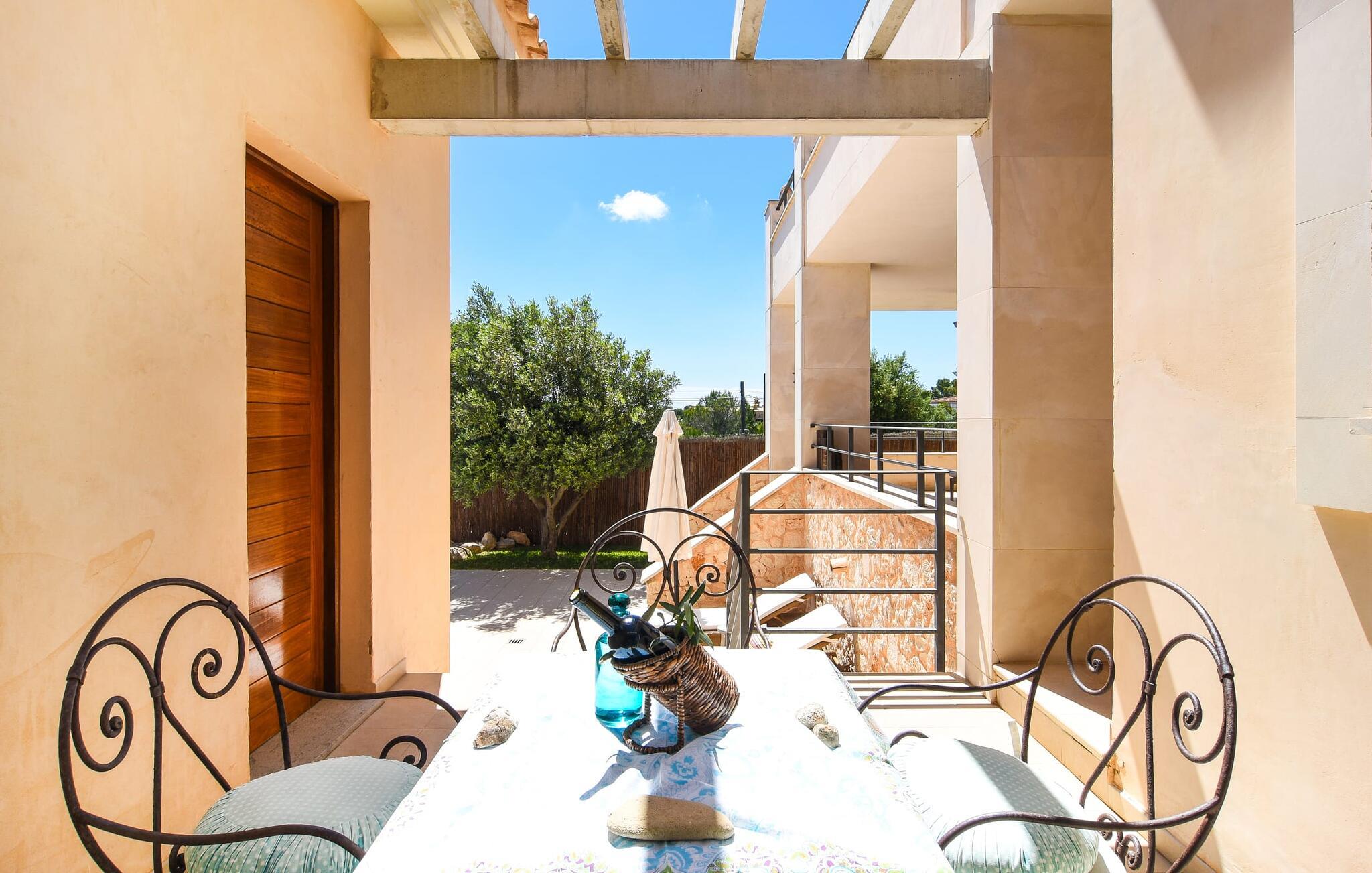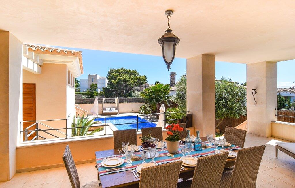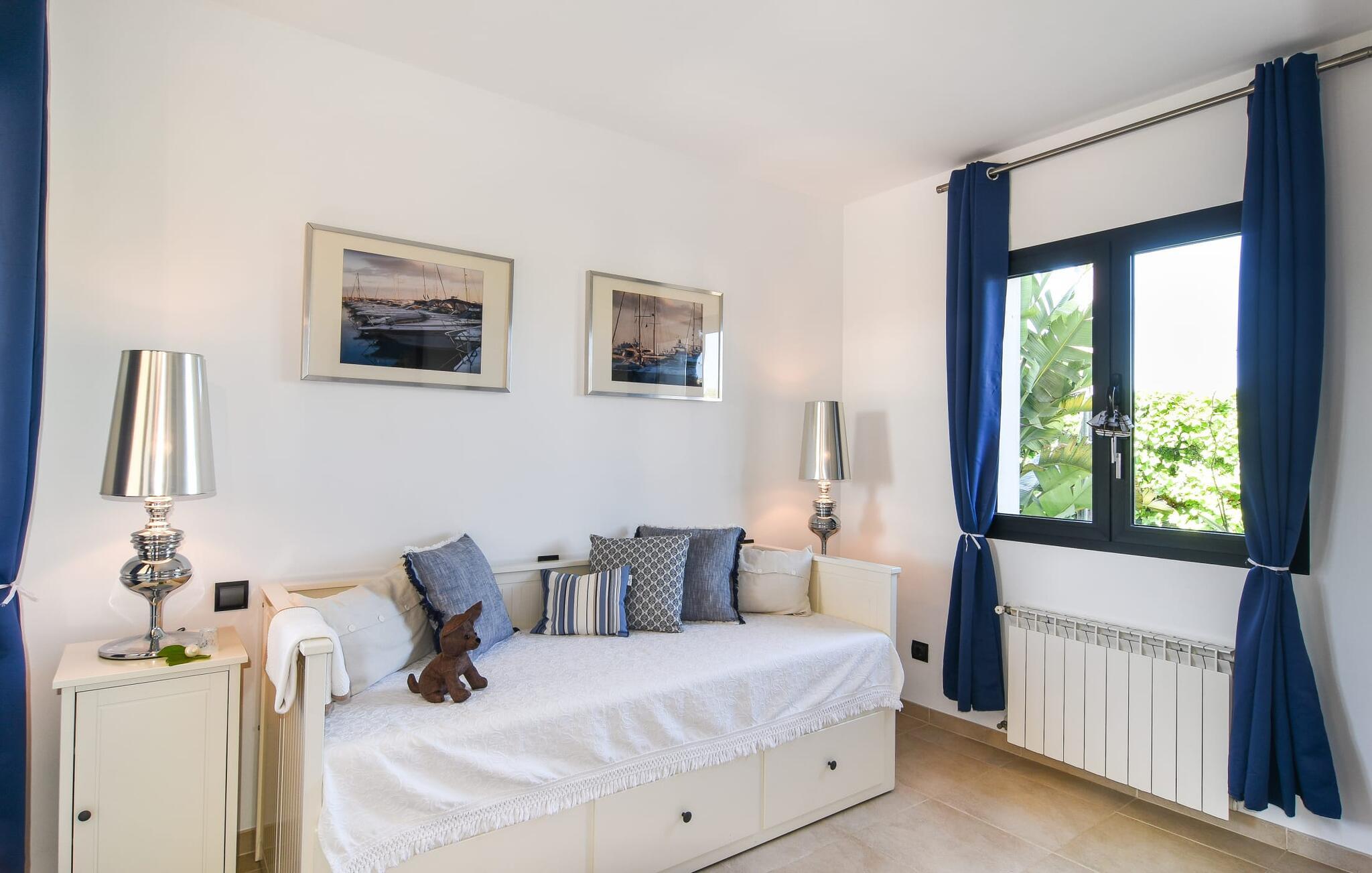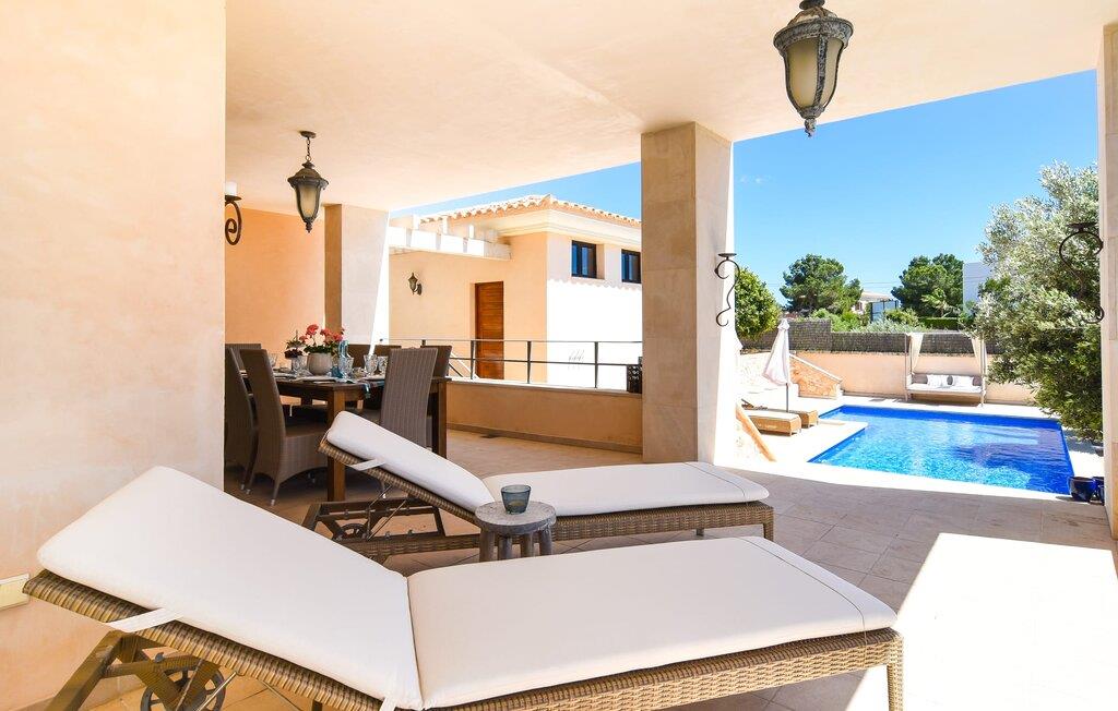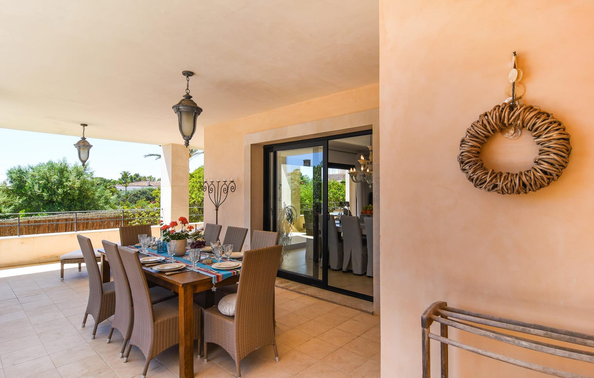 “Ocean Blue” – det er det lovende navn på denne byvilla, der ligger på Mallorcas smukke sydøstkyst. Her er nogle af højdepunkterne i drømmevillaen. Ejendommen består stort set af en helt sydvendt terrasse og poolområde. Poolen er tilgængelig via en lav sidetrappe og er placeret på en naturstensterrasse. Der er plads nok på terrassen til komfortable poly-flet liggestole og endda en kølig dagseng i Bali-stil. Middelhavsblomstrende planter som hibiscus, nogle palmer og oliventræer omgiver det lille, men meget attraktive udendørsområde. Selvom villaen er beliggende i en urbanisering af høj kvalitet med nabohuse, er poolområdet ikke synligt, og privatlivets fred er meget godt beskyttet i hele ejendommen. En trappe fører til villaens overdækkede terrasse, som er L-formet. Der er god plads til liggestole og et massivt træbord med trendy højryggede rattanstole. Et andet mere romantisk opholdsområde på en slags terrasse lige ved siden af køkkenet er udstyret med et delikat bistromøbelsæt. Ydermere er der ovenpå en indbydende, delvist overdækket udsigtsplatform og et afslappet loungehjørne, der er tilgængeligt fra to af soveværelserne. Uanset om det er dag eller nat, kan I slappe helt af og nyde den fænomenale havudsigt. Når vi træder ind i denne 5-stjernede ejendom, møder vi en eksemplarisk indretningsstil, der fuldstændig imponerer med sin elegante, tidløse stemning via gulv-til-loft, antracitfarvede vindueselementer, der bader interiøret i denne smarte villa i smukt lys. De lyse rum er indrettet med overvejende hvide møbler og højkvalitets tilbehør af metal og træ i rustik-moderne landstedsstil med vintage-touch, som det også kan ses i den kombinerede opholds- og spiseafdeling. Højkvalitets, massive mørke trædøre adskiller rummene. Marès-sten af høj kvalitet, som har sin naturlige oprindelse på De Baleariske Øer, blev ofte brugt. Det trendy køkken er udstyret med indbyggede skabe, der svarer til stilen fra et tidligere gårdkøkken - alt i hvid af høj kvalitet. Det moderne, fuldt udstyrede køkken gør selvforplejning til en fornøjelse. Enkeltværelset med enkel og elegant indretning samt badeværelse, der også sagtens kan bruges som gæstebadeværelse, er placeret i stueetagen. En trætrappe, som bliver til et galleri, fører til det øverste niveau, hvor de tre andre soveværelser er placeret; alle med aircondition. Sengene i de rummelige værelser måler alle 1,80 mx 2 m. To trendy afslapningsrum deler det ene af de to badeværelser, hovedsoveværelset har eget badeværelse. Hvert en-suite badeværelse har indretning af høj kvalitet - smukt flisebelagt med brusekabine fra gulv til loft: I hovedbadeværelset er der endnu et stort badekar, hvor I kan nyde panoramaudsigten, mens I slapper af i badekarret. Fra den allerede beskrevne solterrasse på dette niveau kan I byde den nye dag velkommen, mens I nyder den let salte brise, der blæser fra havet. Villaen har en privilegeret beliggenhed mellem de to kystbyer Cala Santanyi og Cala Figuera. Cala Santanyi er også inden for gåafstand. Denne lille bugt med fint sand er kendetegnet ved sin flade, børnevenlige kyst og sin lyse azurblå farve: Enhver, der sidder på trappen til de gamle fiskerhytter og ser på det imponerende klippepanorama over det glitrende vand, ved, at man endelig er på ferie. I bør bestemt ikke gå glip af en tur til den maleriske fiskerihavn Cala Figuera (ca. 1,3 km væk). Denne fjordlignende "figenbugt" er stadig udgangspunktet for fiskere. Samtidig finder I nogle rigtig gode restauranter langs den smukke promenade, der serverer friskfanget fisk. På grund af dens beliggenhed i en urbanisering er der noget støj fra gaden, men det bruges hovedsageligt af lokale beboere, nabobyer er nemme at nå, herunder Santanyi, som blev grundlagt i 1200-tallet. Her kan I gå en tur gennem maleriske gader og finde en hyggelig bodega og tapasbar for at afslutte jeres afslappende dag. Den maritime villa "Ocean Blue" er beliggende i den velholdte urbanisering Se Torre Nova nær Cala Santanyi. Det skylder sit navn til dets nærhed til havet, da den smukke sandbugt Cala Santanyi ligger kun et stenkast væk og kan også nås til fods. Daglig indkøb kan foretages i Santanyi, hvor det ugentlige marked finder sted hver onsdag. Den maleriske fiskerihavn Cala Figuera ligger kun 1,3 km væk og kan nemt nås til fods.