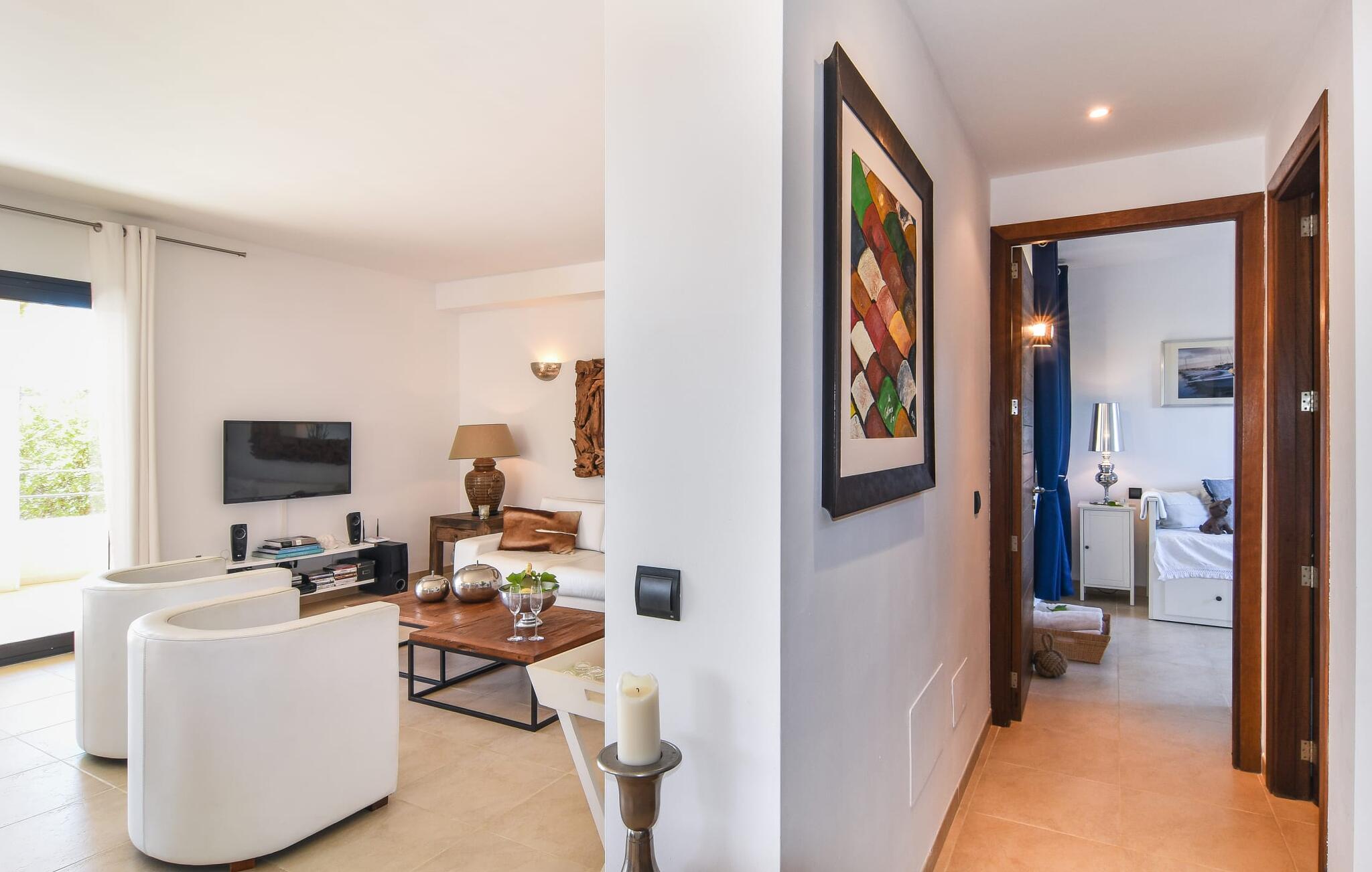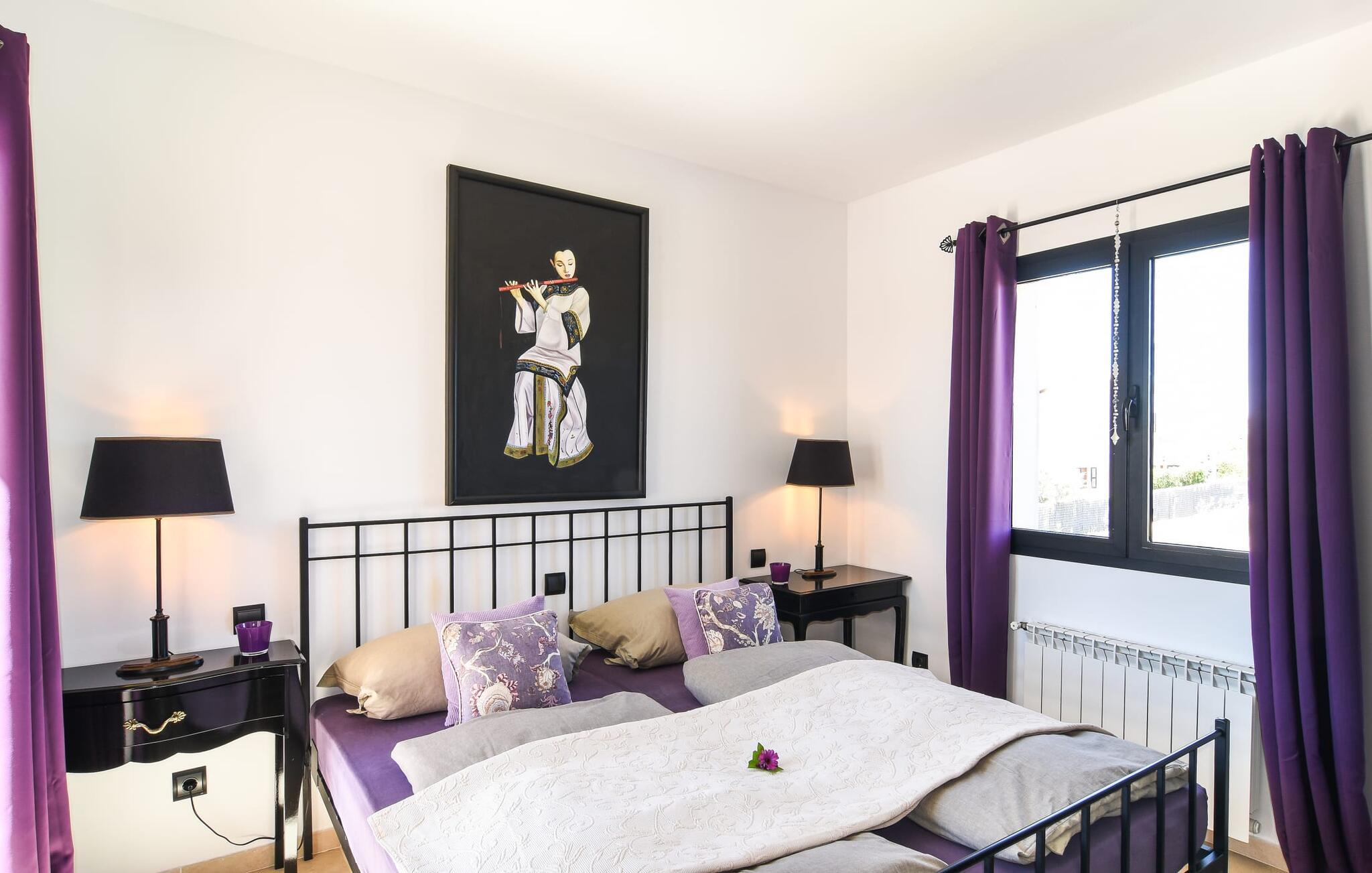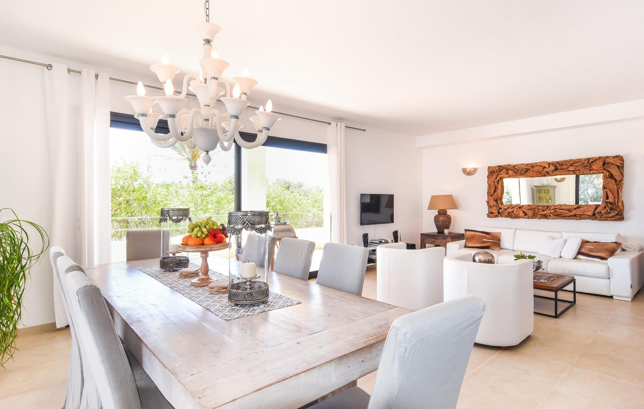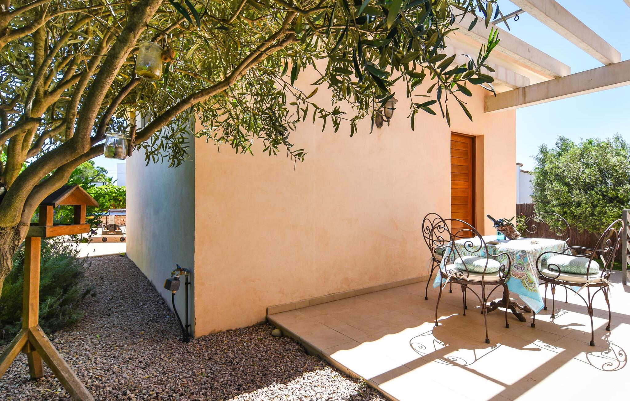 “Ocean Blue” – det er det lovende navn på denne byvilla, der ligger på Mallorcas smukke sydøstkyst. Her er nogle af højdepunkterne i drømmevillaen. Ejendommen består stort set af en helt sydvendt terrasse og poolområde. Poolen er tilgængelig via en lav sidetrappe og er placeret på en naturstensterrasse. Der er plads nok på terrassen til komfortable poly-flet liggestole og endda en kølig dagseng i Bali-stil. Middelhavsblomstrende planter som hibiscus, nogle palmer og oliventræer omgiver det lille, men meget attraktive udendørsområde. Selvom villaen er beliggende i en urbanisering af høj kvalitet med nabohuse, er poolområdet ikke synligt, og privatlivets fred er meget godt beskyttet i hele ejendommen. En trappe fører til villaens overdækkede terrasse, som er L-formet. Der er god plads til liggestole og et massivt træbord med trendy højryggede rattanstole. Et andet mere romantisk opholdsområde på en slags terrasse lige ved siden af køkkenet er udstyret med et delikat bistromøbelsæt. Ydermere er der ovenpå en indbydende, delvist overdækket udsigtsplatform og et afslappet loungehjørne, der er tilgængeligt fra to af soveværelserne. Uanset om det er dag eller nat, kan I slappe helt af og nyde den fænomenale havudsigt. Når vi træder ind i denne 5-stjernede ejendom, møder vi en eksemplarisk indretningsstil, der fuldstændig imponerer med sin elegante, tidløse stemning via gulv-til-loft, antracitfarvede vindueselementer, der bader interiøret i denne smarte villa i smukt lys. De lyse rum er indrettet med overvejende hvide møbler og højkvalitets tilbehør af metal og træ i rustik-moderne landstedsstil med vintage-touch, som det også kan ses i den kombinerede opholds- og spiseafdeling. Højkvalitets, massive mørke trædøre adskiller rummene. Marès-sten af høj kvalitet, som har sin naturlige oprindelse på De Baleariske Øer, blev ofte brugt. Det trendy køkken er udstyret med indbyggede skabe, der svarer til stilen fra et tidligere gårdkøkken - alt i hvid af høj kvalitet. Det moderne, fuldt udstyrede køkken gør selvforplejning til en fornøjelse. Enkeltværelset med enkel og elegant indretning samt badeværelse, der også sagtens kan bruges som gæstebadeværelse, er placeret i stueetagen. En trætrappe, som bliver til et galleri, fører til det øverste niveau, hvor de tre andre soveværelser er placeret; alle med aircondition. Sengene i de rummelige værelser måler alle 1,80 mx 2 m. To trendy afslapningsrum deler det ene af de to badeværelser, hovedsoveværelset har eget badeværelse. Hvert en-suite badeværelse har indretning af høj kvalitet - smukt flisebelagt med brusekabine fra gulv til loft: I hovedbadeværelset er der endnu et stort badekar, hvor I kan nyde panoramaudsigten, mens I slapper af i badekarret. Fra den allerede beskrevne solterrasse på dette niveau kan I byde den nye dag velkommen, mens I nyder den let salte brise, der blæser fra havet. Villaen har en privilegeret beliggenhed mellem de to kystbyer Cala Santanyi og Cala Figuera. Cala Santanyi er også inden for gåafstand. Denne lille bugt med fint sand er kendetegnet ved sin flade, børnevenlige kyst og sin lyse azurblå farve: Enhver, der sidder på trappen til de gamle fiskerhytter og ser på det imponerende klippepanorama over det glitrende vand, ved, at man endelig er på ferie. I bør bestemt ikke gå glip af en tur til den maleriske fiskerihavn Cala Figuera (ca. 1,3 km væk). Denne fjordlignende "figenbugt" er stadig udgangspunktet for fiskere. Samtidig finder I nogle rigtig gode restauranter langs den smukke promenade, der serverer friskfanget fisk. På grund af dens beliggenhed i en urbanisering er der noget støj fra gaden, men det bruges hovedsageligt af lokale beboere, nabobyer er nemme at nå, herunder Santanyi, som blev grundlagt i 1200-tallet. Her kan I gå en tur gennem maleriske gader og finde en hyggelig bodega og tapasbar for at afslutte jeres afslappende dag. Den maritime villa "Ocean Blue" er beliggende i den velholdte urbanisering Se Torre Nova nær Cala Santanyi. Det skylder sit navn til dets nærhed til havet, da den smukke sandbugt Cala Santanyi ligger kun et stenkast væk og kan også nås til fods. Daglig indkøb kan foretages i Santanyi, hvor det ugentlige marked finder sted hver onsdag. Den maleriske fiskerihavn Cala Figuera ligger kun 1,3 km væk og kan nemt nås til fods.