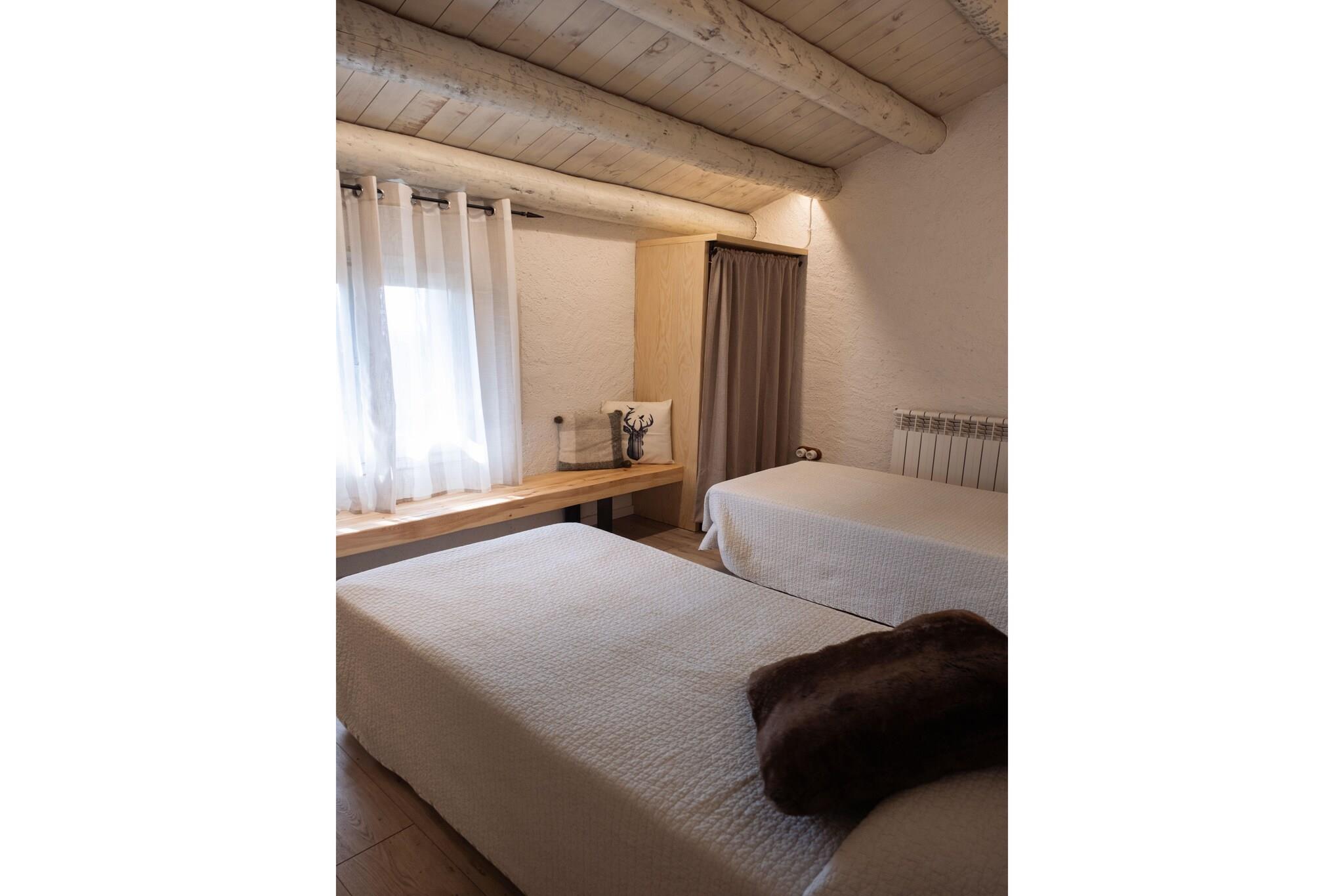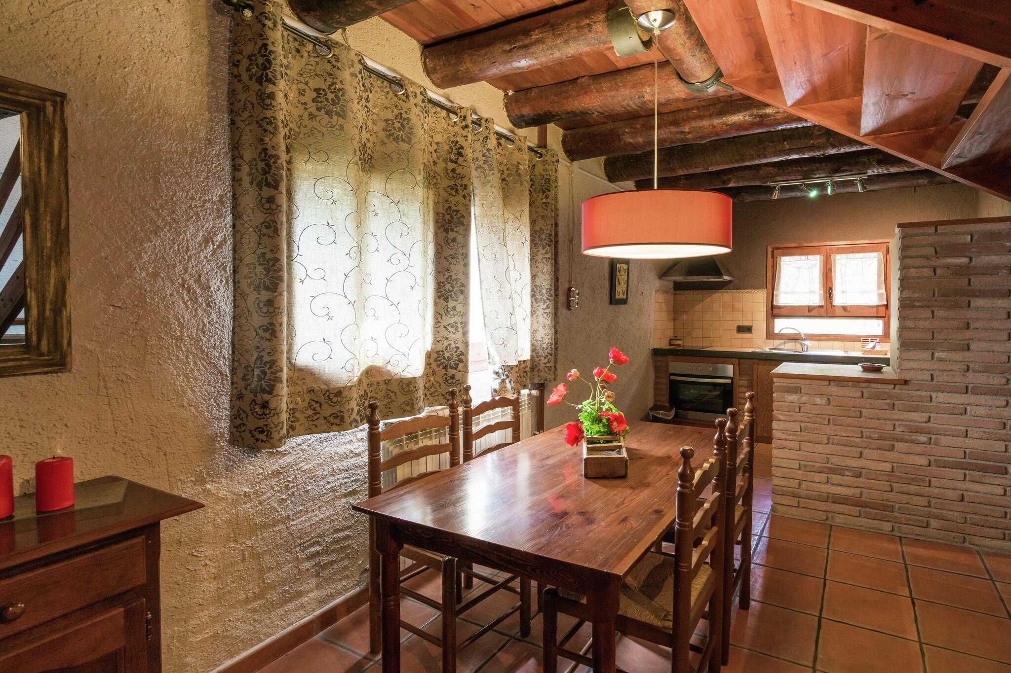 En tidligere, fuldt renoveret høhytte, der er dannet i 2 identiske sammenhængende huse, beliggende i en meget rustik og fredelig omegn i Prepyrenæerne. Rustik interiør med trægulve og platform med træ balkon. Du kan endda købe hjemmelavede produkter fra, f.eks. Køkkenhave, selv om det afhænger af årets periode. Der er et 400 år gammelt kapel inden for en afstand af 100 m, som tilhører huset. Inden for 800m er der 2 typiske restauranter i regionen, en med en swimmingpool. Nærmeste supermarked 20 km. Valgfri forsynings- & servicepakke