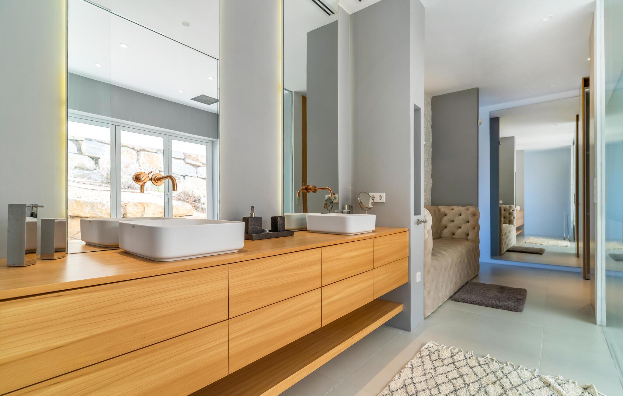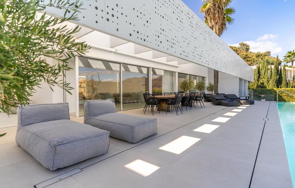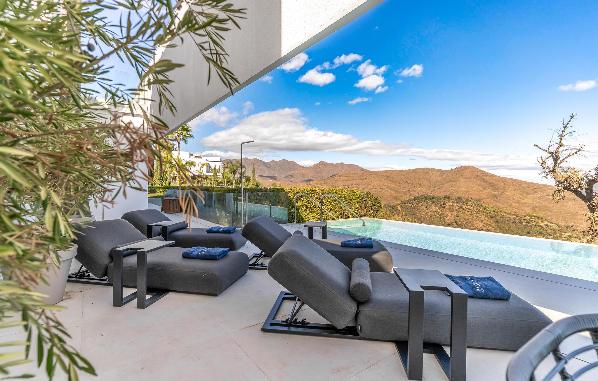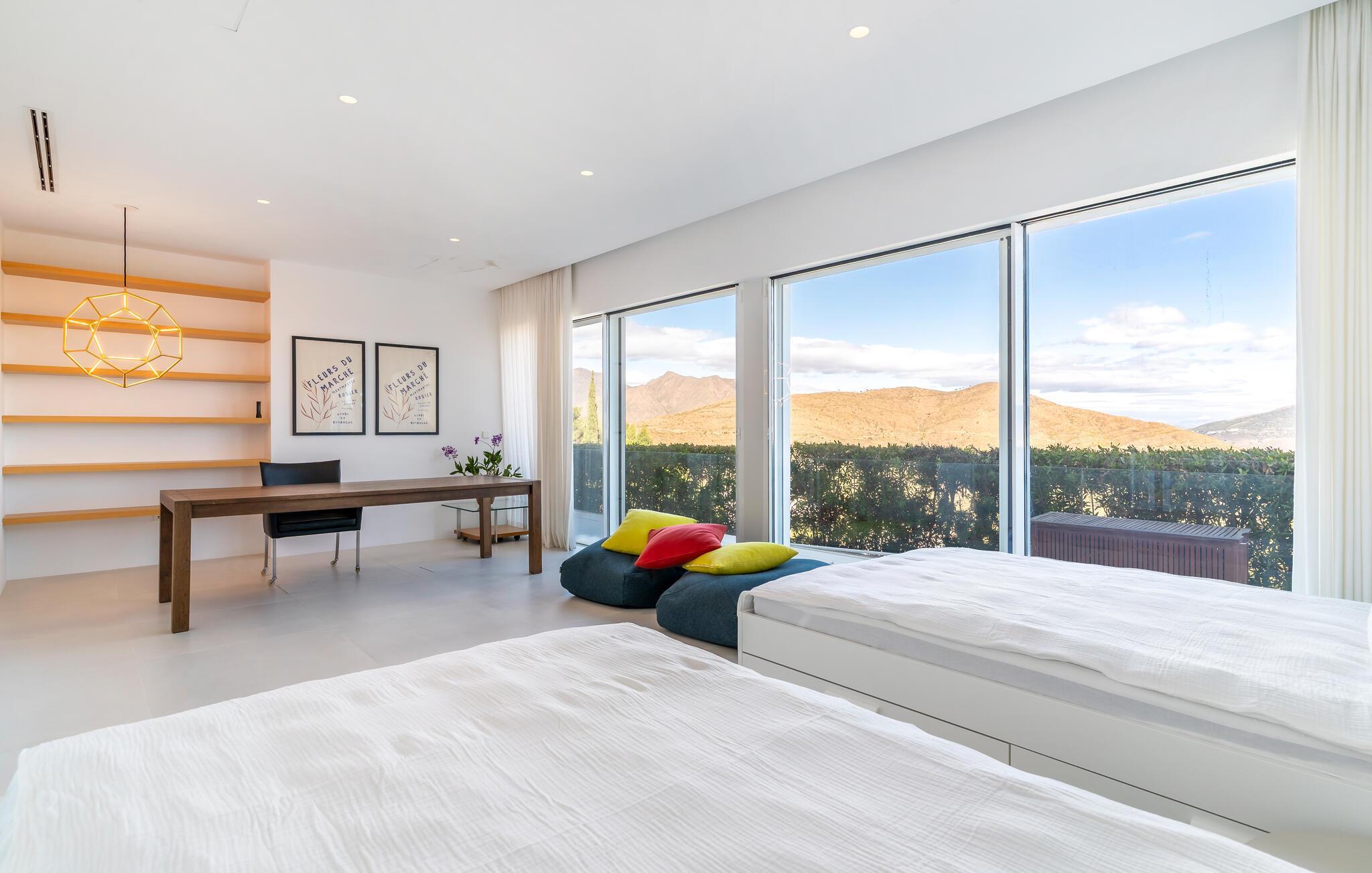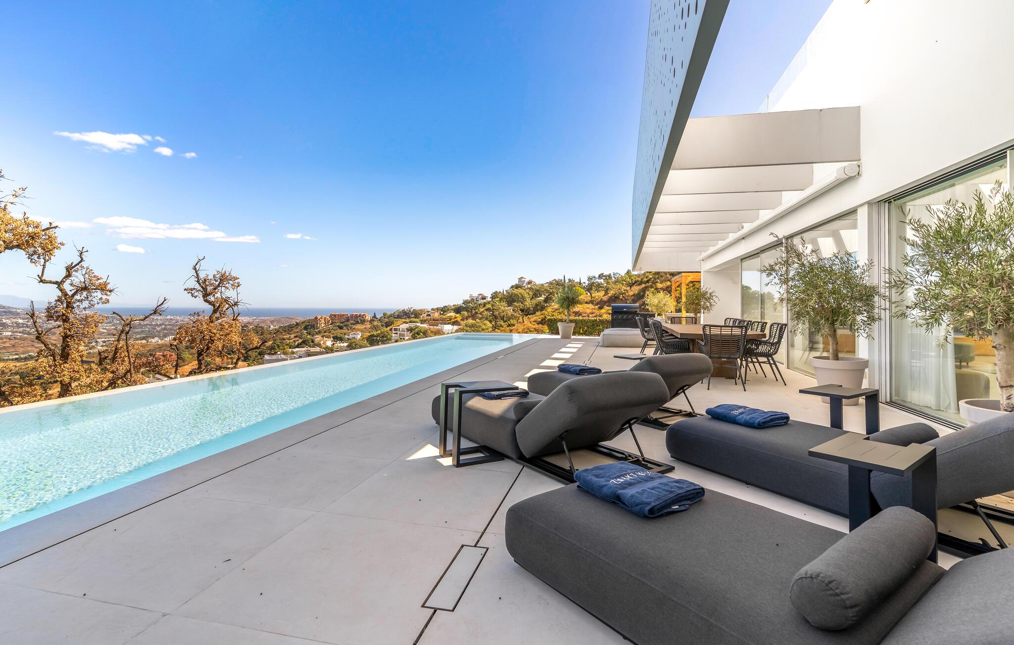 Dette eksklusive feriehus, beliggende på en høj beliggenhed, har en betagende panoramaudsigt helt ned til havet. Den store infinity-pool og de vidtstrakte terrasser skaber de perfekte rammer for afslapning udendørs.
