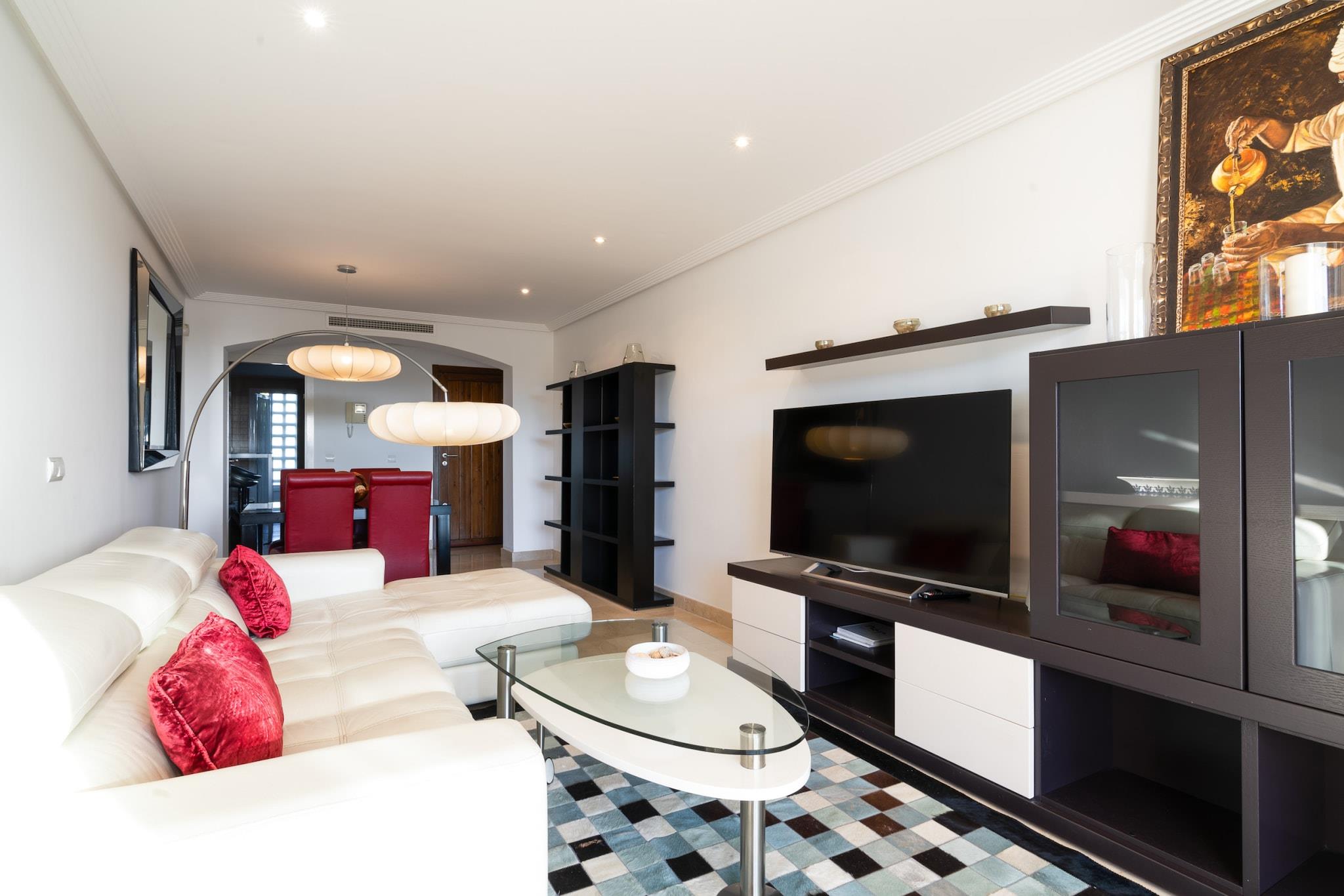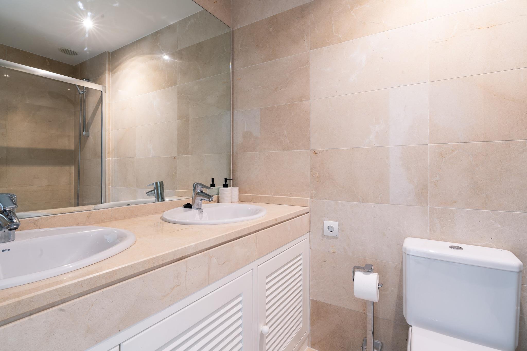 Ejendommen tilbyder sammen med sin moderne og indbydende atmosfære en komfortabel 90 m² lejlighed med to soveværelser, ideel til at rumme op til fire gæster. Lejligheden har en række praktiske faciliteter, herunder en fælles swimmingpool, aircondition og centralvarme for komfort året rundt. Gæsterne kan nyde en afslappende tid på terrassen eller slappe af i opholdsstuen med satellit-tv og internetadgang. En vaskemaskine og strygejern er til rådighed for gæsternes bekvemmelighed. Udendørs parkering er tilgængelig i samme bygning, hvilket gør det nemt for gæster med køretøjer at parkere sikkert. Beliggende i Ojén, er denne lejlighed ideelt beliggende for dem, der ønsker at udforske den smukke Costa del Sol-region. Gæsterne kan nyde nærliggende vandrestier og naturskøn udsigt over de omkringliggende bjerge. Den charmerende landsby byder på en fredelig atmosfære, men er alligevel kun en kort køretur fra Marbellas strande, butikker og restauranter. Det uafhængige køkken er fuldt udstyret med moderne elektriske apparater, herunder køleskab, mikroovn, ovn, fryser og opvaskemaskine, sammen med væsentligt køkkenudstyr som tallerkener, bestik og redskaber. Der er også kaffemaskine, brødrister, kedel og juicer til gæster, der ønsker at tilberede måltider eller nyde en morgendrink. Denne køkkenopsætning sikrer en problemfri selvforplejningsoplevelse for alle gæster. Uanset om du slapper af i stuen eller tilbereder et måltid, tilbyder lejligheden alt det nødvendige for et behageligt ophold.