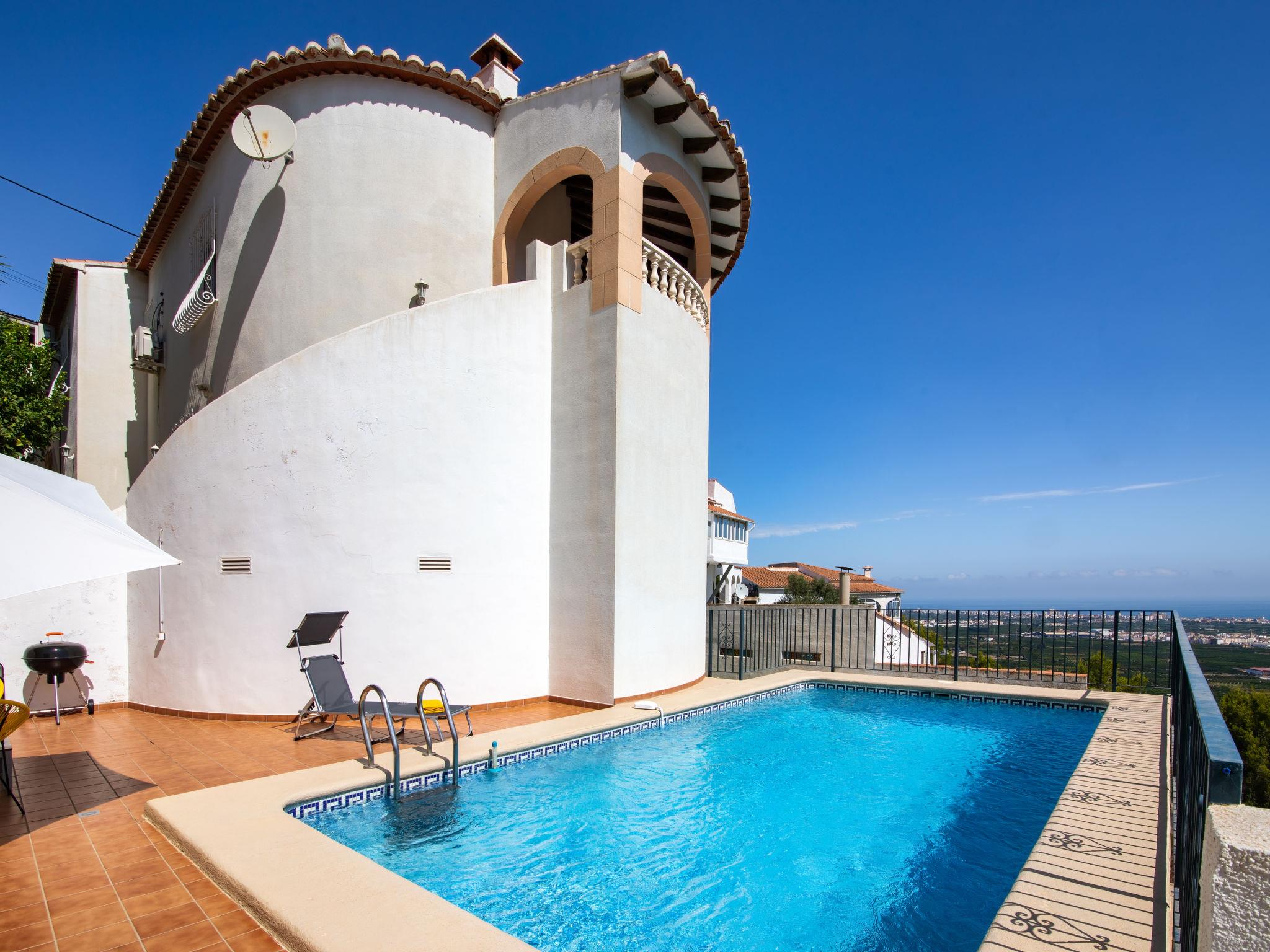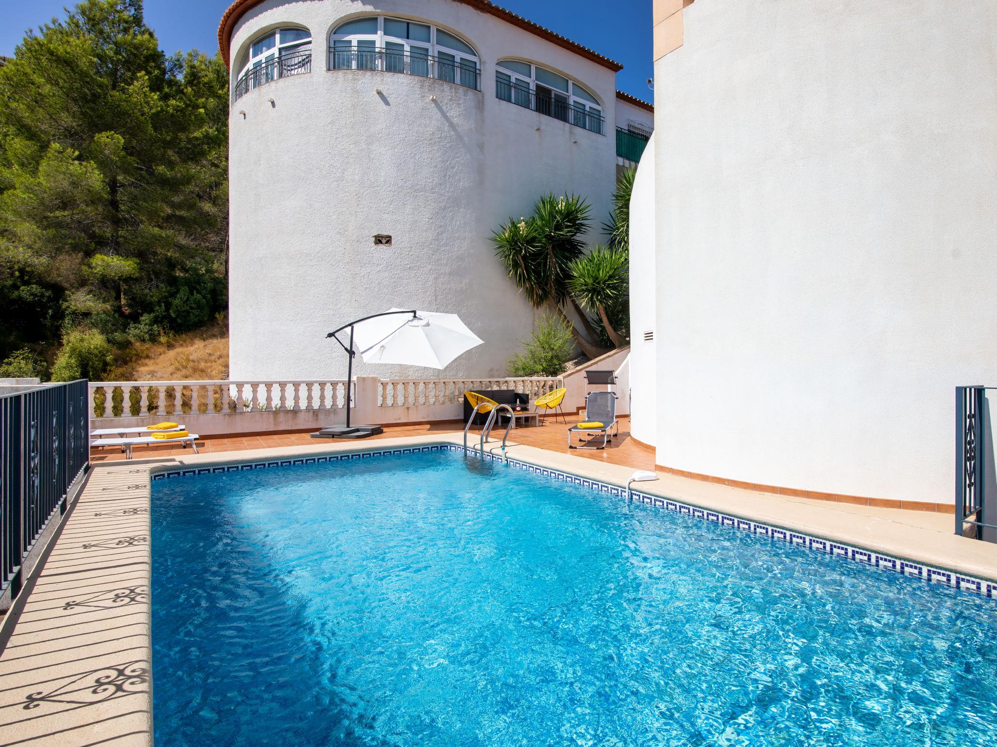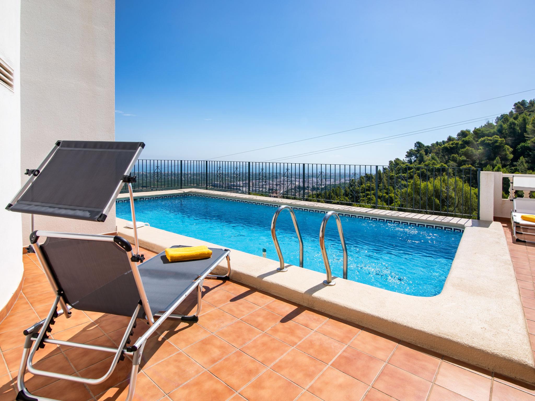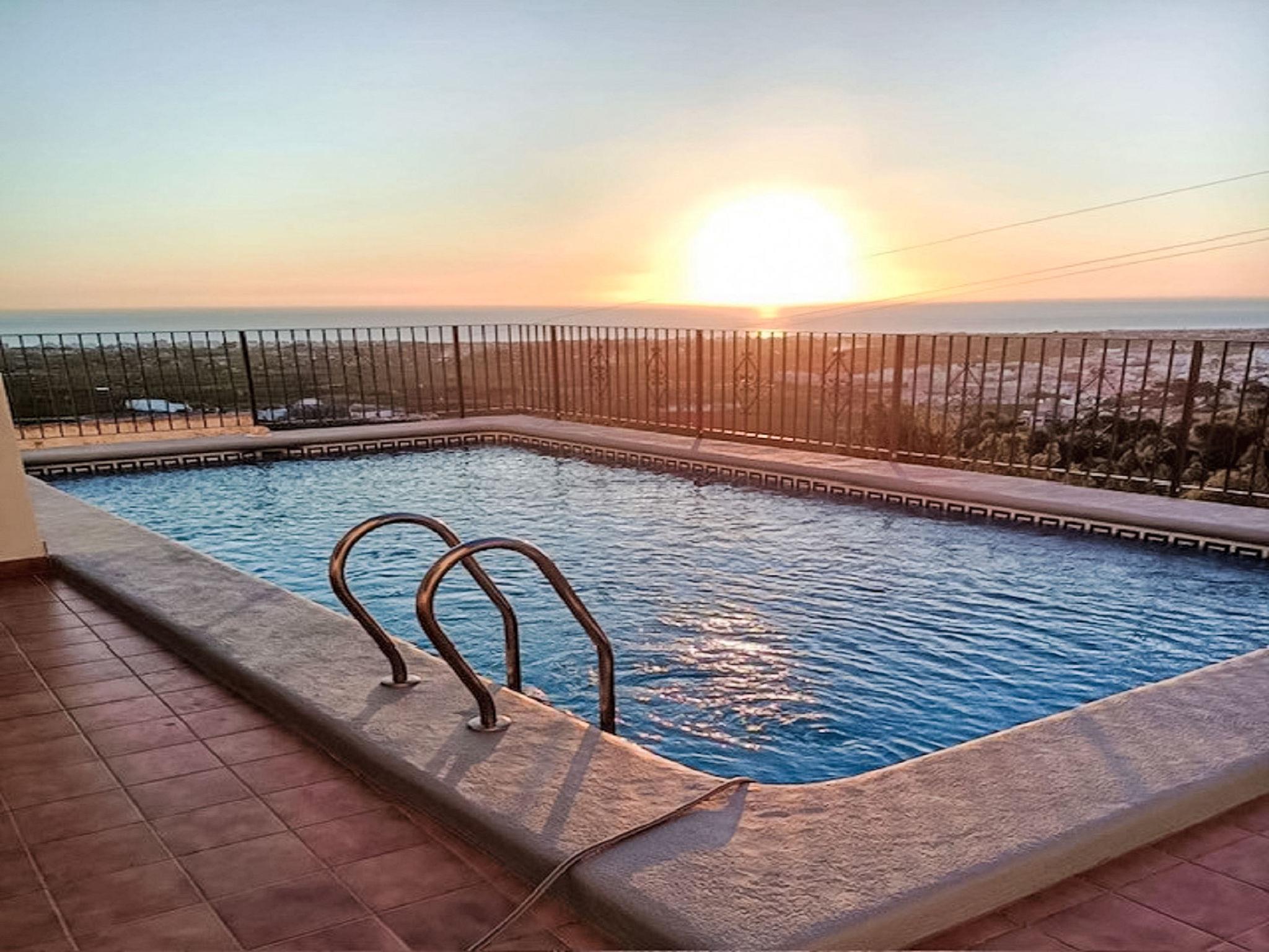 Oliva: Large, beautiful, comfortable villa "Bellvue". 3 km from the centre of Oliva, 24 km from the centre of Denia, in a quiet, sunny, elevated position, 5.5 km from the sea. Private: beautiful terraced garden wildlife garden and trees, swimming pool angular (8 x 4 m, depth 140 - 180 cm, seasonal availability: 01.Jan. - 31.Dec.). Terrace, garden furniture, barbecue. In the house: WiFi. Stepped path to the house. Parking on the premises. Supermarket 3 km, restaurant 1 km, bus stop 3 km, sandy beach 5.5 km. Golf course (18 hole) 6 km, tennis 5 km. The owner does not accept any youth groups.