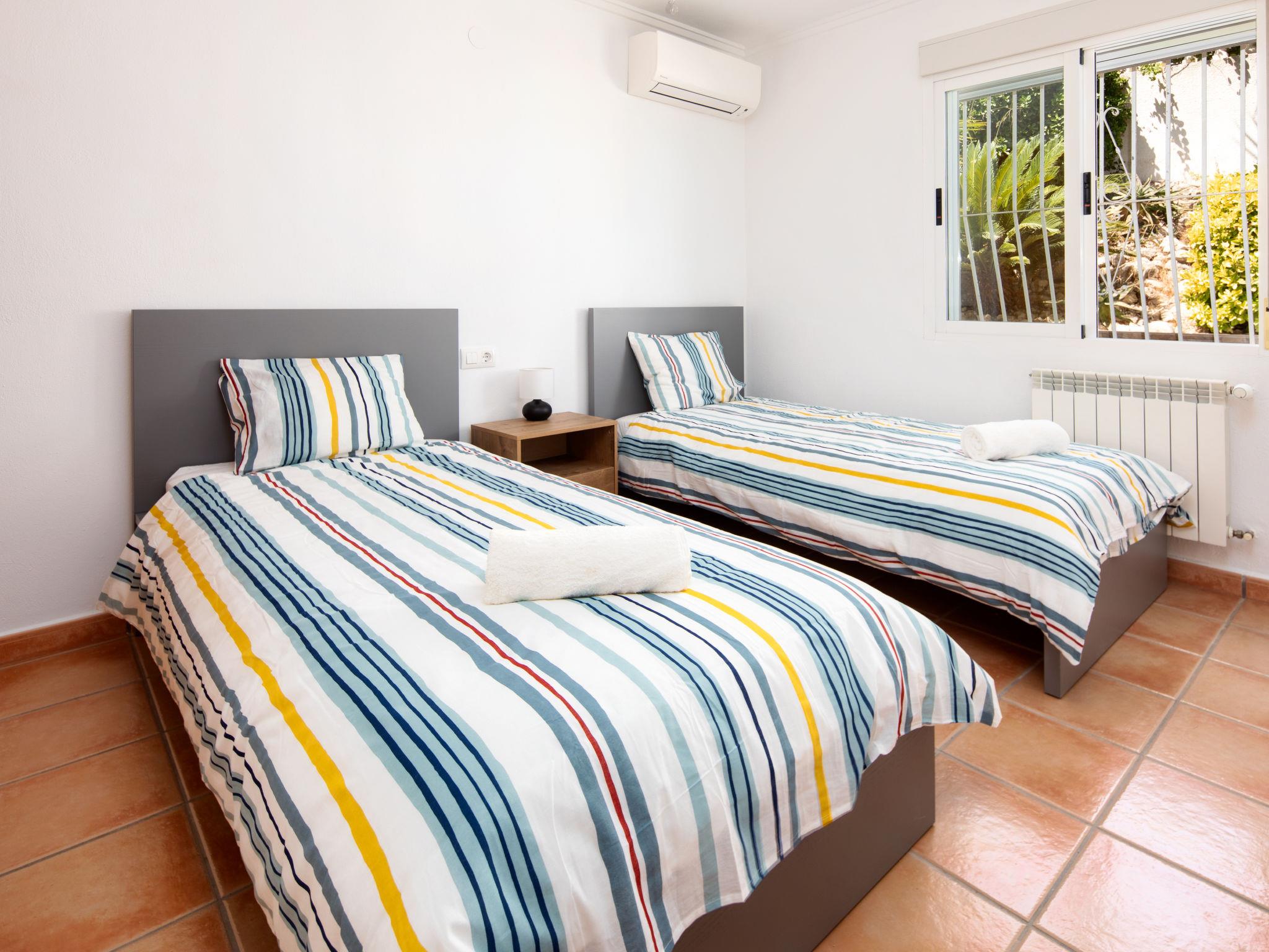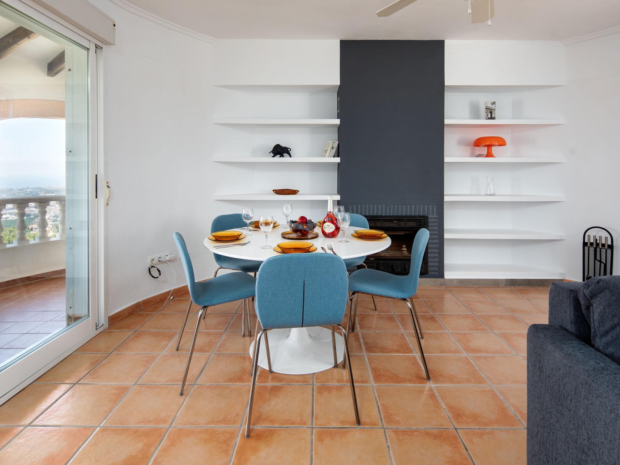"Bellvue", 4-room villa 125 m2. Spacious and bright, renovated in 2022, very comfortable and beautiful furnishings: living/dining room with digital TV, air conditioning and forced-air heating. Exit to the terrace. 1 room with 1 french bed (160 cm, length 200 cm), shower/bidet/WC, air conditioning, fan and forced-air heating. 1 room with 1 french bed (160 cm, length 200 cm), air conditioning, fan and forced-air heating. 1 room with 2 beds (90 cm, length 200 cm), air conditioning and forced-air heating. Open kitchen (oven, dishwasher, 4 induction hot plates, toaster, kettle, microwave, freezer, electric coffee machine). Shower/WC. Large terrace roofed, east facing position. Terrace furniture, deck chairs. Marvellous view of the sea, the mountains and the valley. Facilities: washing machine, iron, children's high chair, baby cot, hair dryer. Internet (WiFi, free). Parking. CV-VUT0051702-V // Reg. Nr.: ESFCTU0000460390003023730000000000000CV-VUT0051702-V7