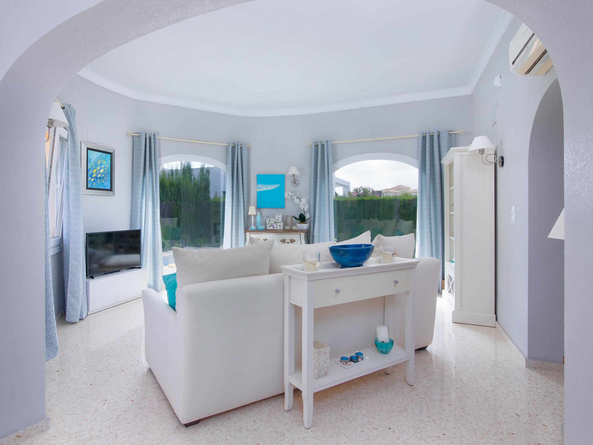 Very large, very beautiful, very comfortable villa "Bellevie". In the resort 5 km from the centre of Oliva, on the outskirts, 20 km from the centre of Dénia, 1.5 km from the sea, 1.5 km from the beach, on the golf course. Private: with lawn and wildlife garden, beautiful garden to relax, swimming pool (8 x 4 m, depth 120 - 170 cm, seasonal availability: 01.Jan. - 31.Dec.) with internal staircase. Outdoor shower, garden furniture, parking on the premises. Shop, grocery, restaurant, bar, bakery, café 900 m, bus stop 1.9 km, railway station 20 km, ferry 20 km, sandy beach "Playa de Oliva Nova" 1.5 km. Golf course (18 hole) 1 km, tennis 500 m, riding stable 850 m. Nearby attractions: Golf Olvia Nova 1 km, Golf Club House 1 km, Kitesurf Schol 1.2 km, Paddeltennis 600 m. Please note: car recommended. The owner does not accept any youth groups.