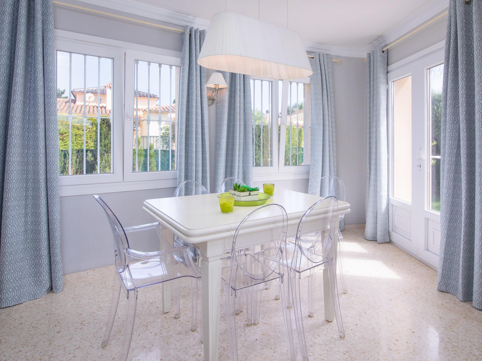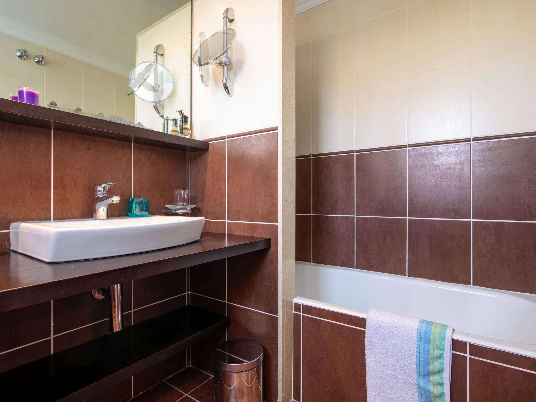 "Villa Bellevie", 4-room villa 150 m2 on 2 levels. Spacious and bright, very beautiful and stylish furnishings: living/dining room with TV, satellite TV, digital TV, air conditioning and forced-air heating. Exit to the patio, to the swimming pool. 1 room with 1 french bed (140 cm, length 190 cm), bath/WC and double hand-basin. 1 room with 2 beds (90 cm, length 190 cm). Kitchen (oven, dishwasher, 4 ceramic glass hob hotplates, toaster, kettle, microwave, freezer, electric coffee machine). Shower/WC. Upper floor: 1 room with 1 french bed (140 cm, length 190 cm), bath/bidet/WC. Garden, lawn. Terrace furniture, electric barbecue. Facilities: washing machine, dryer, iron, hair dryer. Internet (WiFi, free). VT-52616-V // Reg. Nr.: ESFCTU000046044000688266000000000000000000VT 52616-V8