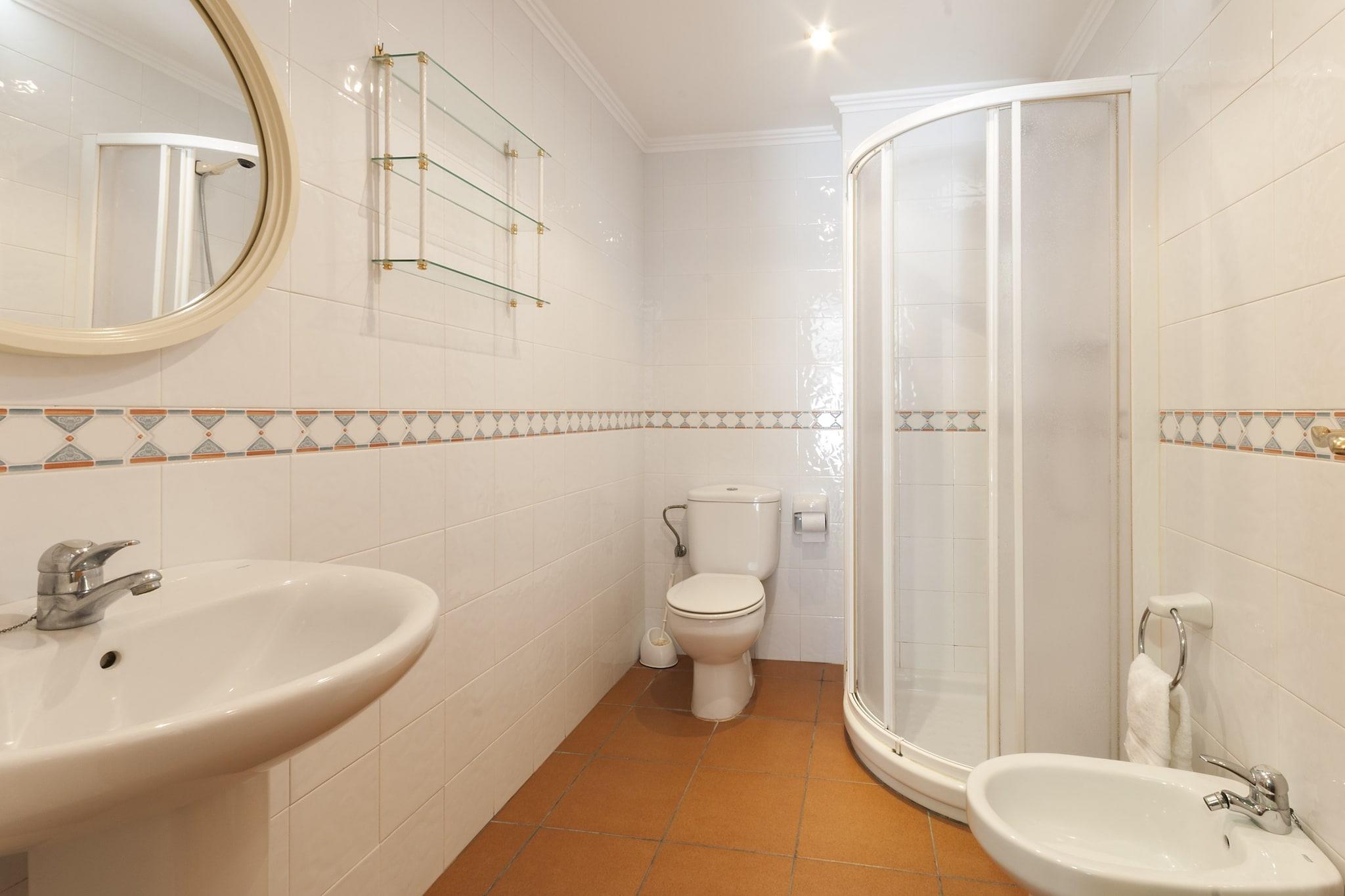 Stue, Køkken(komfur, kaffemaskine), soveværelse(dobbeltseng), badeværelse, enkeltsovesofa, mikrobølgeovn, køle-fryseskab, bruser, håndvask, toilet, bidet, barneseng, barnestol