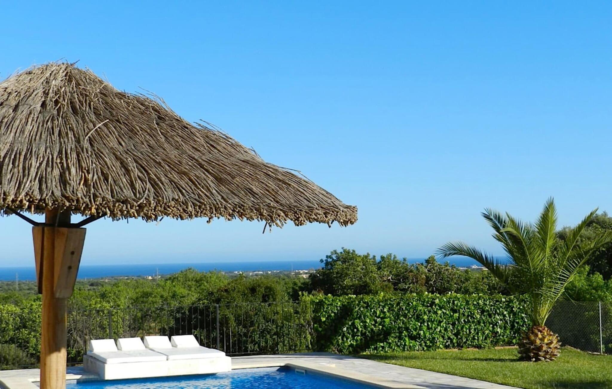 Med det imponerende bondehus "Olivo" præsenterer vi et spektakulært feriehus på Mallorca. Det smukke 2-etagers hus med mange ekstraudstyr ligger på en imponerende 15.000 m² stor grund. Det er i en fantastisk afsondret beliggenhed i en af de mest sensationelle dele af øen: på den sydlige spids af Mallorca i Cala D'Or, den "gyldne bugt". Et absolut højdepunkt er den 12,5 m lange pool, som også har et ekstra børnebassin. Fra den omkringliggende terrasse har du en fantastisk udsigt over havet. Hvis du ønsker det, kan du tilbringe hele dage udenfor. Udekøkkenet byder på ideelle forhold til dette. Også her kan du sidde lige så behageligt under taget som i den rummelige chill-out-zone ved siden af. Her er også installeret et praktisk badeværelse, og en varm-kold udendørs bruser er også tilgængelig. Selv musik er mulig udenfor via TV/MUSIK-systemet. Hvis du kan lide at være aktiv, kan du mødes med andre ved bordtennisbordet. På øverste etage af dette bondehus på Mallorca er der en balkon med en særlig smuk udsigt. Stuehuset "Olivo", som kan bebos hele året rundt, byder på masser af opholdsrum for op til 12 personer. Fra den indbydende entré i stueetagen træder man ind i den åbne, rummelige opholds- og spisestue, hvor de mørke træmøbler skaber en smuk kontrast til de lyse gulve og vægge. Det enorme, fuldt udstyrede spisekøkken tilbyder et lille separat bord til ekstra siddepladser til mindre forsamlinger. I stueetagen er der to soveværelser med udgang til terrasse og to bruserum. Et af disse soveværelser har eget badeværelse. De andre soveværelser og badeværelser er ovenpå. Alle komfortabelt og lyst indrettede værelser har vinduer fra gulv til loft, og fra to af disse afslapningsområder har du direkte adgang til ovennævnte altan. Den majestætiske bondegård "Olivo" har en sensationel beliggenhed nær Mallorcas sydspids - de smukkeste strande i regionen, for eksempel Cala Sa Nau eller Cala Marcal, ligger kun 3 km væk. For at shoppe kan du gå til nabolandet Santanyi, mens gågaden i Cala D'Or er ideel til shopping og slentreture. Bemærk venligst, at denne ejendom ikke accepterer ungdomsgrupper eller polterabender. En ungdomsgruppe på denne ejendom består af personer på 25 år eller derunder. Book ikke denne ejendom, hvis du er en ungdomsgruppe eller polterabend, da din reservation vil blive afvist, når den er booket, hvilket også kan være tilfældet ved ankomst til ejendommen eller under dit ophold, og du vil ikke modtage en refusion. Valgfri brug af aircondition er inkluderet i prisen for 10 timer pr. dag, hvorefter gebyret kan afregnes kontant på stedet. Dette er et Fincallorca feriehus.