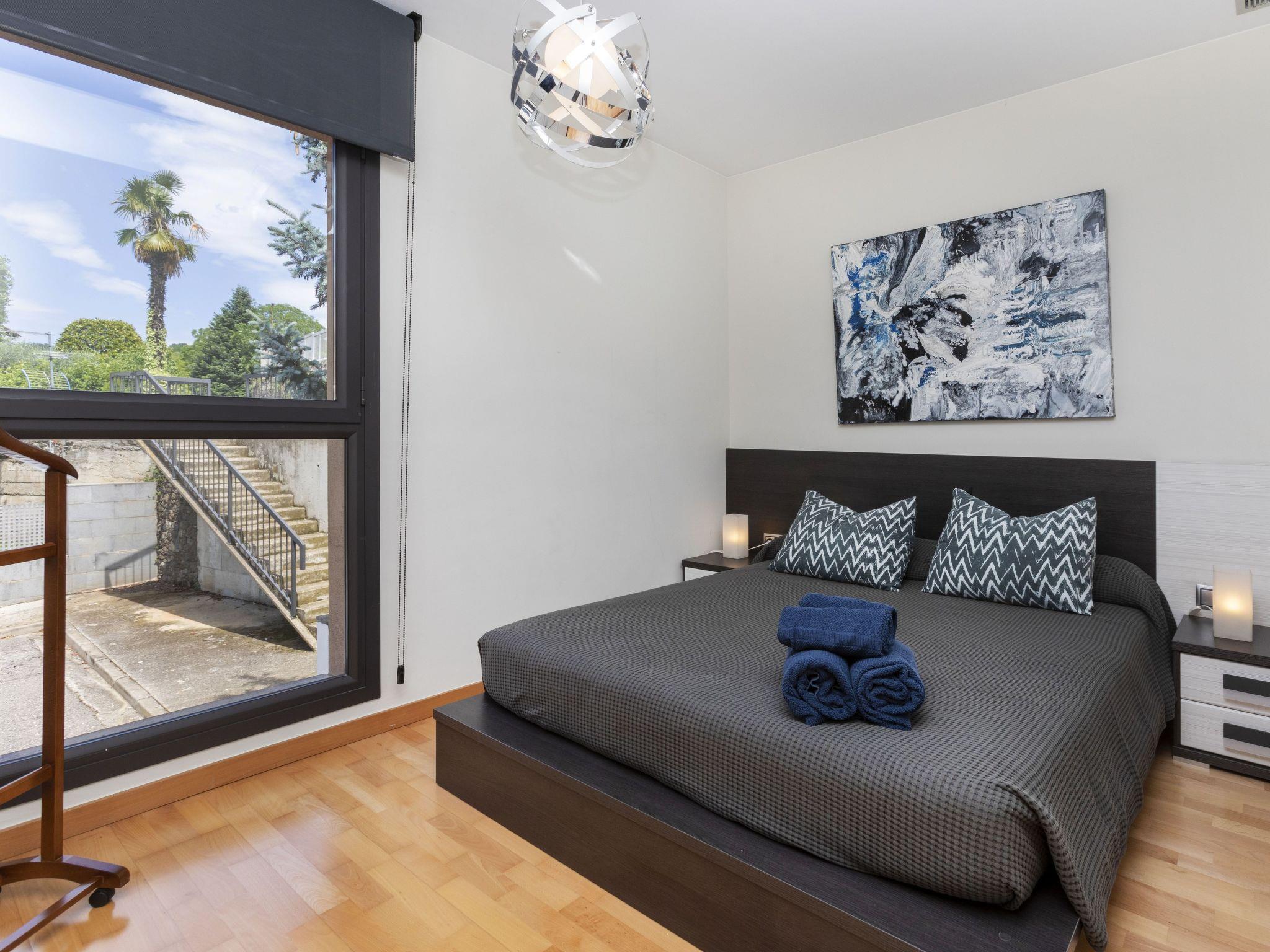 "Volca", 5-room house 290 m2. Beautiful and modern furnishings: living/dining room with digital TV, gas heating and air conditioning. Exit to the patio. Open kitchen (oven, dishwasher, 3 ceramic glass hob hotplates, microwave, electric coffee machine) with dining table and TV. Exit to the patio. Sep. WC. Upper floor: 1 room with 1 french bed, shower/WC, TV, gas heating and air conditioning. 1 room with 1 bed, gas heating and air conditioning. 1 room with 2 beds, gas heating and air conditioning. Bath/bidet/WC. 2nd upper floor: living room with TV, gas heating and air conditioning. 1 room with 1 french bed, shower/WC and TV. Large patio. Terrace furniture, barbecue. View of the mountains. Facilities: washing machine, dryer, children's high chair, baby cot for up to 2 year olds, hair dryer. Internet (WiFi, free). Parking (roofed, 2 cars). Please note: suitable for families. Non-smoking house. Radial Heating. HUTG035539 // Reg. Nr.: ESFCTU000017004000210117000000000000000000HUTG0355393