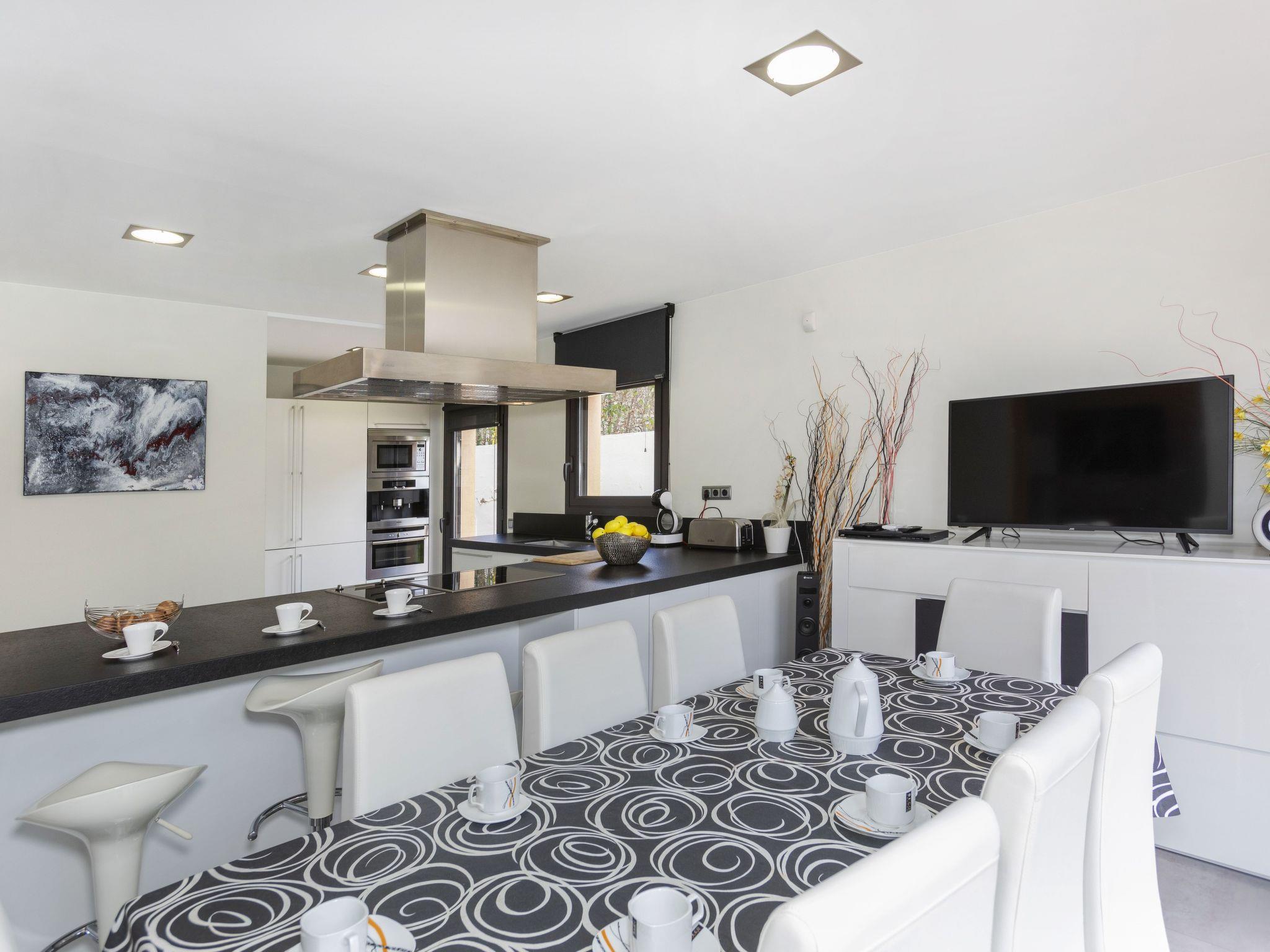 Modern, beautiful single-family house. In the resort, 1.2 km from the centre, excellent location: right in the centre but still quiet. Private: garden with lawn, swimming pool (seasonal availability: 01.Jan. - 31.Dec. pool opening hours: 06:00-22:00). Patio, garden furniture, barbecue. In the house: central heating system. Roofed, parking. Restaurant 800 m, bakery 200 m, bus stop "Estació d'Autobusos" 700 m. The owner does not accept any youth groups. Neighbourhood highly sensitive to noise. Quietness and good behaviour expected.