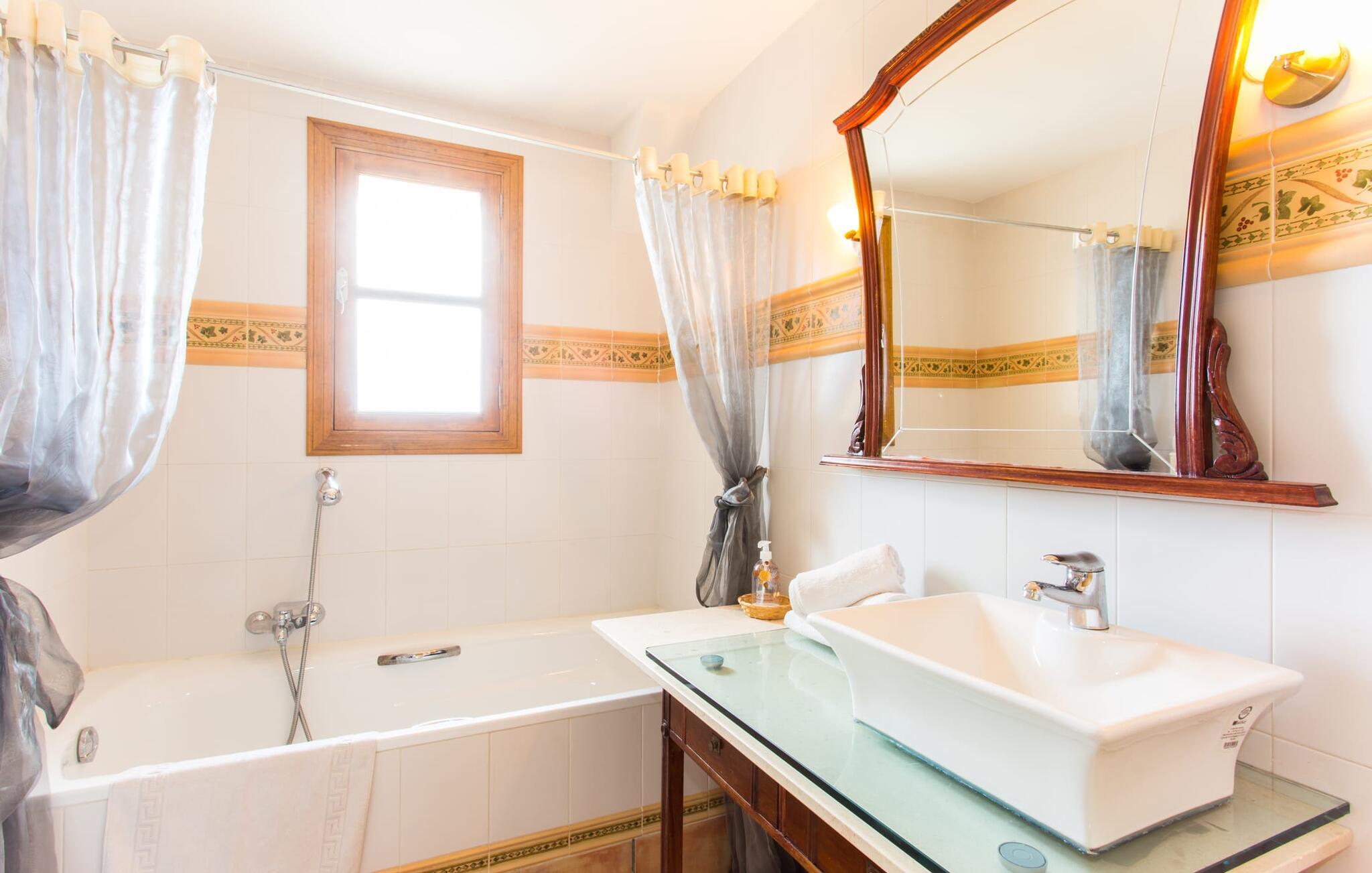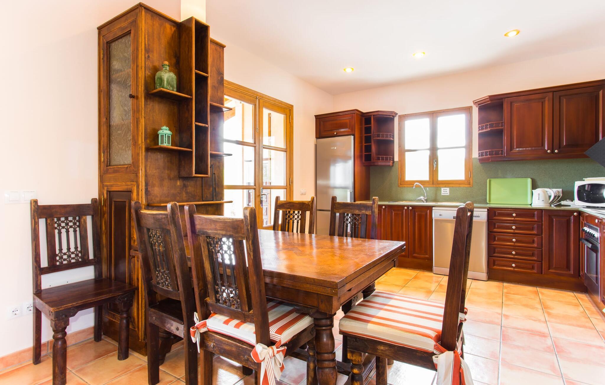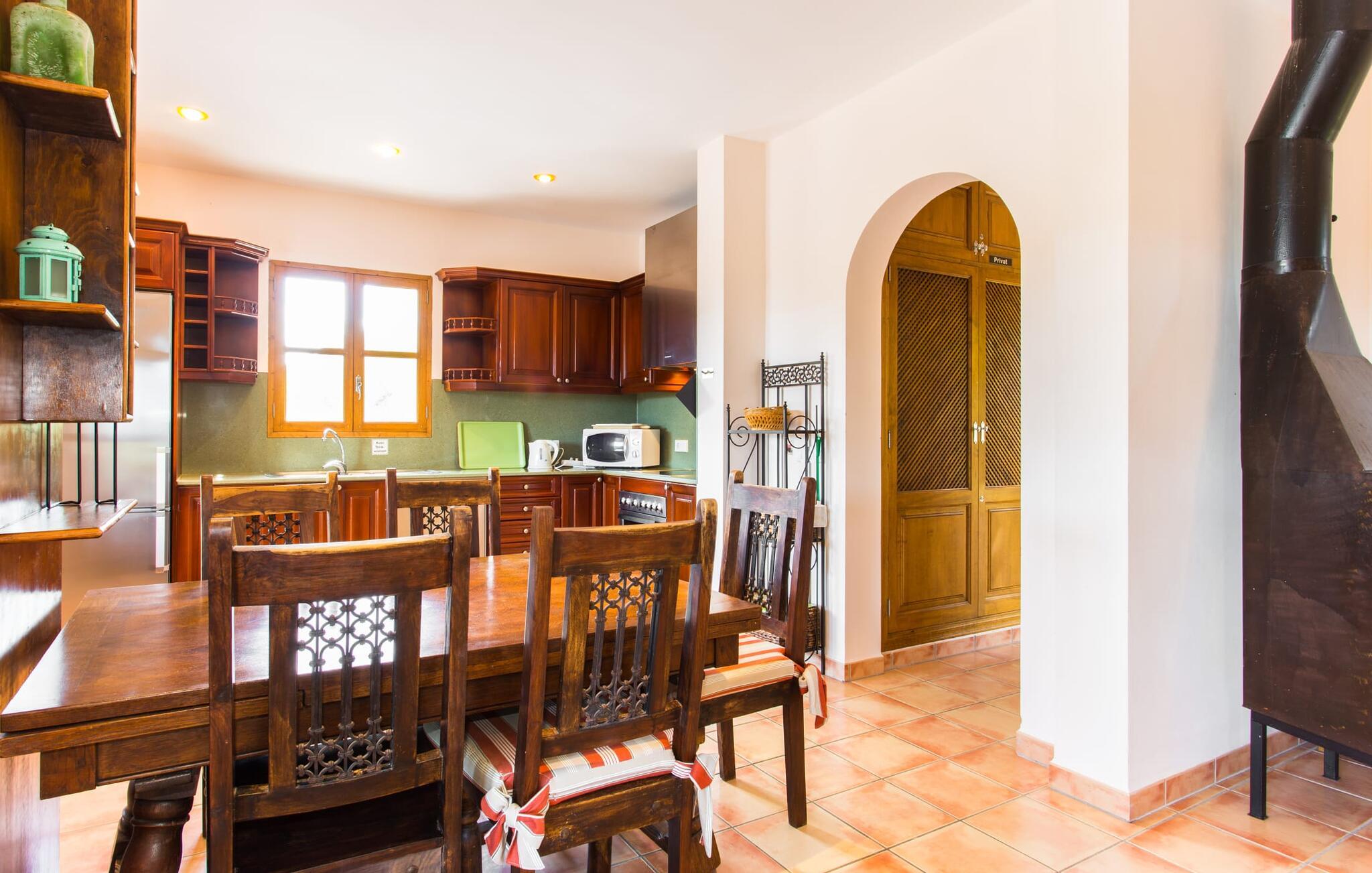 Selv på afstand kan I se to høje palmer, der blev plantet på terrassen til Villa "Once Pinos". Hvis I ønsker at tilbringe jeres fritid i et feriehus med al komfort og stadig nyde den traditionelle atmosfære, er dette det rigtige sted for jer. Den enorme, velholdte ejendom, som er efterladt i sin oprindelige stand, i et afsondret miljø garanterer fred og ro, trygt væk fra hverdagens stress og jag.