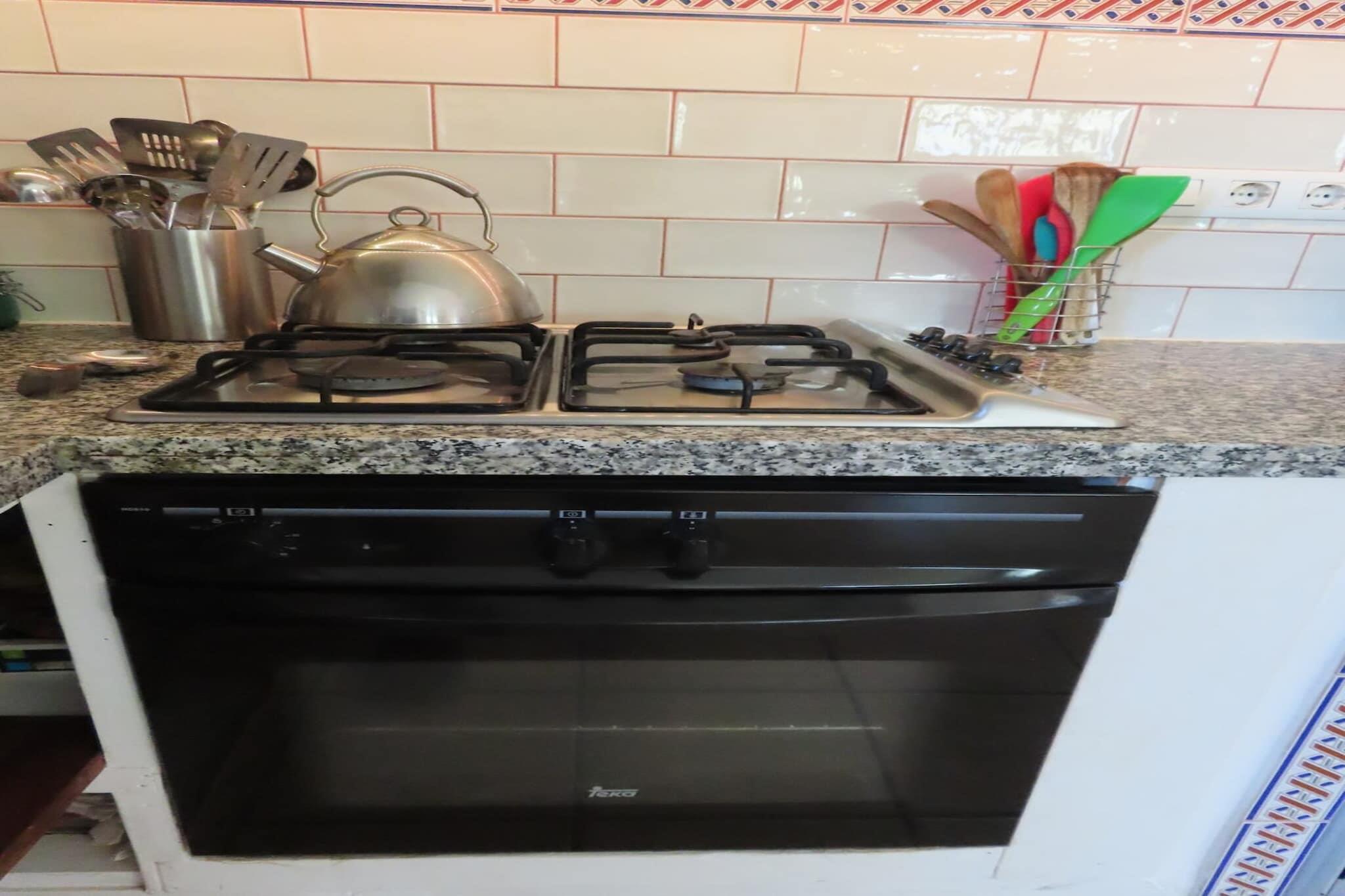Stueetage: (Køkken(kogeplade, elkedel, brødrister, kaffemaskine, ovn), stue / spisestue(spisebord, sofahjørne), soveværelse(14 m2)(dobbeltseng), soveværelse(14 m2)(enkeltsovesofa, dobbeltseng eller 2 enkeltsenge Senge), badeværelse(bruser, håndvask, toilet), klimaanlæg) spisebord, solstole, grill, swimmingpool(privat)